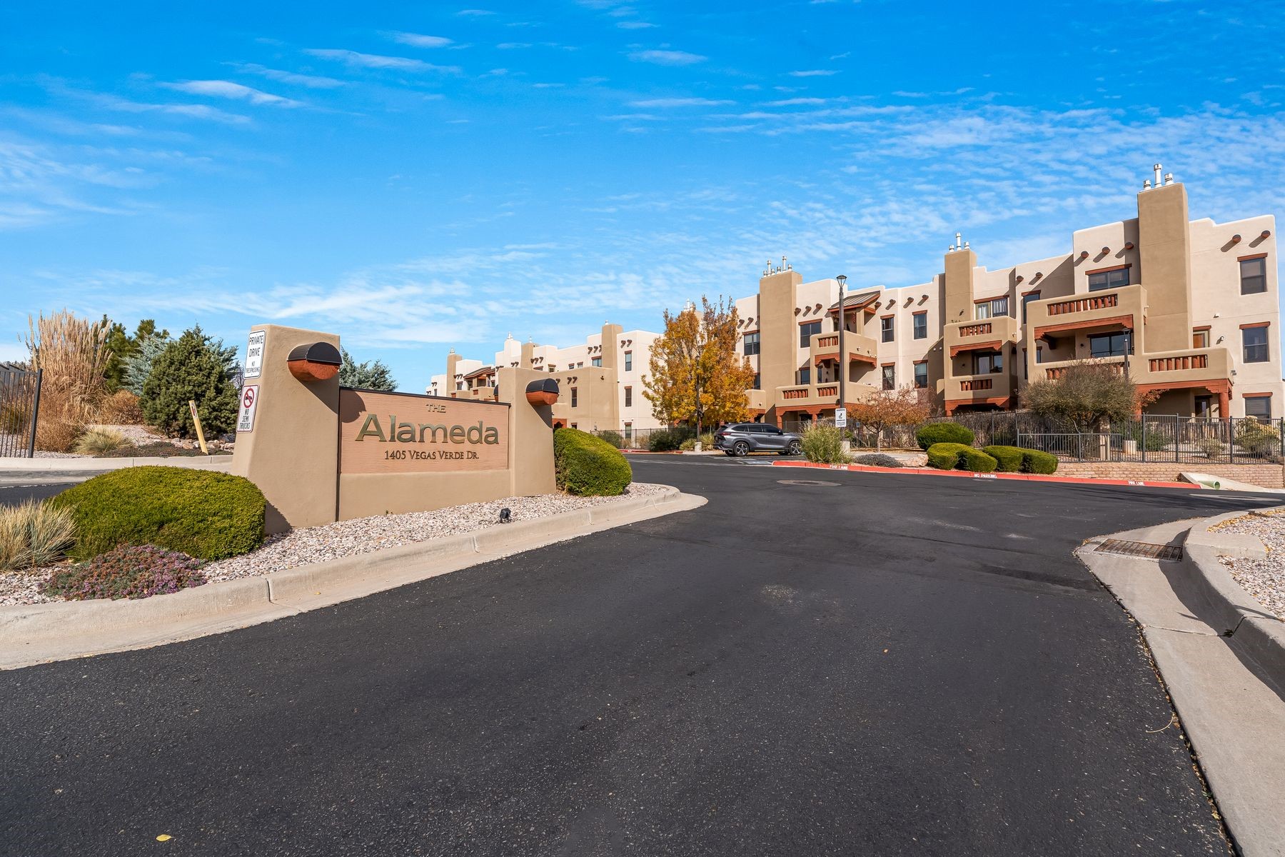 Live the life of luxury in this recently upgraded, ground floor, pool-side 2 bedroom/2 bathroom luxe condo at The Alameda! This exceptional unit is in a desirable corner location with a huge wrap around fenced private patio surrounded by landscaping. Just a few steps away is a heated pool with extensive seating, BBQ's and cabanas. Enjoy the fine architectural interior features of high ceilings, wood vigas, tongue and groove ceilings, corbels and a handsome corner gas kiva fireplace. Significant upgrades have been made to this unit including: All new paint, stripped and sealed slate flooring (no carpeting!), all new stainless steel appliances and sink, new hot water tank, new washer/dryer This unit includes a one-car garage and 115 square foot storage room. The Alameda is a luxury amenity condominium gated community that includes: Heated outside swimming pool; Fitness Center; Party Rooms with Kitchens and Lounge Areas throughout and a Dog Run. There is also an onsite professional manager and 24 hour controlled access. Fabulous location and close to shopping, dining and entertainment. This great opportunity can be yours solive La Dolce Vita and schedule your showing today!