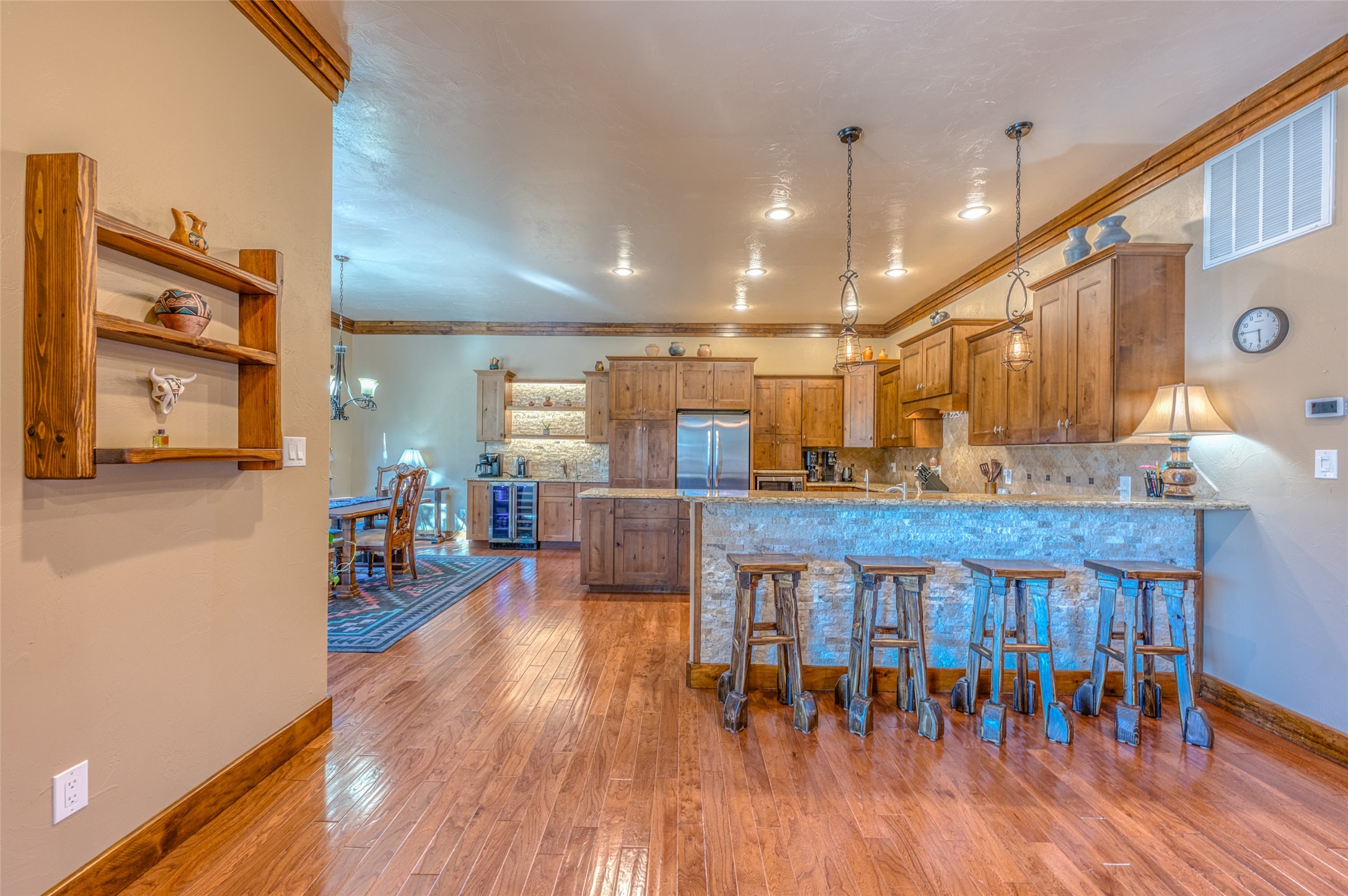 Experience the best of mountain living at 237 Saddleback, perfectly situated in a private, forested setting within Alto Country Club, where optional golf and club amenities elevate the lifestyle. This beautifully updated home offers an inviting blend of comfort, style, and mountain luxury. Inside, the open-concept living area features high ceilings, abundant natural light, and serene views of the trees and mountains. Recent interior updates include a custom wet bar and new stonework that complements the bar area, adding an upscale and cohesive touch throughout the home. The layout provides an excellent flow for entertaining, while the quiet bedrooms offer peaceful retreats for full-time residents or vacationers alike. Step outside to expansive decks that showcase clear mountain and forest views, perfect for enjoying morning coffee, evening sunsets, or watching the area's abundant wildlife; wild horses, elk, and deer frequently pass through. Thoughtfully installed outdoor lighting leads to a propane firepit, creating an ideal setting for gatherings under the New Mexico sky. Whether you're seeking a luxury getaway or a high-end full-time residence, this home offers the privacy, amenities, and natural beauty that Alto is known for all within a premier country club community.