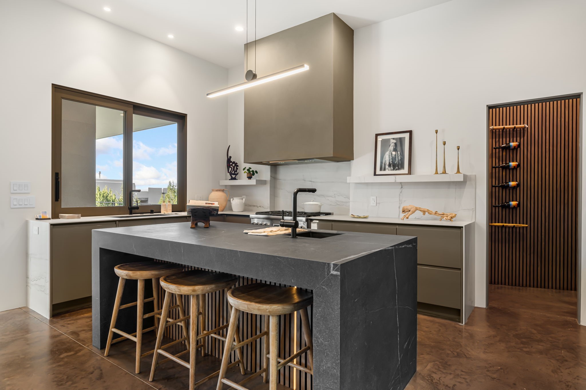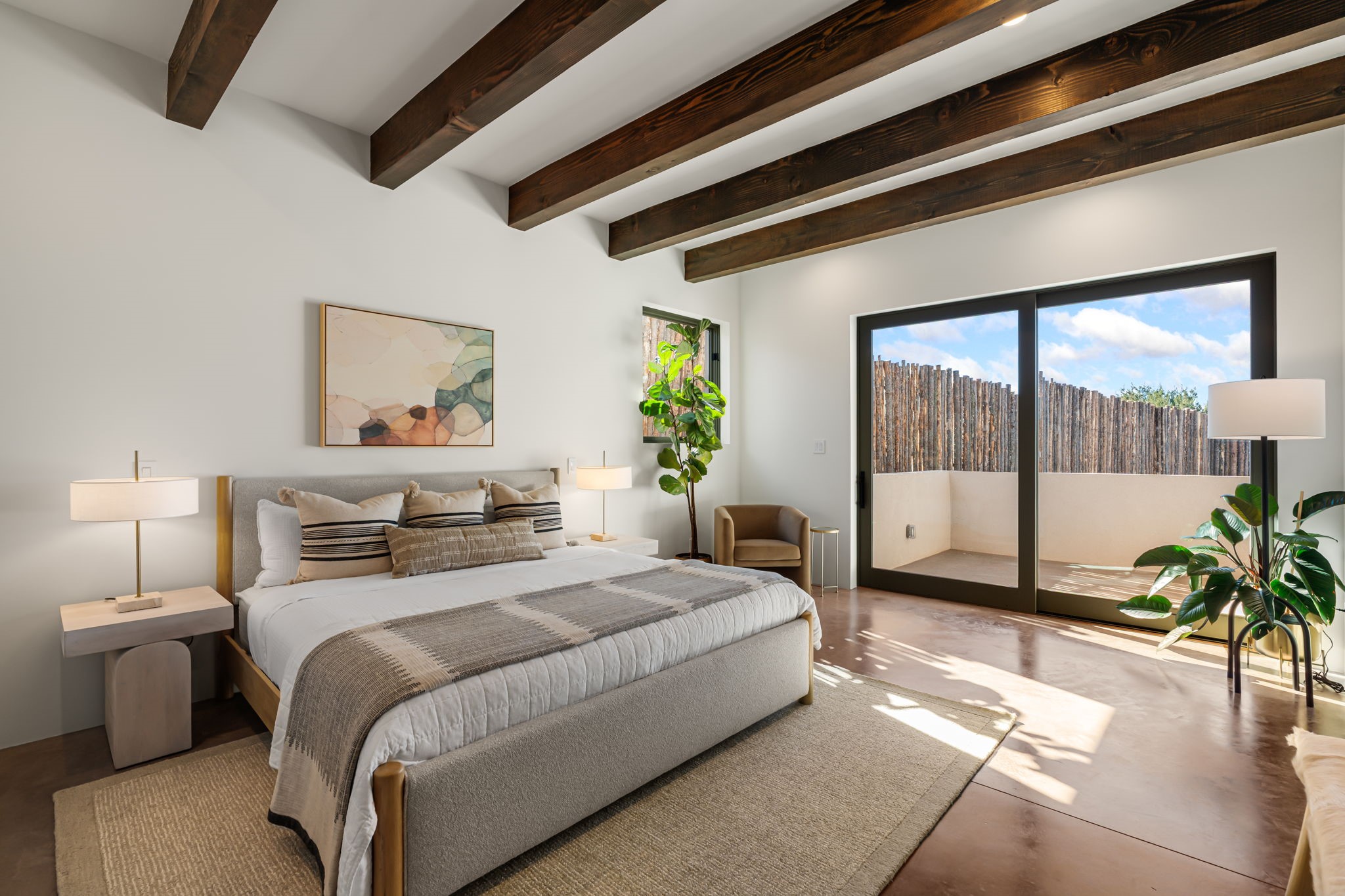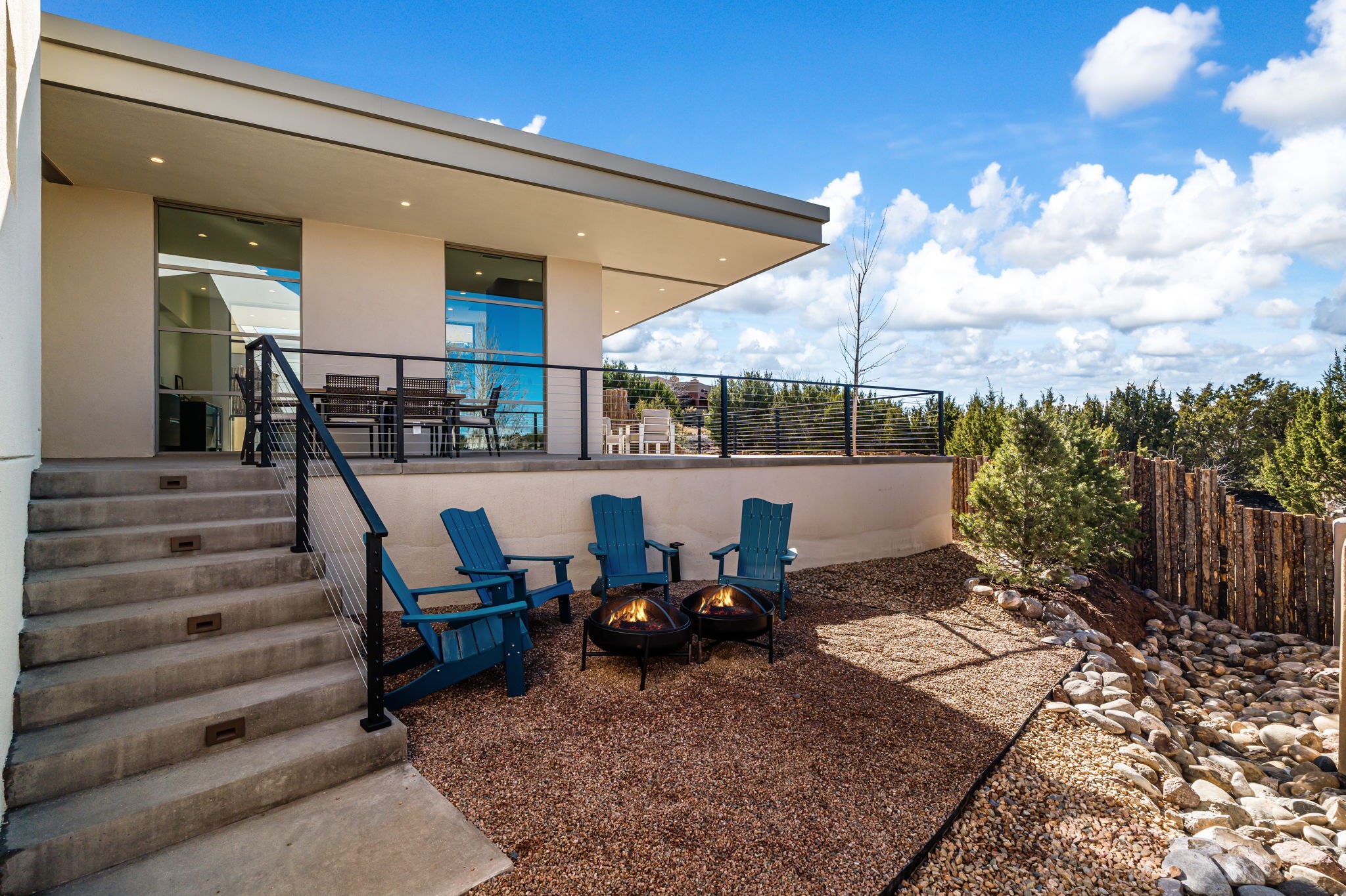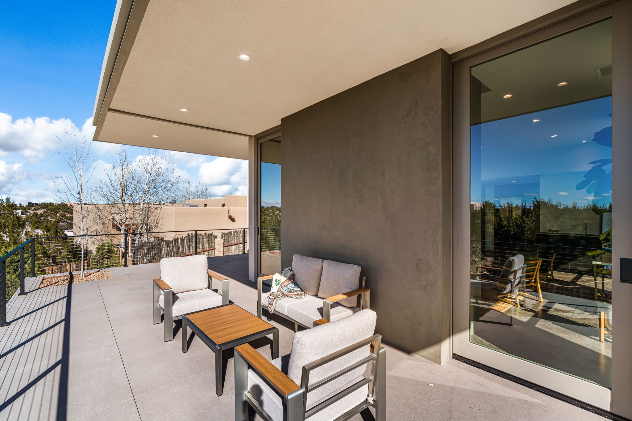 Mesa Modern | Move in now! Experience refined Contemporary Southwestern living in this stunning new construction home by Acacia Builders, a family owned and operated firm renowned for crafting sophisticated, high quality residences. Nestled in the desirable Aldea de Santa Fe community, this 3-bedroom + office home blends modern design with timeless craftsmanship. Just completed, the home Features: Sleek concrete flooring throughout, lux radiant in-floor heating, expansive picture windows that capture western views of the Jemez Mountains, and clean architectural lines that define contemporary elegance. Thoughtfully designed using Eco Friendly, ICF construction materials (insulated concrete forms) and a floorplan to maximize light and space, this residence will offer an ideal balance of form and function -- perfect for both serene living and stylish entertaining. With a legacy rooted in quality, attention to detail, and innovation, Acacia Builders delivers a home where every design choice reflects a deep commitment to excellence and modern aesthetics. Now is your opportunity to own a future-forward home in one of Santa Fe's most sought-after communities.