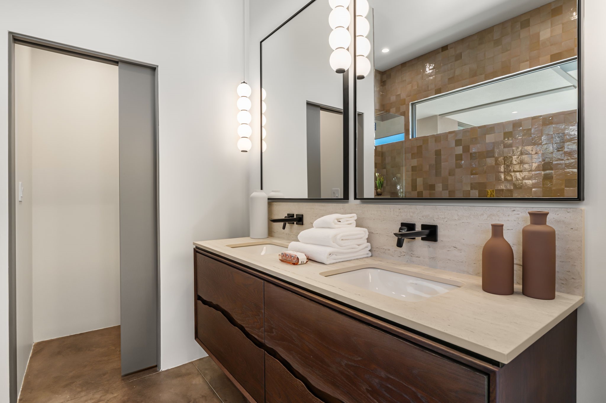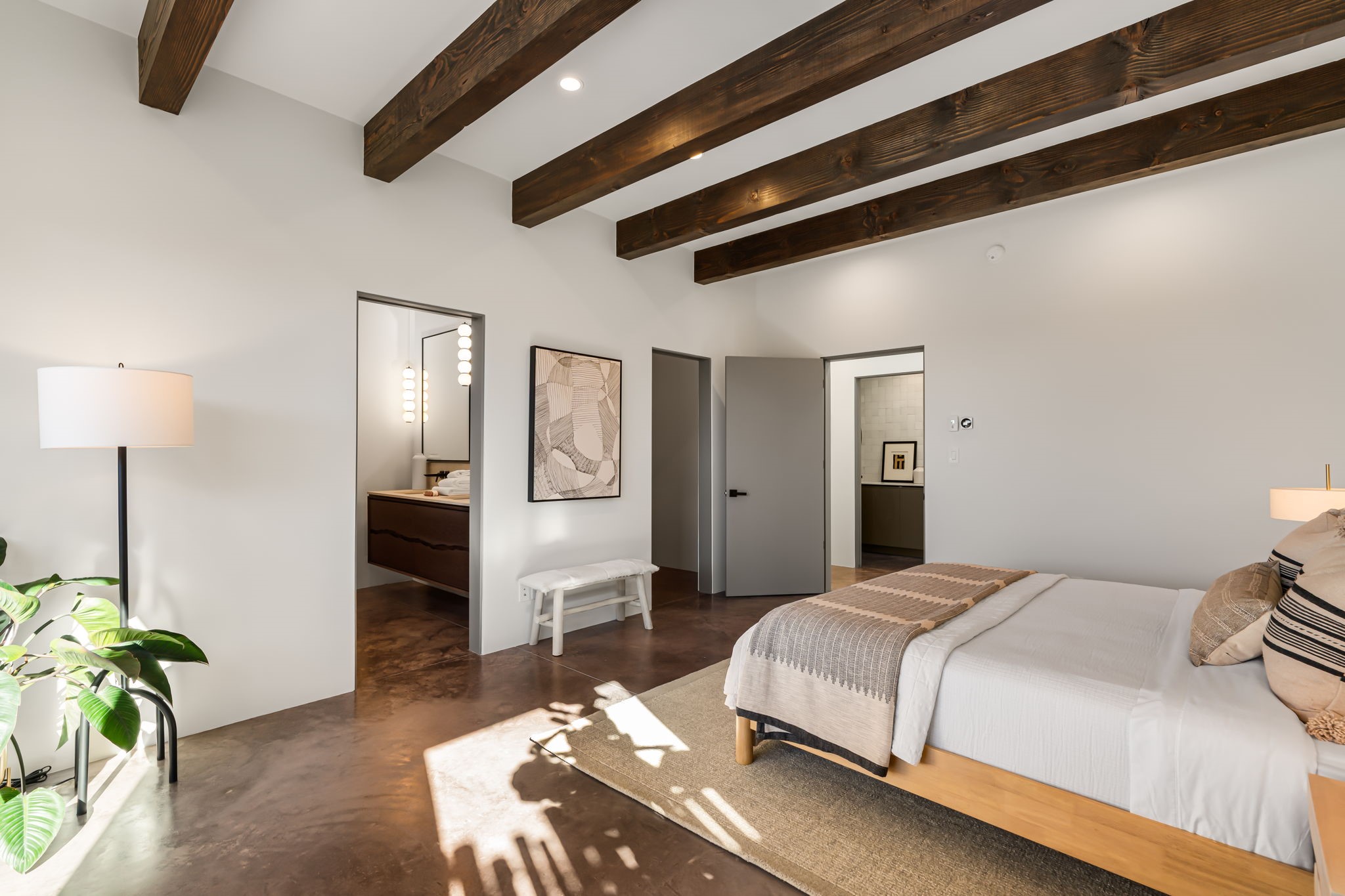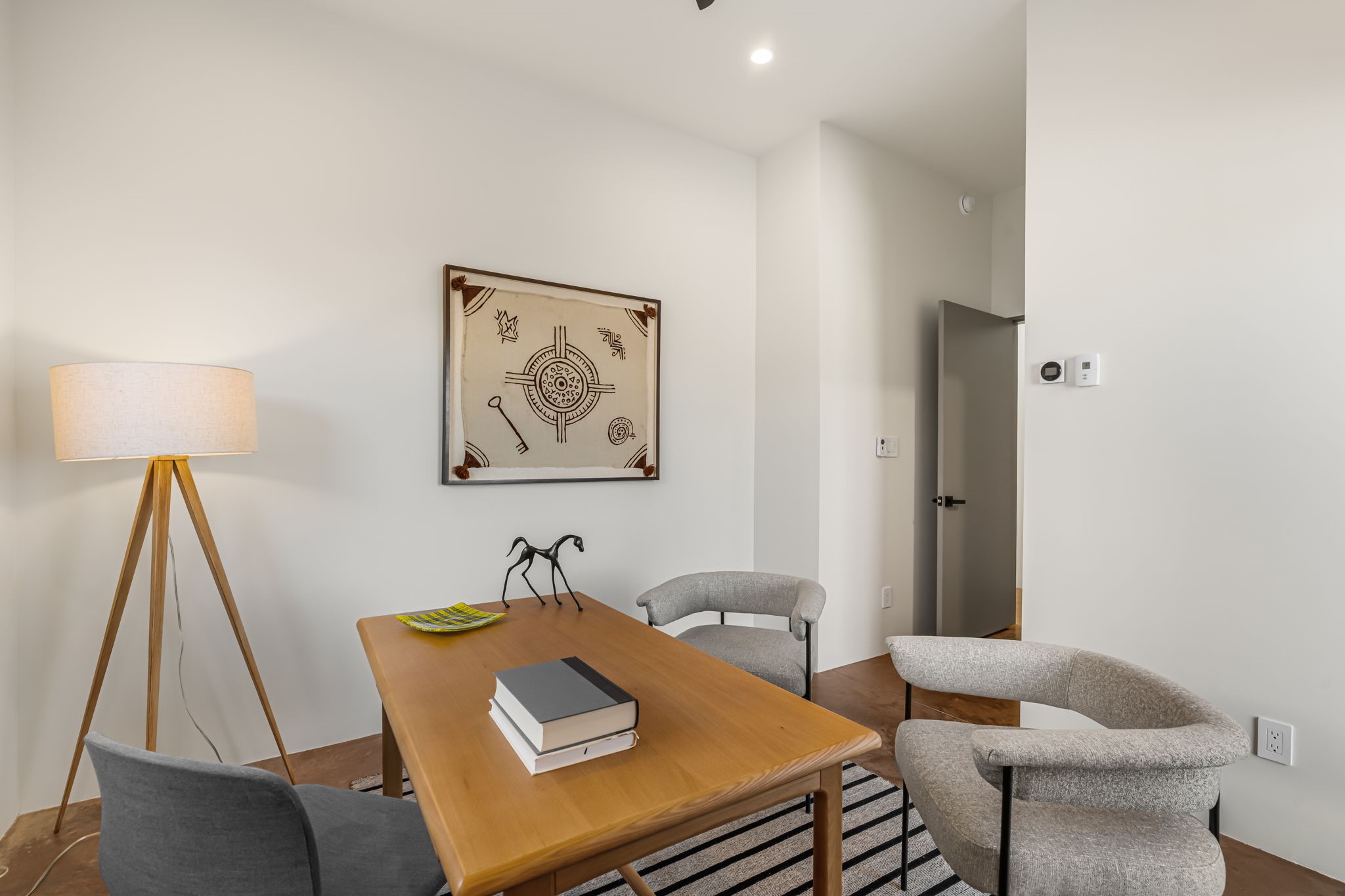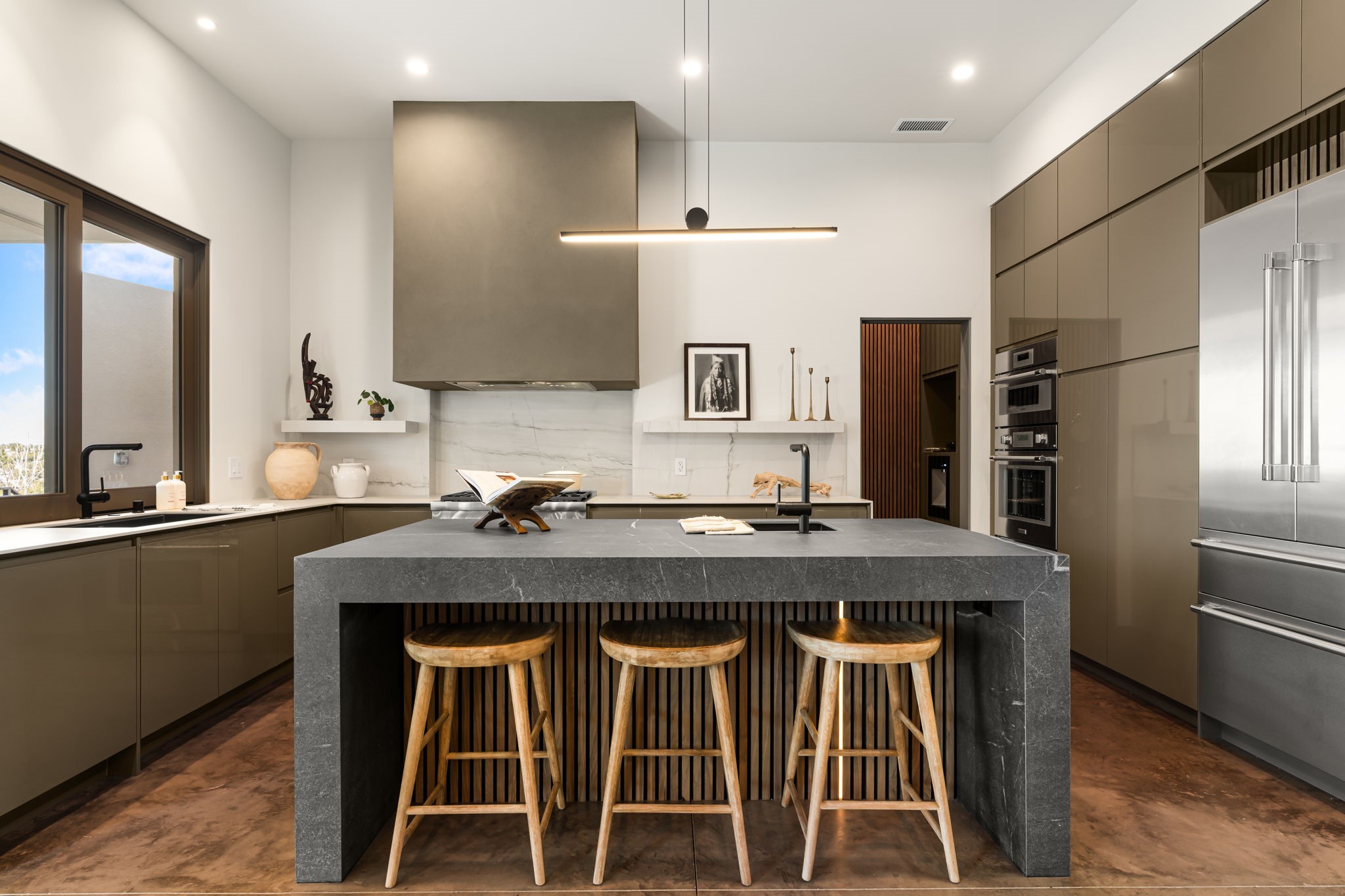 Mesa Modern | Move in now! Experience refined Contemporary Southwestern living in this stunning new construction home by Acacia Builders, a family owned and operated firm renowned for crafting sophisticated, high quality residences. Nestled in the desirable Aldea de Santa Fe community, this 3-bedroom + office home blends modern design with timeless craftsmanship. Just completed, the home Features: Sleek concrete flooring throughout, lux radiant in-floor heating, expansive picture windows that capture western views of the Jemez Mountains, and clean architectural lines that define contemporary elegance. Thoughtfully designed using Eco Friendly, ICF construction materials (insulated concrete forms) and a floorplan to maximize light and space, this residence will offer an ideal balance of form and function -- perfect for both serene living and stylish entertaining. With a legacy rooted in quality, attention to detail, and innovation, Acacia Builders delivers a home where every design choice reflects a deep commitment to excellence and modern aesthetics. Now is your opportunity to own a future-forward home in one of Santa Fe's most sought-after communities.