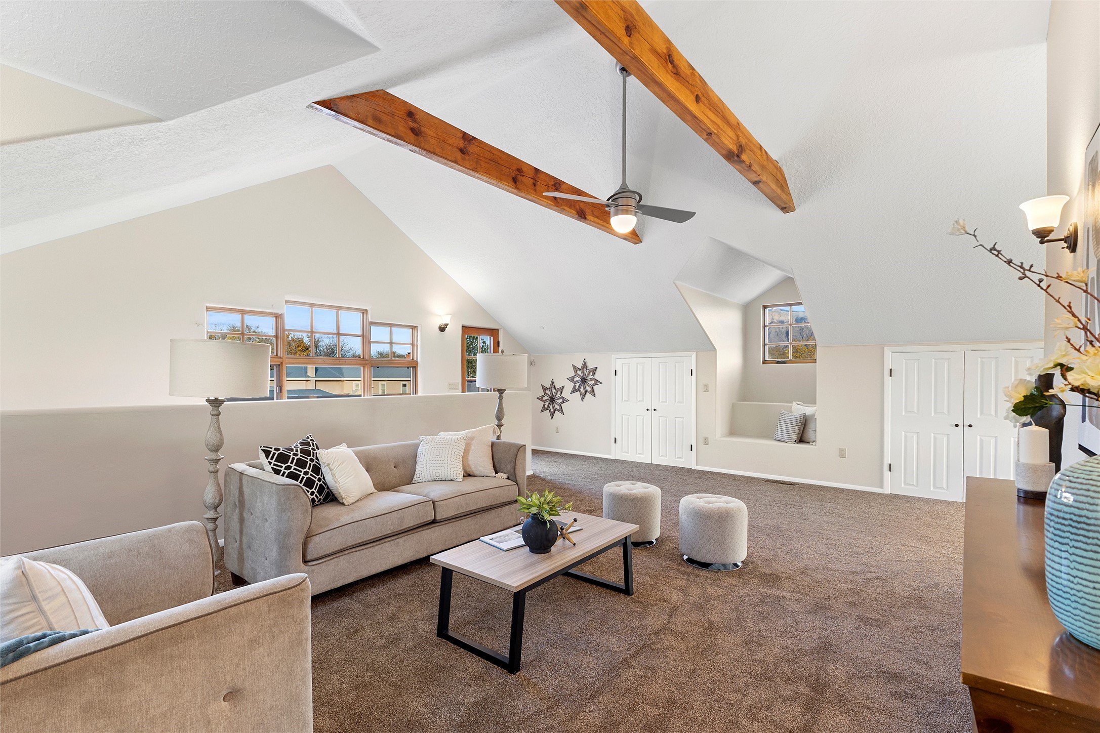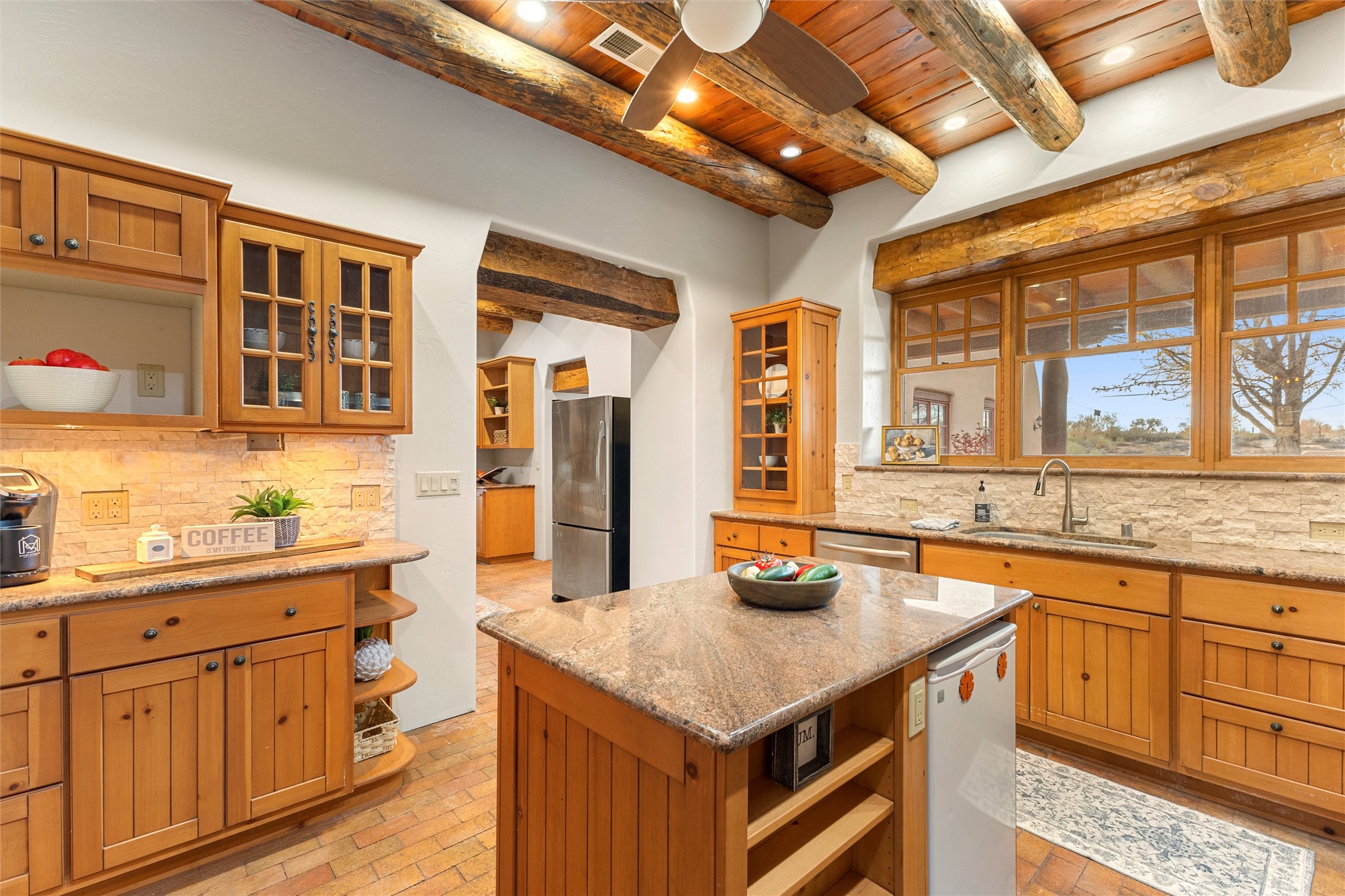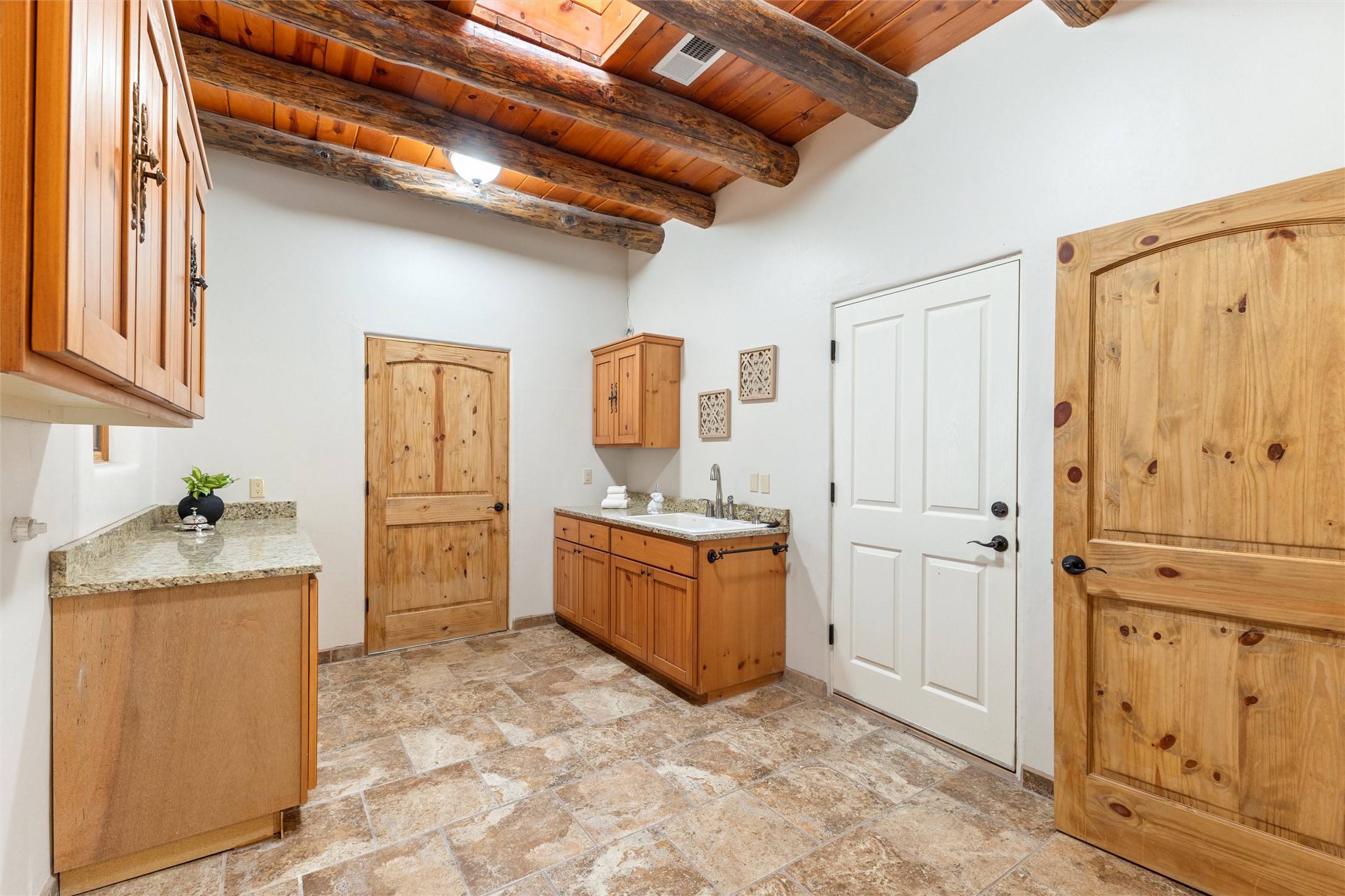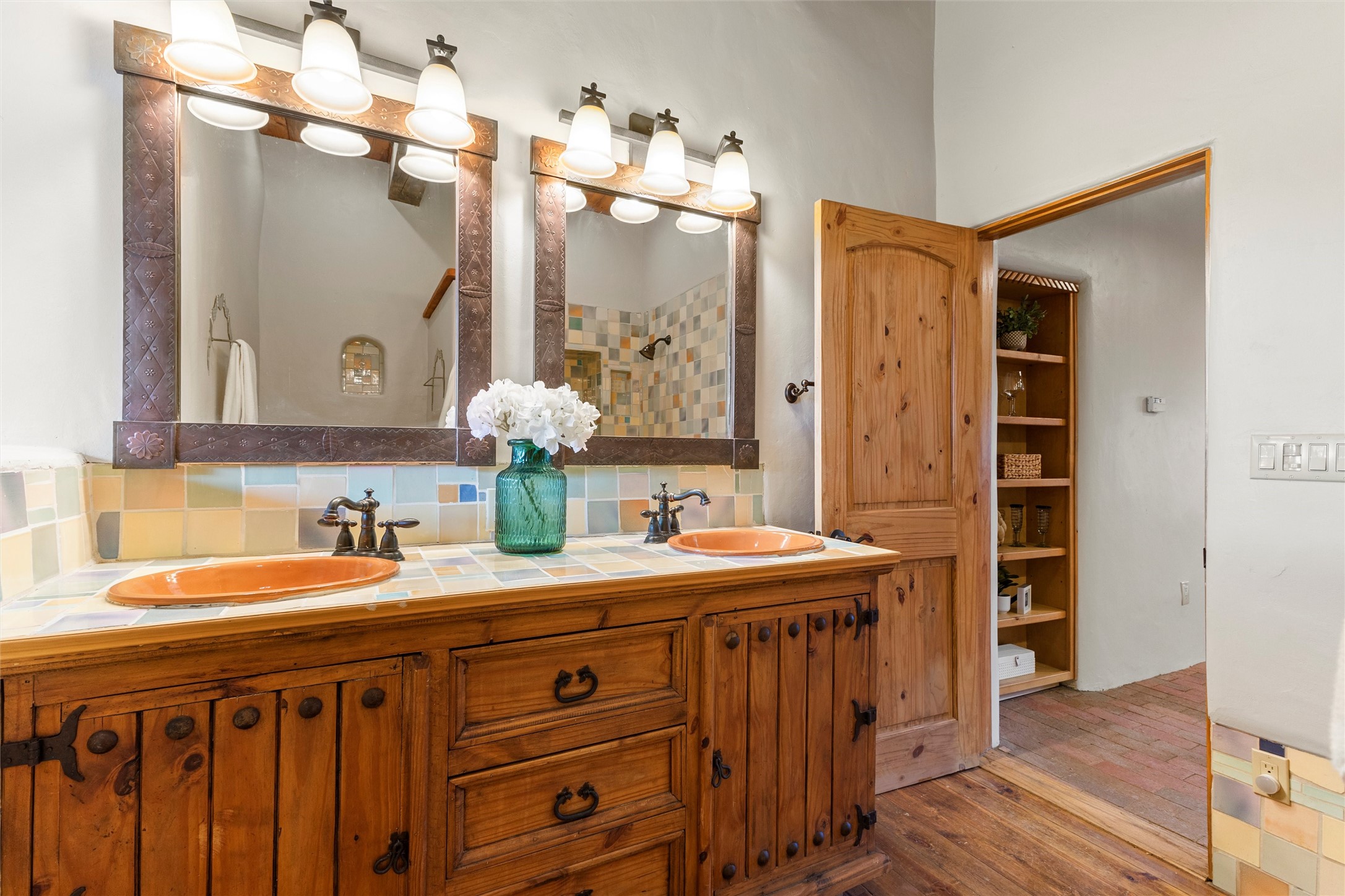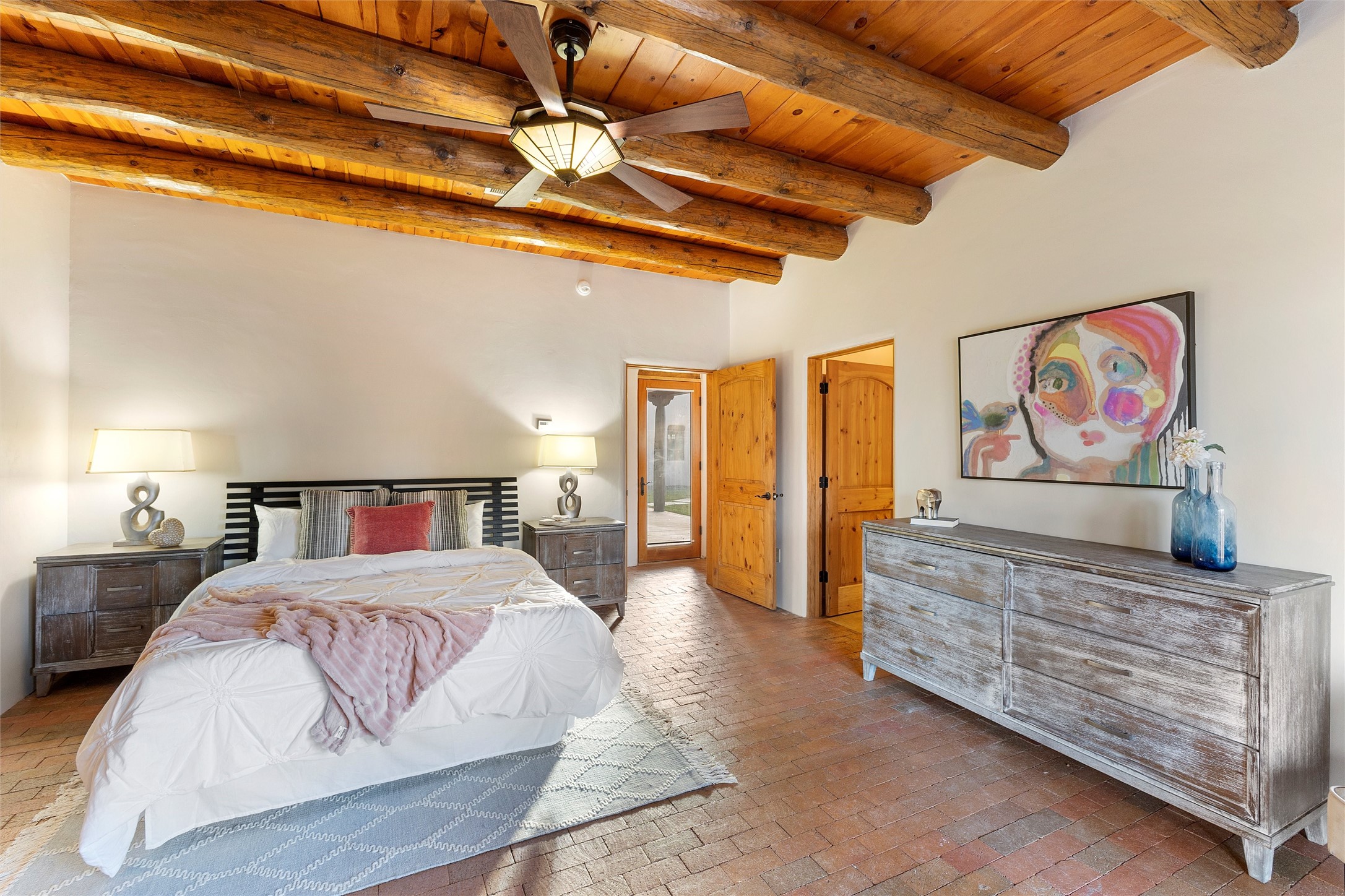Timeless Corrales, New Mexico living with room to breathe. This expansive 6,491 sq ft, quintessential Santa Fe-style estate marries the soul of an original 150-year-old farmhouse--thick adobe walls, hand-hewn vigas, and soaring ceilings--with a thoughtful 2009 renovation that brings modern comfort and reliability. Tucked on a quiet lane, the home rests on 1.69 serene, level acres that frame lovely Sandia Mountain views and invite an easy rural lifestyle--plenty of usable space for horses, gardens, or future additions. Inside, light-washed halls and artful nichos create gallery-like display walls for sculpture and canvases. Multiple living and gathering areas open effortlessly to two lush, grassy courtyards--perfect for coffee at sunrise, al-fresco dinners at dusk, or relaxed weekend play. An updated kitchen and baths blend warm Southwestern finishes with contemporary function, while long, shaded portals extend everyday living outdoors. Generous bedrooms and flexible rooms accommodate quiet work, fitness, media, or guest needs; host a crowd or savor a private retreat with equal ease. With historic character preserved, modern conveniences in place, and a setting that feels both pastoral and connected, this is a rare convergence of history, scale, privacy, and natural beauty--right in the heart of Corrales.