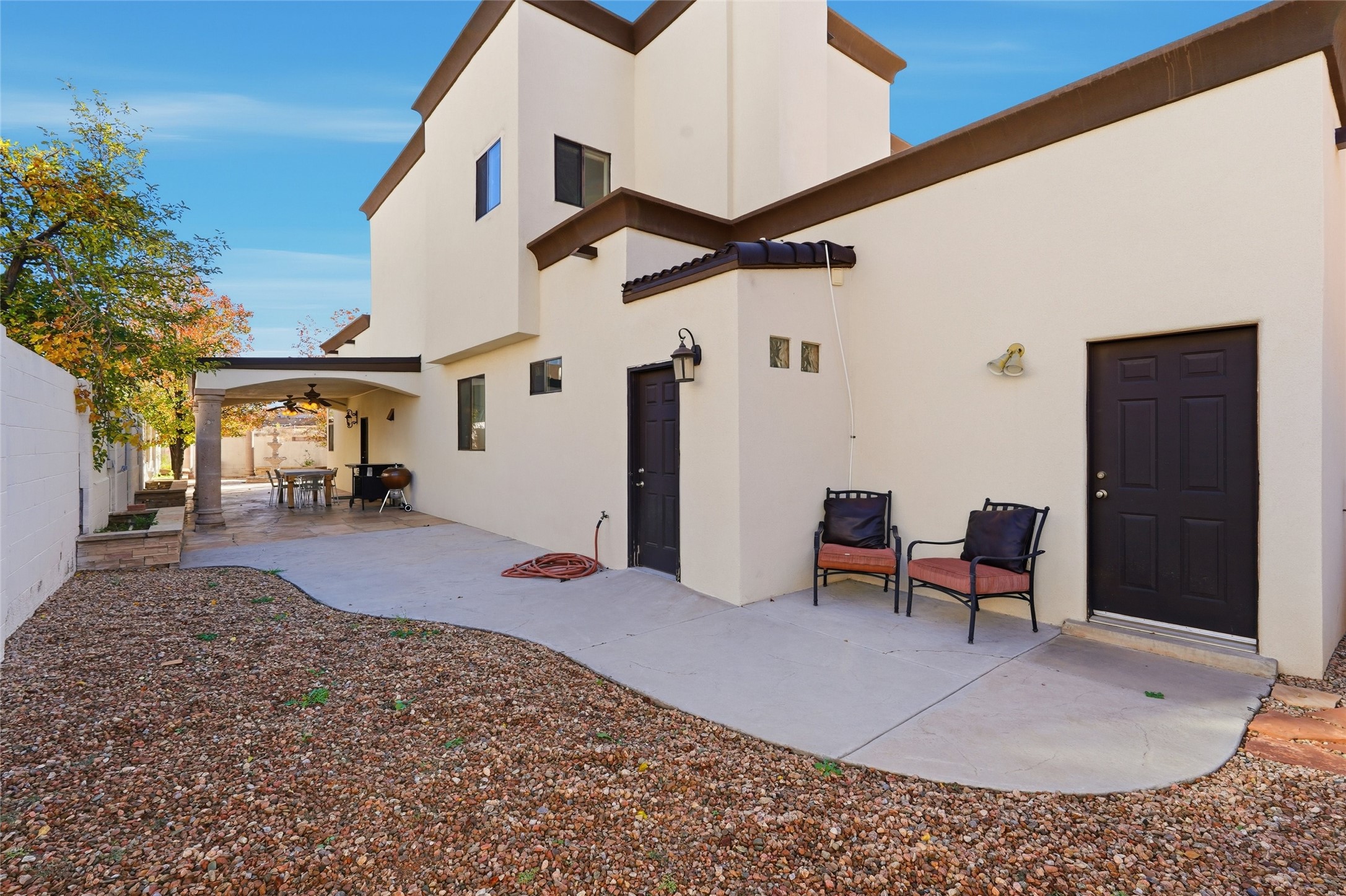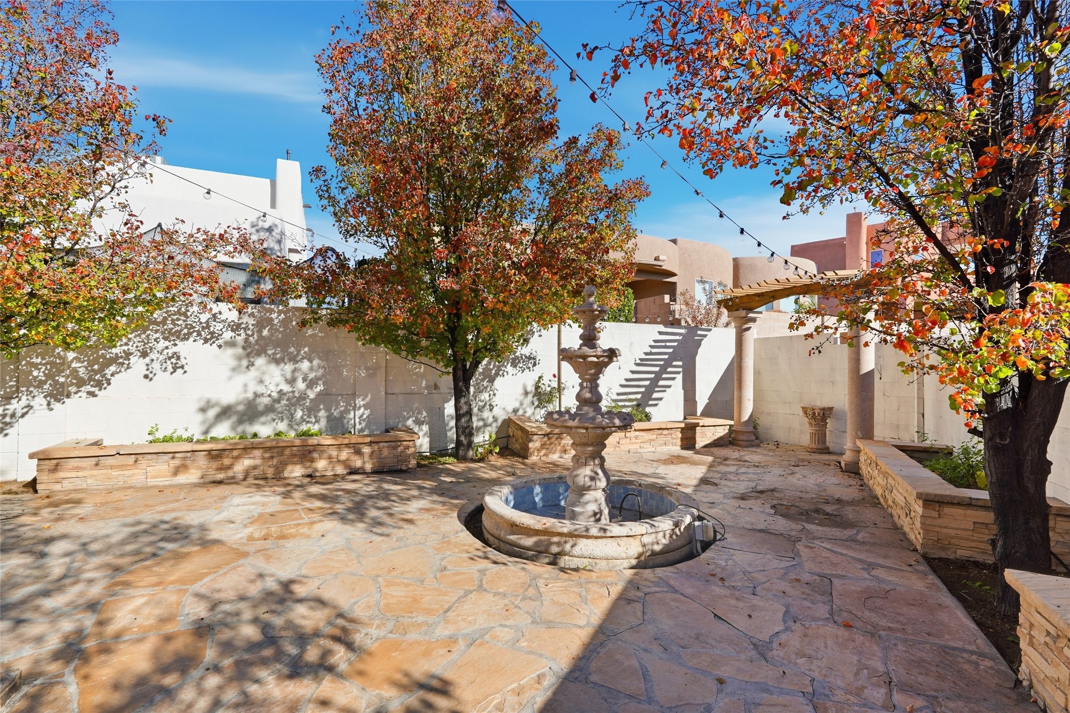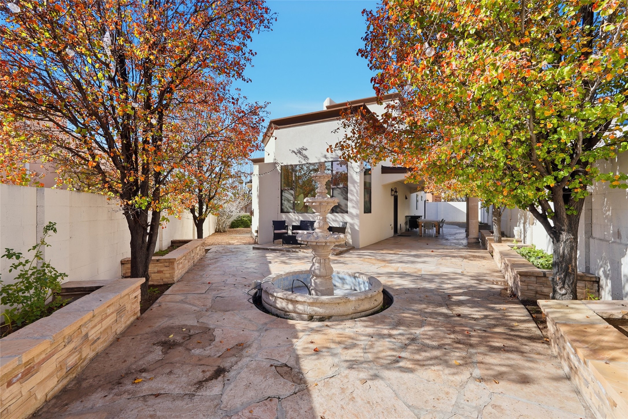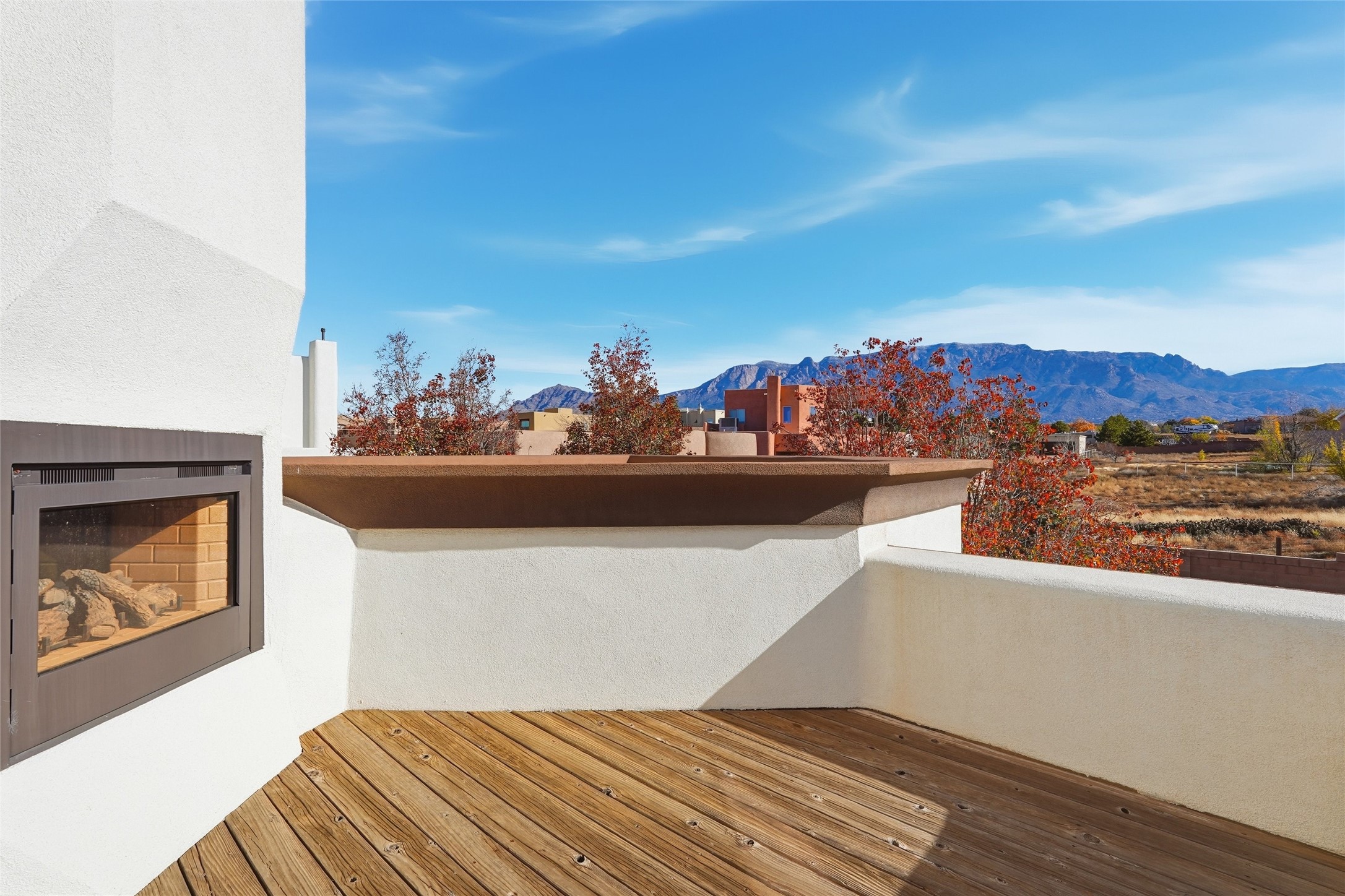 Welcome home! This beautifully maintained property in the far NE Heights truly has it all. Located on a premium lot with stunning views of the Sandia Mountains. A charming courtyard welcomes you as you enter. This home offers elegance, comfort, high ceilings and exceptional attention to detail.Featuring tile and cherry hardwood floors throughout, a chef's kitchen complete with a Viking gas cook top and spacious granite counters and kitchen island. Master bedroom has its own inside/outside fireplace on balcony. Flexible fourth room that can serve as a nursery, bedroom, gym, or office--this home is designed to fit your lifestyle.The backyard is perfect for entertaining, with garden beds, a soothing water feature, and a covered patio ideal for gatherings.Come see everything this remarkable home has to offer!