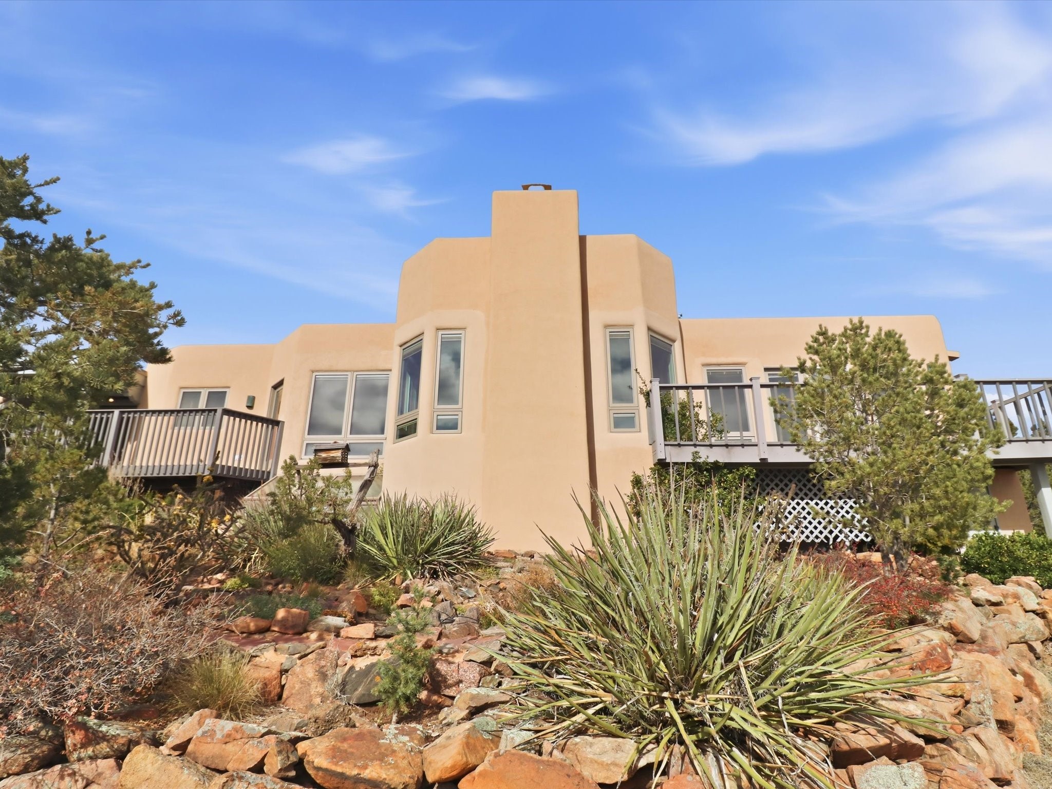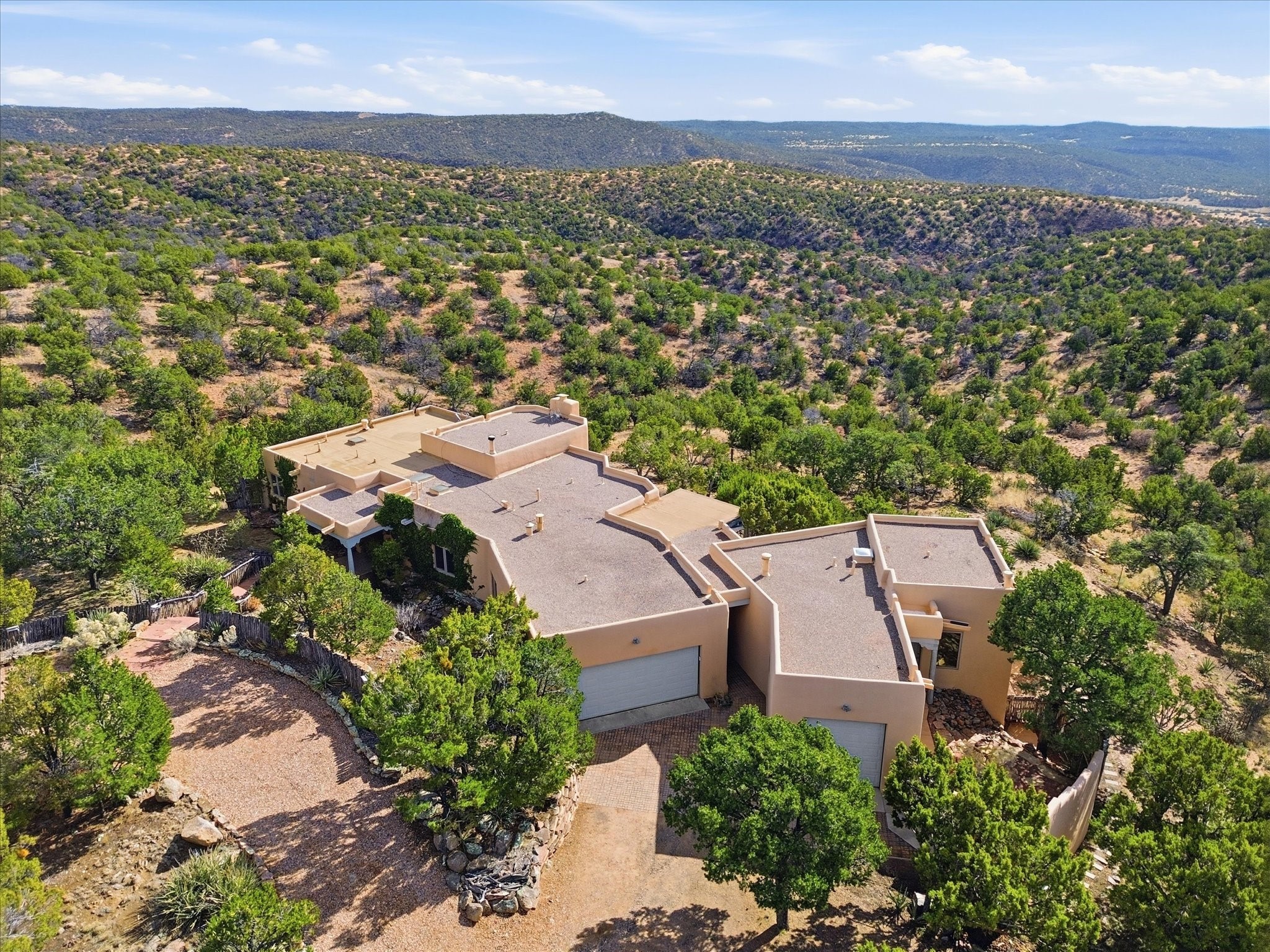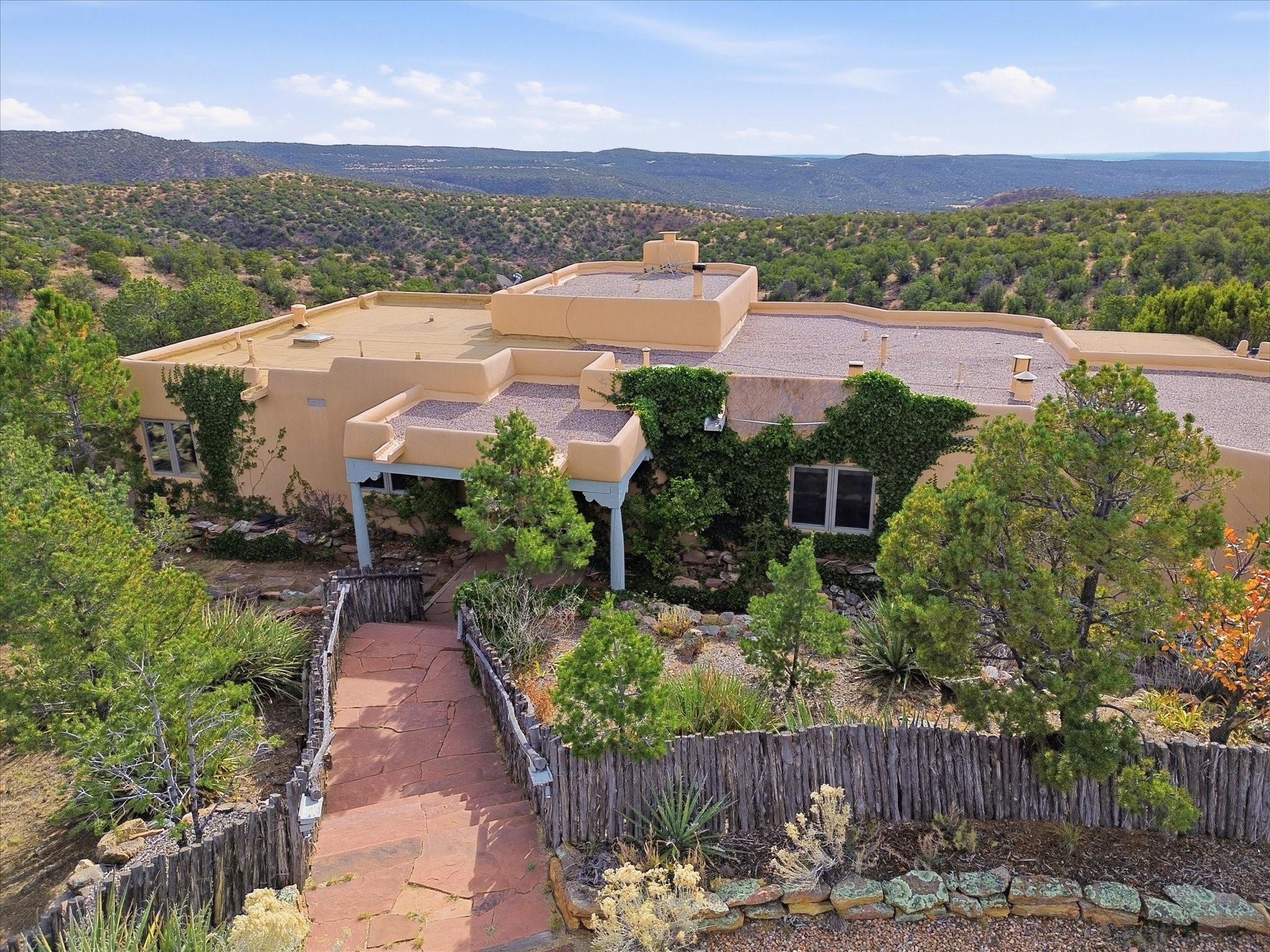 Discover this delightful home and guest house with a pleasant studio space for work or hobbiessituated on 4.3 acres capturing the most outstanding and mesmerizing views in the Santa Fearea. It offers lovely trails right out your front door, and presents all theelegant Santa Fe finishes and has been has been recently delightfully remodeled. The roof hasbeen replaced this year and has a transferrable warranty. Many of the windows were also replaced. Floors throughout are saltillo tile and wood. The entire property is light and bright with all blinds behindglass. Minutes from the Santa Fe Plaza offering prospective buyers a full -time bonus residence or charming secondary retreat. Schedule your showing today!