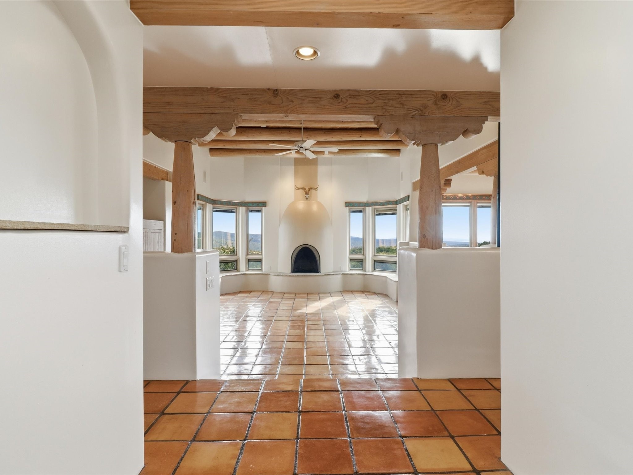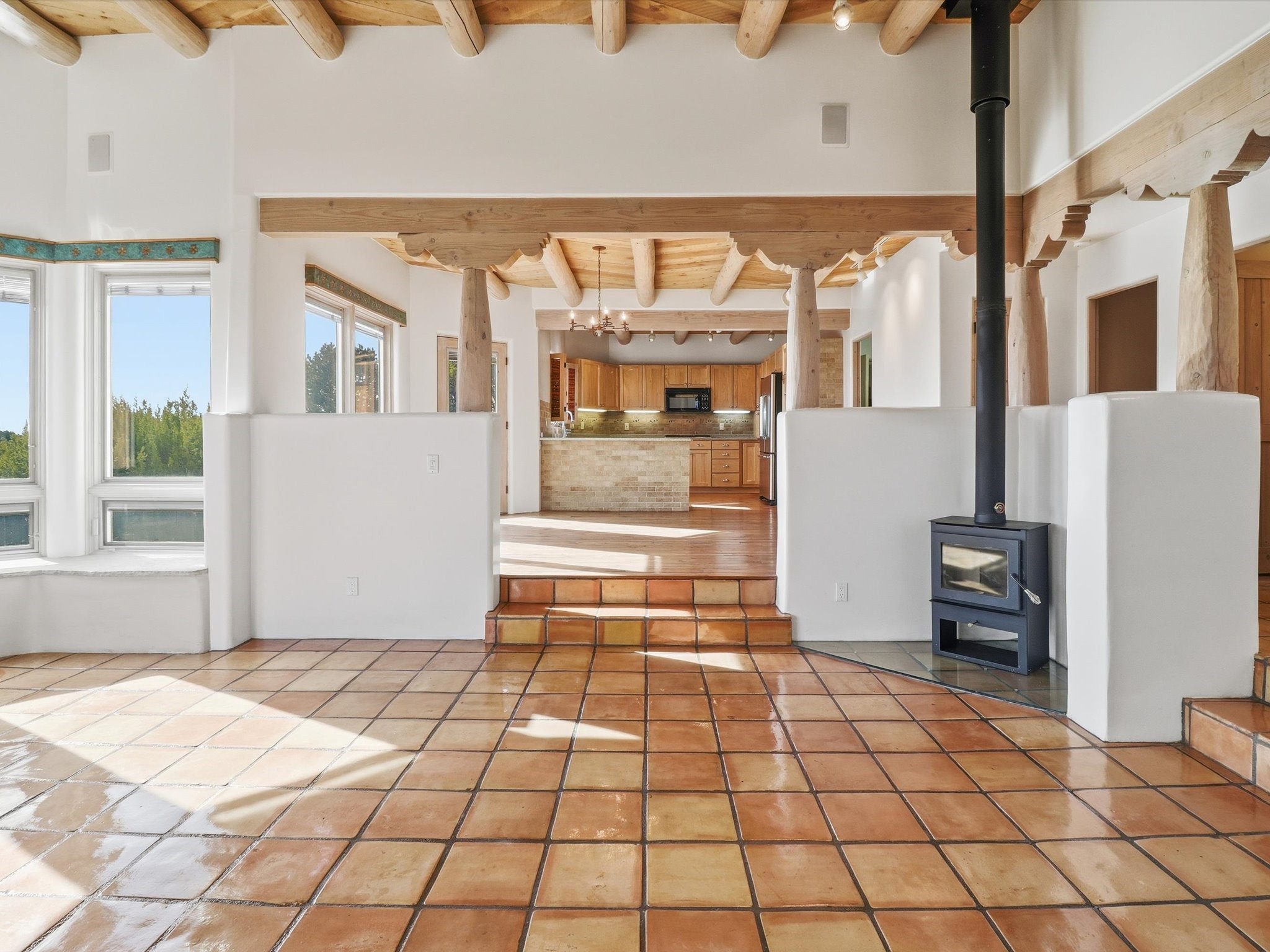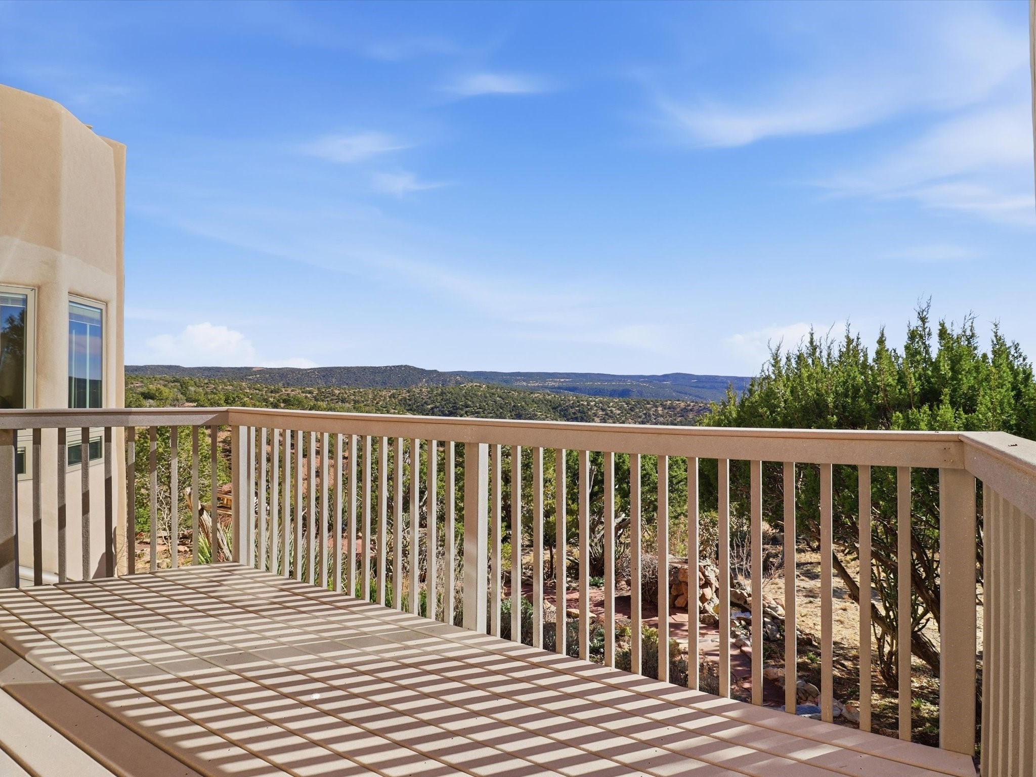 Discover this delightful home and guest house with a pleasant studio space for work or hobbiessituated on 4.3 acres capturing the most outstanding and mesmerizing views in the Santa Fearea. It offers lovely trails right out your front door, and presents all theelegant Santa Fe finishes and has been has been recently delightfully remodeled. The roof hasbeen replaced this year and has a transferrable warranty. Many of the windows were also replaced. Floors throughout are saltillo tile and wood. The entire property is light and bright with all blinds behindglass. Minutes from the Santa Fe Plaza offering prospective buyers a full -time bonus residence or charming secondary retreat. Schedule your showing today!