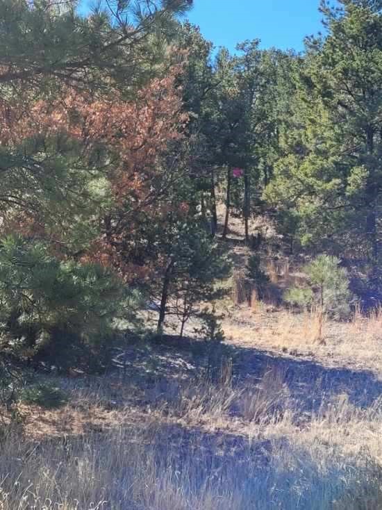 This is one of the most gorgeous lots located within the gated Birds of a Feather LGBTQ community. It is also the largest lot in the community at 3.10 acres offering privacy and magnificent panoramic views of the surrounding mountains and Glorieta Mesa. There is a flat building site on a ridge overlooking a meadow and the lot has many large pine trees.