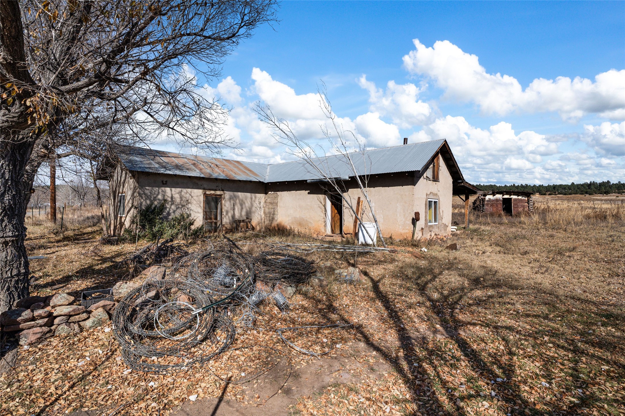 Set across 97.28 acres of classic Northern New Mexico landscape, this remarkable Sapello property--listed under 258 County Road A1 and 6 Calle de San Antonio--offers unmatched privacy, deep history, and the rare gift of long-established water rights. The land is bordered by the gentle flow of Manuelitas Creek, creating a peaceful backdrop for the charming 1,200 sq ft home that sits tucked among open meadows, pines, and mountain views. According to the MLS data, the home includes 2 bedrooms, 1 bathroom, a loft-style upper room, a wraparound porch, and a basement storage area, with heat provided by a traditional wood-burning stove--a true Northern New Mexico classic. The home's mid-century origins are supported by historical documents noting construction in the early 1950s, with the well drilled in 1973 and a modern, state-approved septic system installed in 2014.Adding to the charm and legacy of the land, the property also includes an older, uninhabitable building--a remnant of the property's past and a window into the longstanding agricultural and familial history of the Manuelitas valley. While not suitable for occupancy, it remains an authentic piece of Northern New Mexico heritage and contributes to the property's character and sense of place.The acreage itself is extraordinary--over 97 surveyed acres of varied terrain, mature timber, pasture, and creekside stretches--offering endless recreational, ranching, or retreat possibilities. Historical records included in the documentation confirm multi-generation acequia-recognized water rights, with dues and usage tracked by the Acequia de En Medio de Manuelitas Commissioners across decades from the 1970s through the early 2000s. This rare continuity highlights both the value and authenticity of the water rights tied to the land. A private well, compliant septic system, and dual access points via County Road A1 and Calle de San Antonio complete the property's practical strengths while preserving its profound sense of seclusion.Whether envisioned as a private ranch, a generational estate, a hunting or recreational haven, or a tranquil escape surrounded by mountains and flowing water, this Sapello property embodies the best of Northern New Mexico--heritage, land, water, and landscape coming together in a unique and irreplaceable offering.