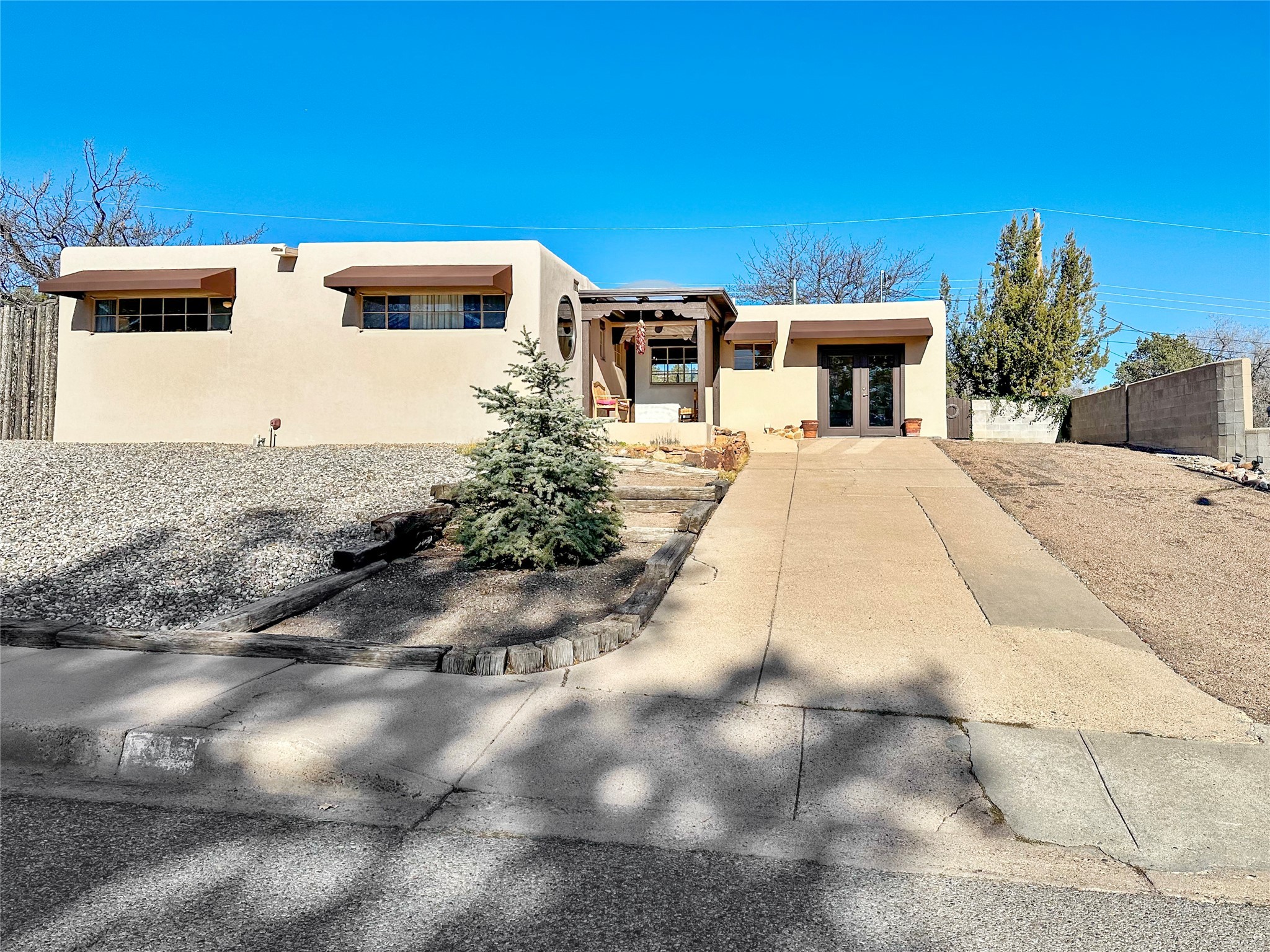 The best location in Casa Solana. Up on the hill overlooking the city with mountain views, this updated Stamm home has it all. An easy walk to the dog park and the community pool. Neighborhood shopping and restaurants, 1.5 miles from the Santa Fe Plaza. Three bedrooms, three baths, plus a bonus studio/office, or bedroom with an exterior entrance. Fantastic updates include a modern cook's kitchen with stainless steel appliances and a Wolf range. Beautifully finished light oak flooring, a two-sided fireplace. Walled backyard with a protected garden area, a large patio with mountain views. New Brai roof (2021 - 8-year warranty, includes annual inspections). On-demand hot water (2024). Ducted evaporative cooler. Mini split (heat/cool) in the studio. Reverse osmosis filtration in the kitchen. Countless updates and wonderful maintenance. Priced to sell. Schedule a showing today.