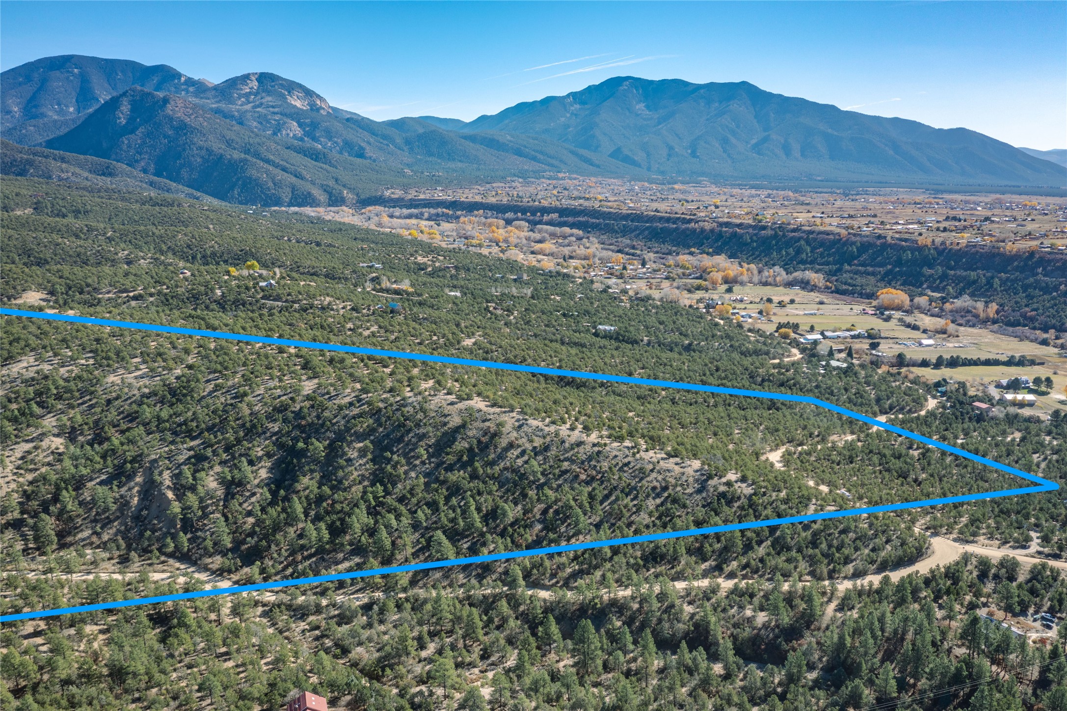 70 Acres | Two 35-acre Parcels | Power Available | 8 Homesite Allowance | A RARE OPPORTUNITY IN VALDEZ-- 70 acrescomposed of two contiguous 35-acre parcels set along the western stretch of Gallina Canyon Road. This expansive offeringfeatures a mix of wooded slopes, natural clearings, and broad ridgelines, providing both dramatic topography and ample, flatter,buildable homesites throughout the property. Access is excellent, with lower Gallina Canyon Road running along the south endand continuing up the western length of the land, even bisecting a substantial portion of the more buildable and subdividableareas. With electric power available along the entire road, future development or residential planning is made far more feasiblethan most large-acreage tracts in the area. From elevated vantage points to gentle benches tucked among the trees,the terrain offers a wide range of siting possibilities depending on desired views and topography. A substantial landholding in ahighly desirable corridor north of Taos--perfect for creating a private compound, multiple residences, or simply securing a largepiece of Northern New Mexico landscape.