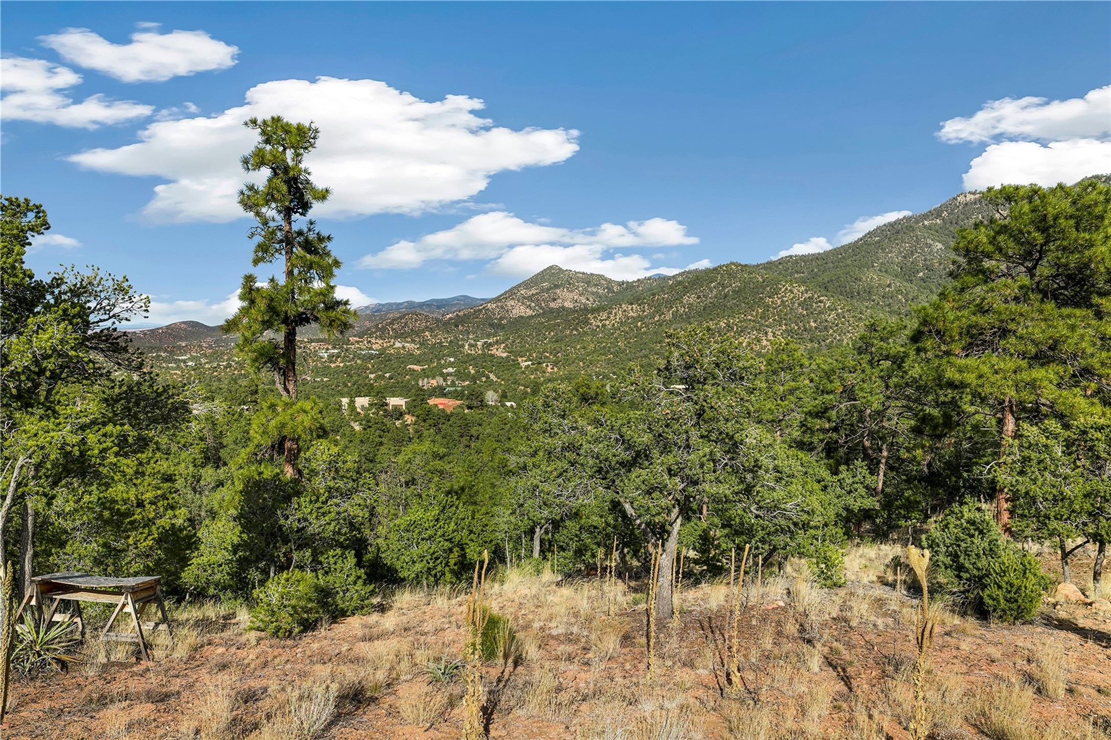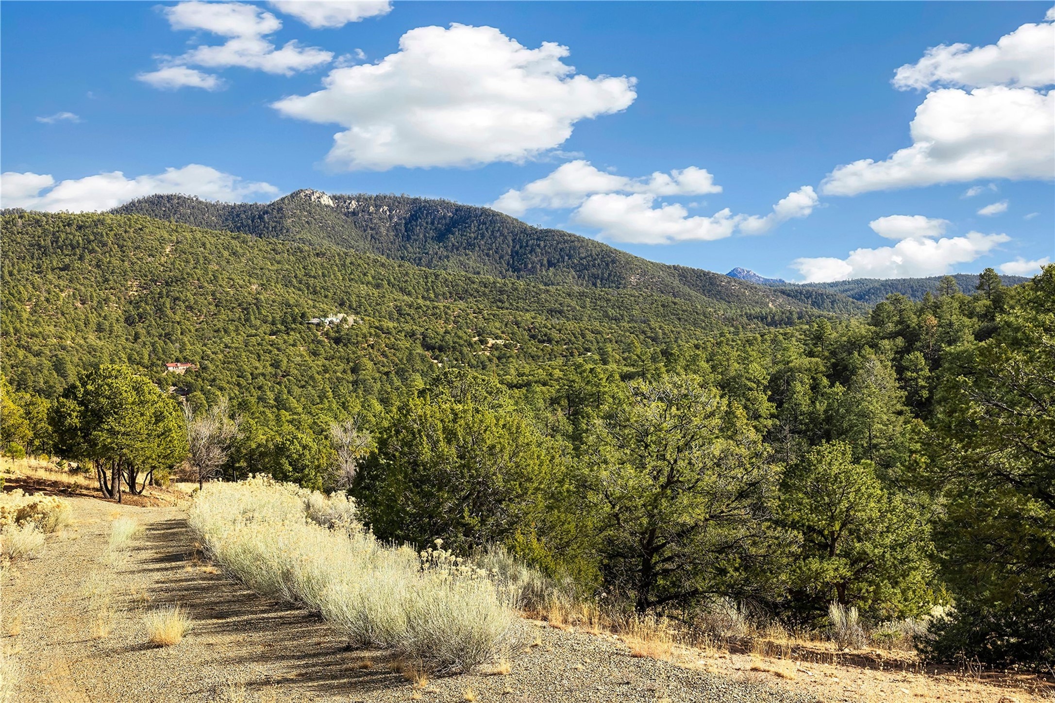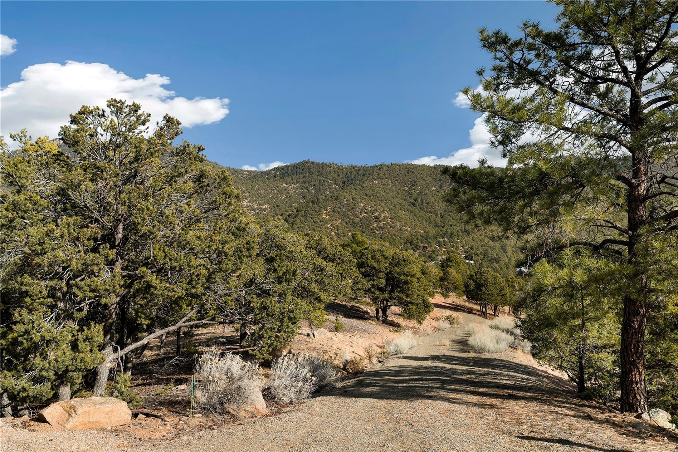 Located at the top of gated Double Arrow Road in the Abajo del Cielo subdivision, this approximately 7.5-acre residential parcel offers exceptional privacy, serenity, and sweeping unblock-able treetop, valley, and high-mountain views. The land features beautiful natural rock formations and Ponderosa Pines, mature pion trees, creating a rich, quintessentially Santa Fe landscape. The building site has been partially cleared to maximize vistas while preserving the wooded terrain, offering an ideal setting for a custom home. Valuable improvements include a septic system and a shared well with one neighbor, providing a significant head start for future construction. Access is convenient, with the road paved nearly to the property; only the last few hundred feet transition to the gravel driveway leading to the homesite. With generous acreage and varied terrain, the property supports thoughtful site design, and outdoor living spaces. Minutes from St. John's College, Museum Hill, and surrounding trail systems, this location blends peaceful seclusion with quick access to the Santa Fe Plaza, Canyon Road, shops, dining, and cultural amenities. A rare opportunity to build in a gated mountain setting off of Old Santa Fe Trail with natural beauty, infrastructure already in place, and no HOA fees, with the exception of shared road maintenance.