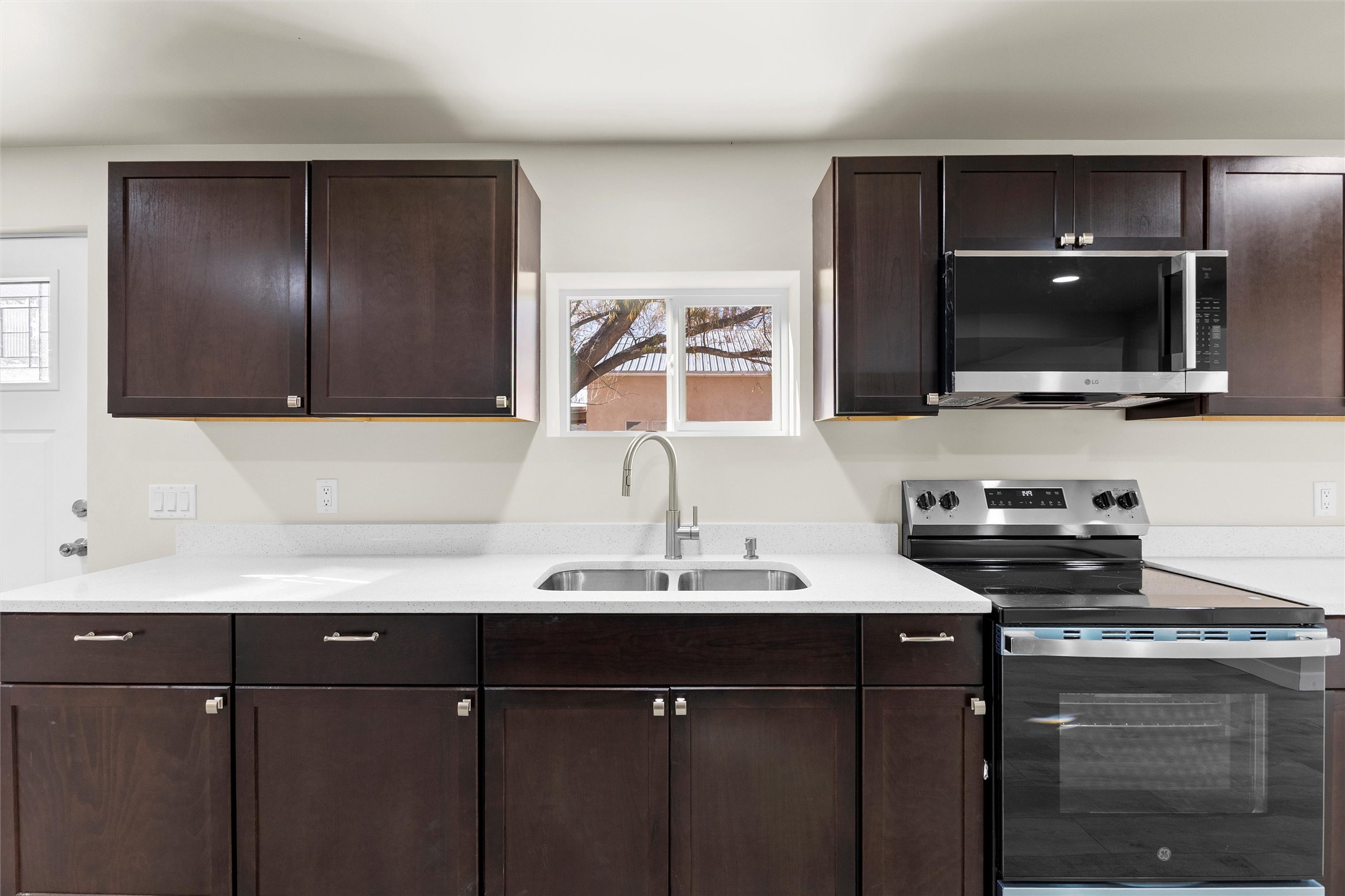 Beautifully Remodeled 3 Bedroom Home in the Heart of Espaola - 1,812 Sq Ft on 0.45 Acres. Welcome to 502 W. Pueblo, a stunning 3-bedroom, 2-bath, newly remodeled home offering comfort, style, and convenience across 1,812 sq ft of living space. Situated on a generous 0.45-acre lot, this property provides ample outdoor space for gardening, entertaining, or future expansion.This move-in-ready home features numerous upgrades including a new roof, fresh interior and exterior paint, new stucco, new windows, a new electrical system, and an efficient mini-split heating and cooling system. The kitchen has been completely updated with new appliances, modern cabinets, and elegant quartz countertops. The spacious primary ensuite is a true standout, showcasing impressive 10-foot ceilings, a beautiful herringbone tongue-and-groove design, and traditional vigas, creating an inviting and authentic Southwestern atmosphere. Centrally located near shopping, restaurants, and everyday amenities, this home also offers easy access to Los Alamos and Santa Fe, making it ideal for commuters or anyone looking for convenience without sacrificing comfort. Don't miss this beautifully refreshed home in a desirable location--schedule your showing today!