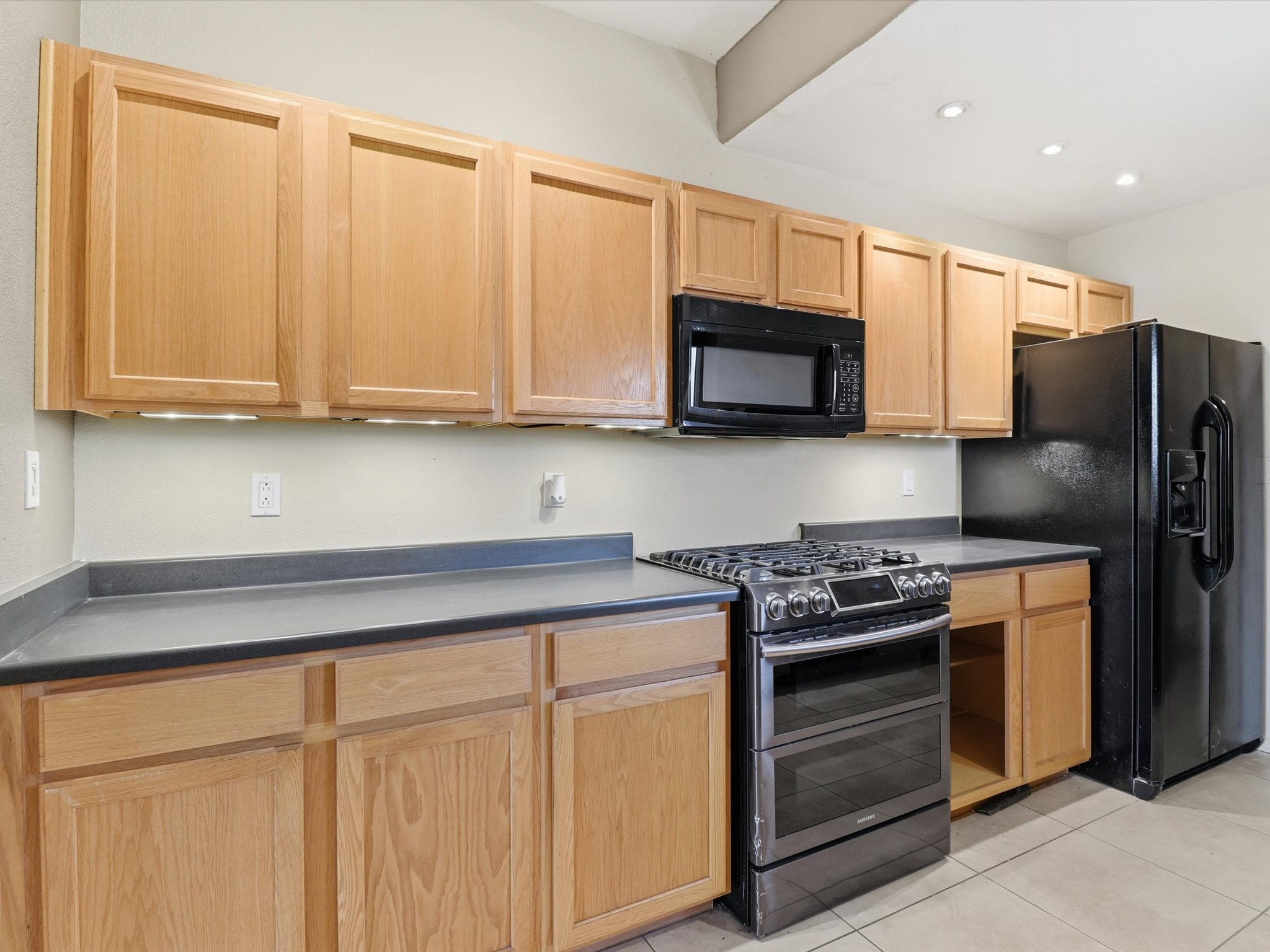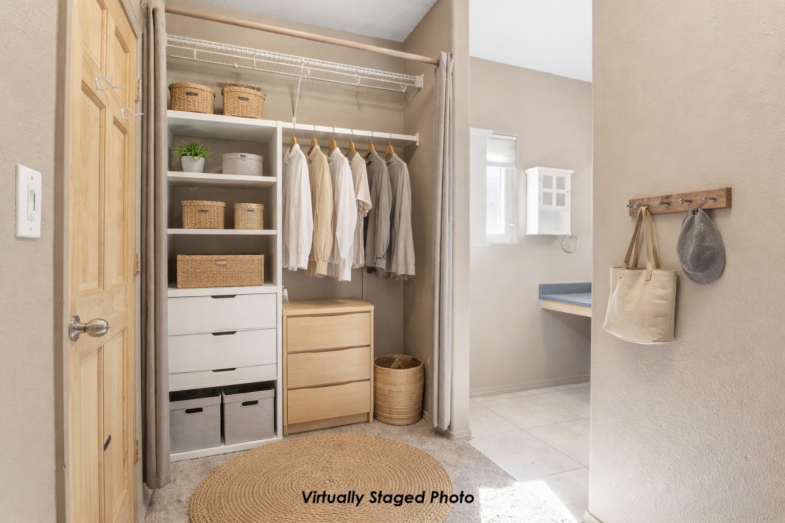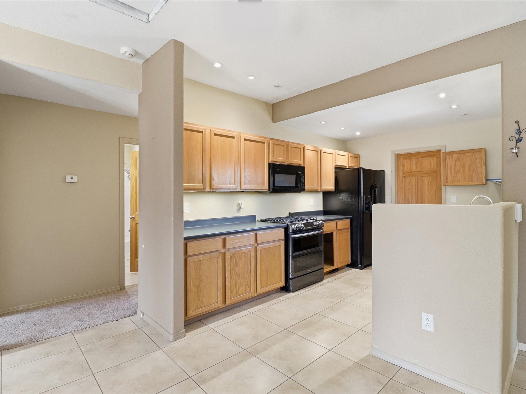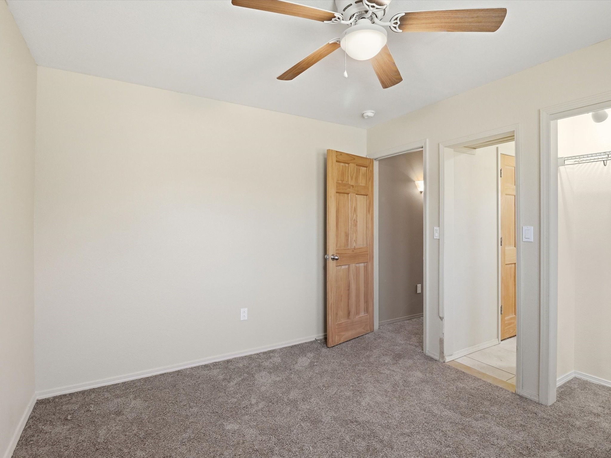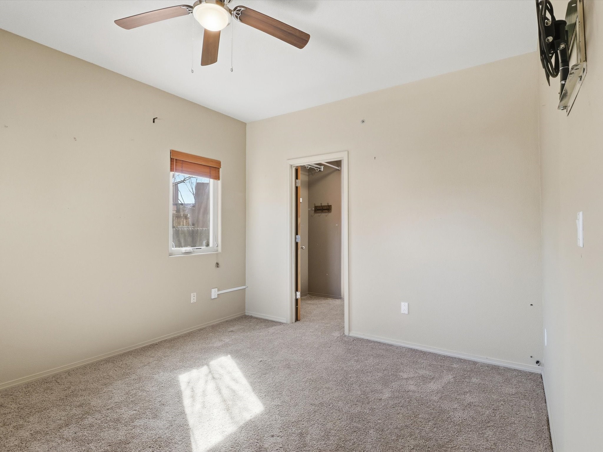 Not far from Santa Fe Country Club, this home offers a blend of comfort, style, renewable energy and Affordability. The practical open floor concept seamlessly connects the kitchen, living room, and dining area, allowing natural light to fill the space and creating a warm, inviting atmosphere.From the main entrance, you're greeted with thoughtful flow--to your right, a private kitchen area featuring ample cabinets for storage, a dishwasher, gas stove, and fridge, and direct access to the laundry room, making daily chores effortless. From the kitchen, step straight into the living space, which opens through a small, covered portal to the backyard with a flagstone patio and pergola, ideal for outdoor gatherings or peaceful afternoons in the garden. The home's two wings provide privacy and functionality: Primary suite: A serene retreat with an attached bathroom and open walk-in closet, offering comfort and style in equal measure. Second wing: A hallway leading to two additional bedrooms and a full bathroom with direct access from the second bedroom, perfect for family or guests. Additional highlights include radiant heating to keep you cozy during chilly winters, tile flooring to keep feet cool in summer, and an attached garage accessible via the kitchen through the pantry/washroom for easy grocery unloading. Located close to Highway 599 for convenient commuting to Santa Fe downtown, Los Alamos, Albuquerque and airport access, this home is a true Santa Fe gem, combining indoor-outdoor living, natural light, and thoughtful design in a tranquil neighborhood setting.