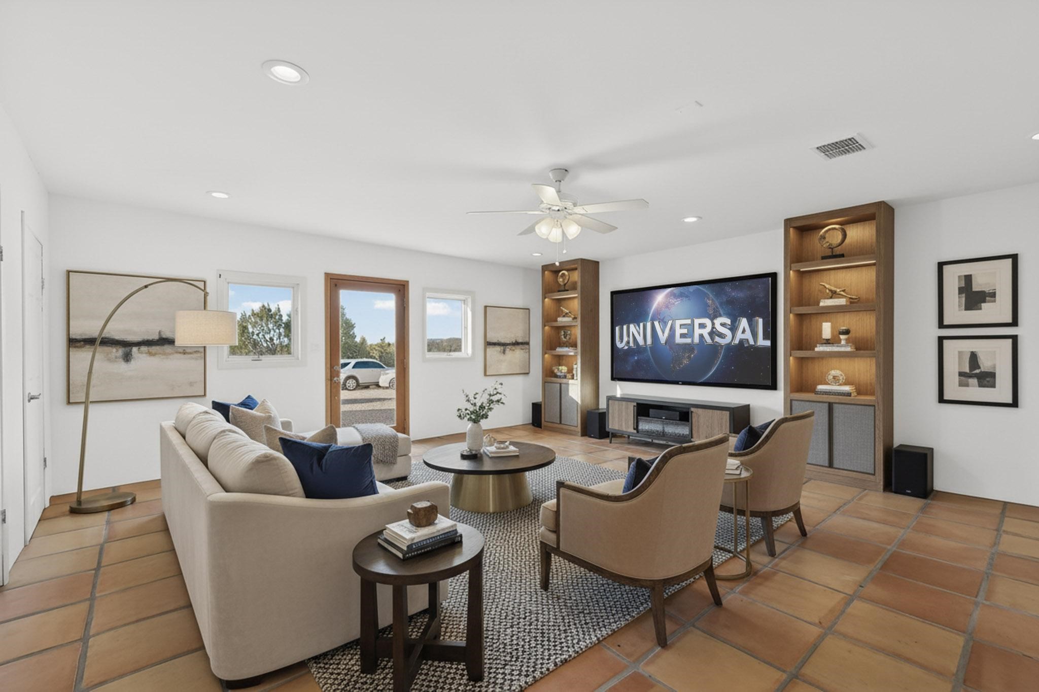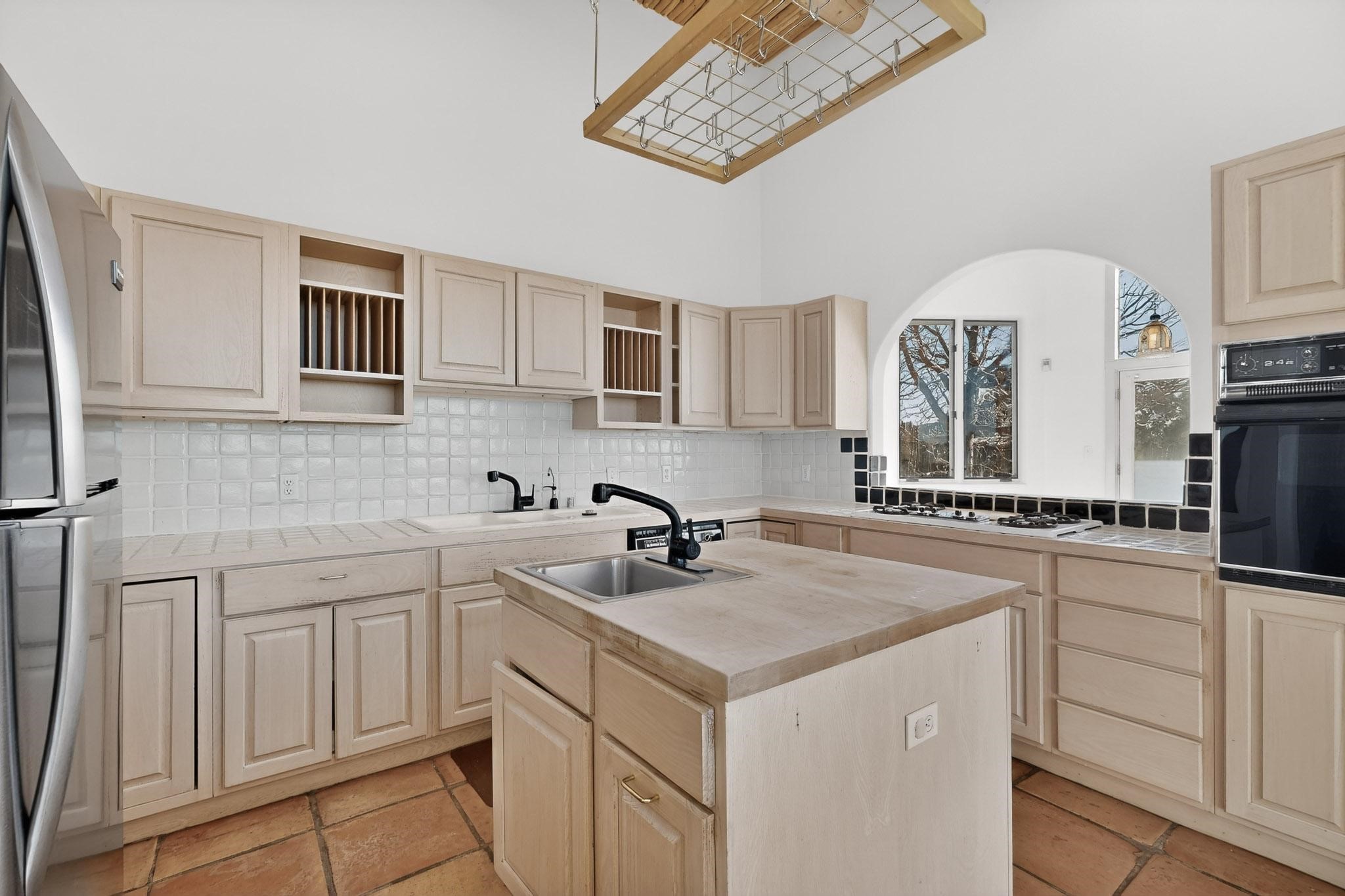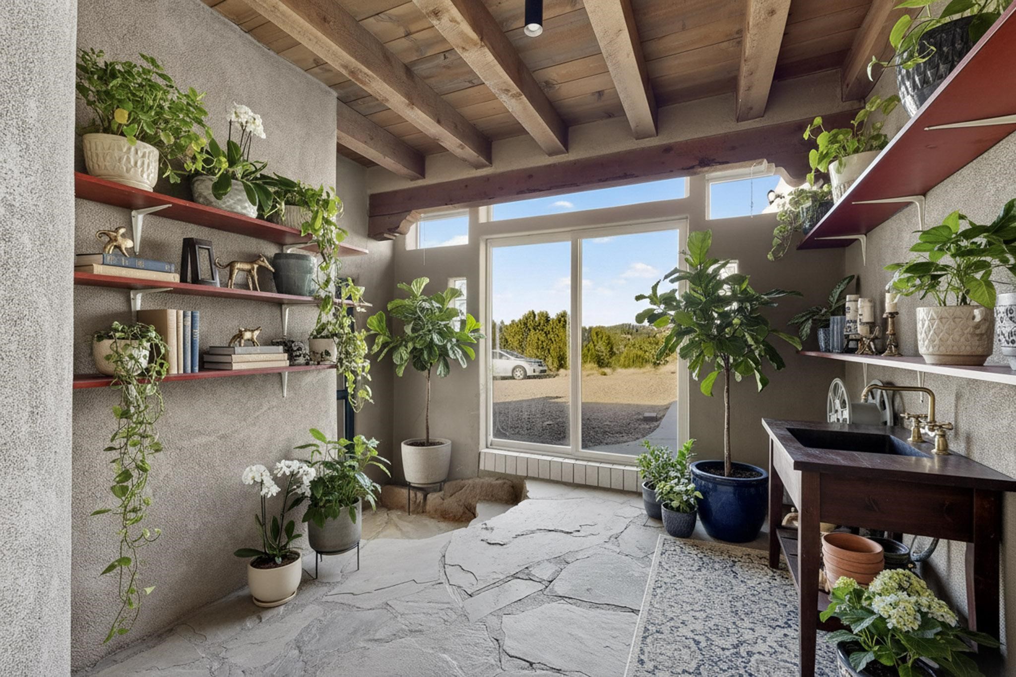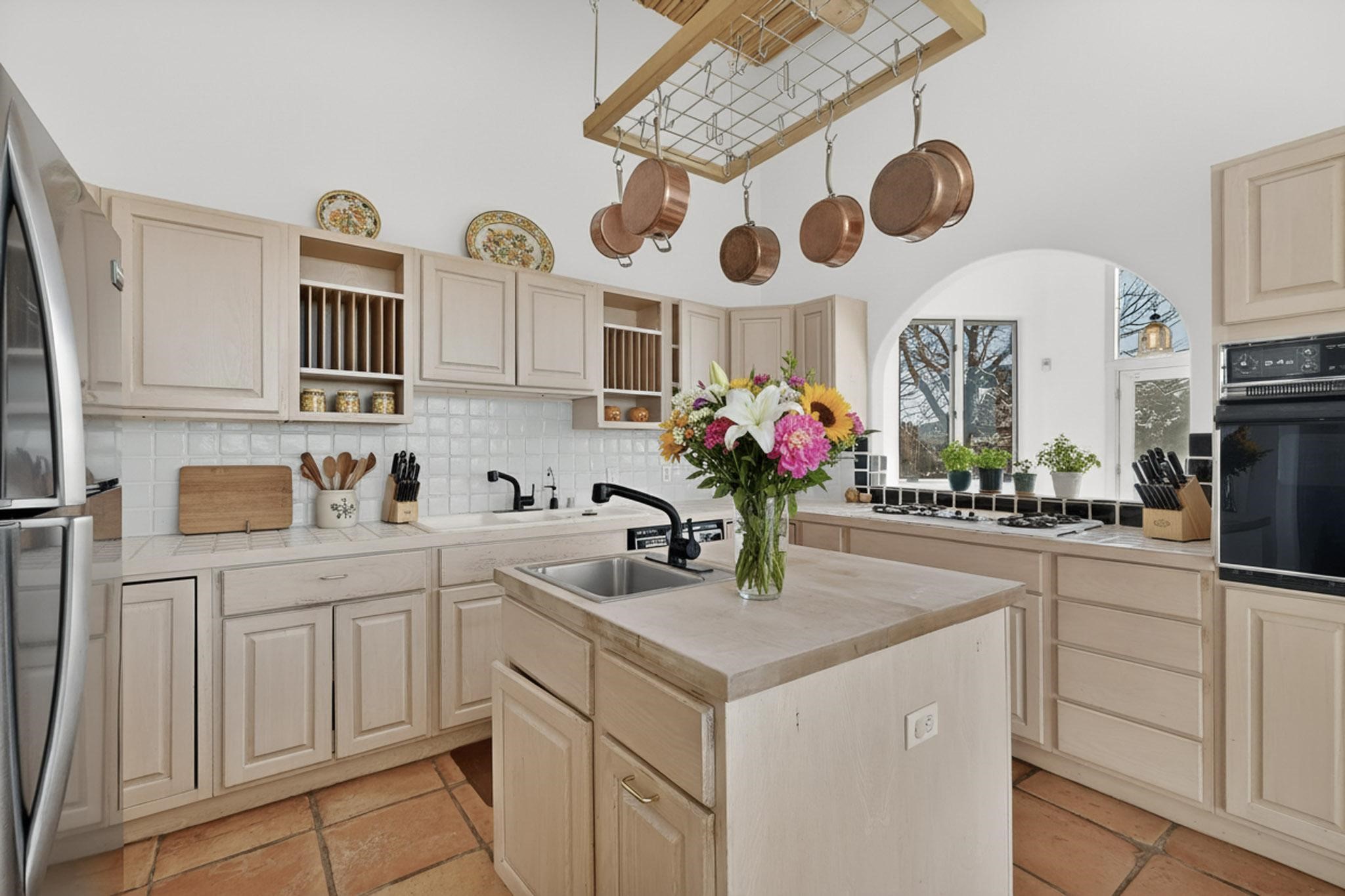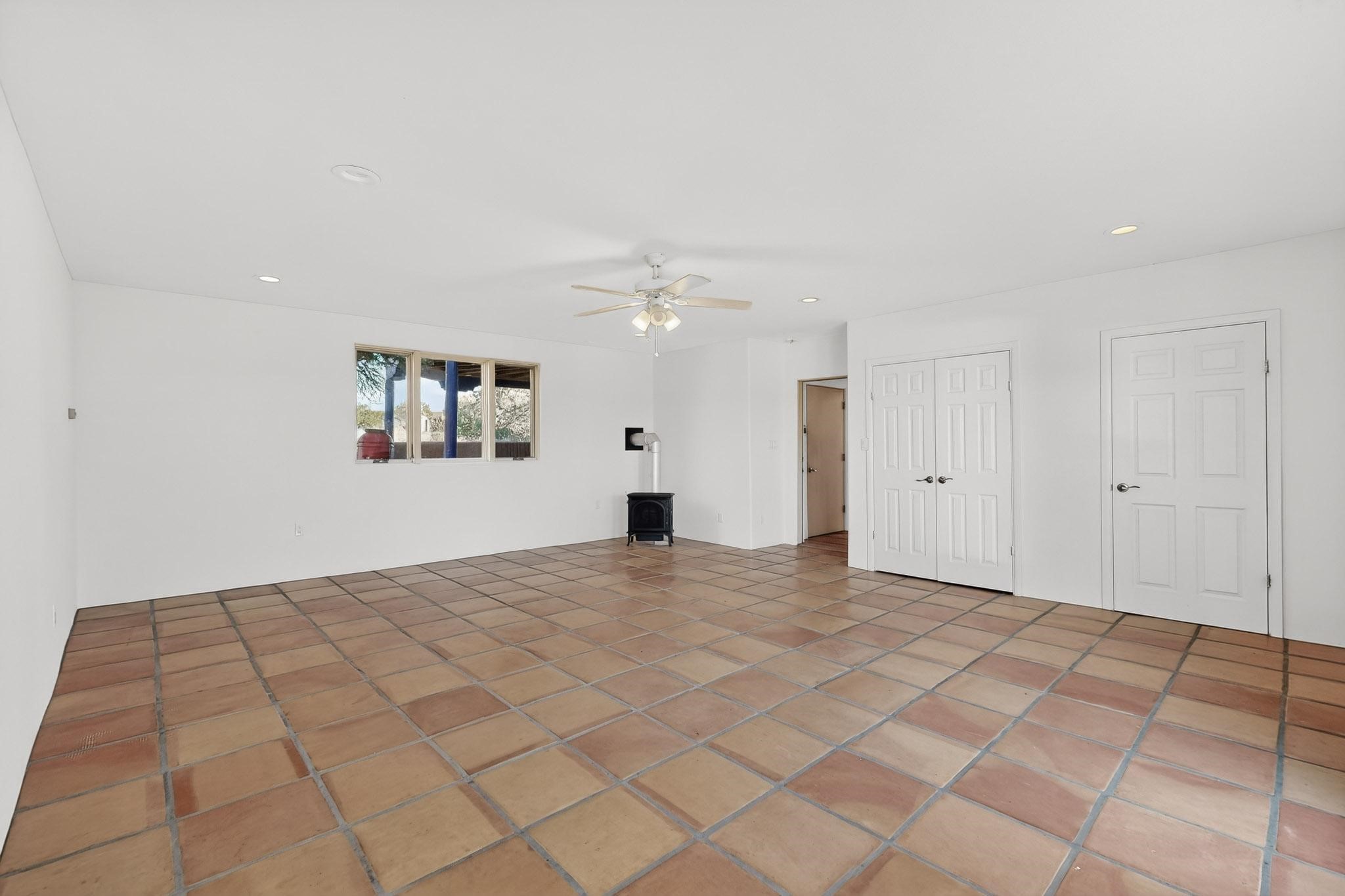Lovely Eldorado home, situated on an expansive and beautifully landscaped almost 2-acre lot, is filled with natural light and exudes Santa Fe charm. Enjoy panoramic mountain views and amazing sunsets from inside the home and multiple outdoor areas enclosed by coyote fencing and flagstone walk-ways. Offering 2 bedrooms and 2 bathrooms with approximately 2800 square feet, the home features versatile areas perfect for a range of uses. A heated flex space (with gas stove) with appx 390 sqft, separate entrance and direct access to the home provides the ideal setting for a studio, office, workout room, or playroom. Off the spacious primary suite, you'll find a cozy office or sitting room with built-in desk space, as well as a large, light-filled appx 550 sqft unheated room with direct outdoor access--perfect as a work-out room, sitting/TV area, or relaxation space. There is ample storage throughout. The inviting living room boasts soaring ceilings with vigas, a kiva fireplace, and abundant natural light. The owner's suite includes a fireplace and ensuite bath with separate tub and large walk-in show all offering a serene retreat. Car enthusiasts will love the oversized garage (approx. 1,365 sq ft) with room for up to six cars & possibly an RV. Additional highlights include: 4 fireplaces-Abundant skylights-Radiant heat (we have been told not Kitec or Entran II)-Wood doors-Large laundry room with closet & washer/dryer-Saltillo tile floors-Rooftop viewing deck-Vigas in almost every room including bathrooms-Nichos-Banco-Corbels-Archways-Ceiling fans-Newly paved Frasco Rd-Multiple decks and sitting areas and more. This unique property combines Southwestern character with extraordinary versatility and spectacular views.
