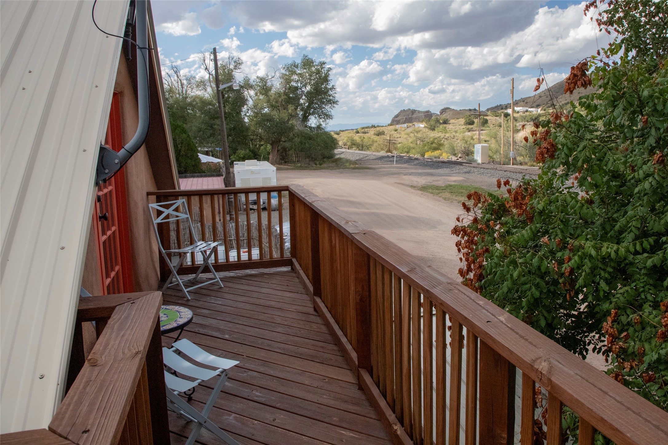 10 Rail Road/45 Main Street is up for sale. This historically rich property sits on the site that was home to the first telegraph and printing office that connected early residents of Los Cerillos with the rest of the world. Predating Columbus , the area has been the the source of the turquoise that traded as far north as modern day Canada, and south, deep into Central America. Later discoveries of gold, silver, coal, and other precious minerals brought in miners by the thousands. A short drive from Santa Fe on the The Turquoise Trail, the residence at 10 Rail Road is a gleaming facet of this lustrous history. Sure to delight those with a taste for adventure, the property also includes an undeveloped address abutting Main Street- ready for a savvy buyer to create with.Lovingly renewed by skilled area craftsmen, and in keeping with the neighborhood flavor, noteworthy emphasis has been placed in the use of original and reclaimed materials while delivering the overdue updating and renovation that leaves the home ready to fulfill the needs of the modern era. Substantial upgrades include new electrical from top to bottom, new plumbing from the meter to the fixtures, a Jotul wood stove and 3 unit GE minisplit system, and new pitched metal roofing to shed our summer monsoons with ease. The layout is conducive to living and working, with the kitchen, bathroom, dining, living room, and two bedrooms downstairs. Upstairs holds the third bedroom/flex room with french doors opening to a deck overlooking the historic railroad that helped shape the region. The Amtrack passenger train still runs twice a day, and the view out to the Cerillos Hills State Park is breathtaking. The back lot with its own county address, is ample, large enough to split off for separate development or to add complementary structures to the existing property. Studio? Workshop? Garages? Gardens? Gallery? With your vision, this property will continue to flourish.