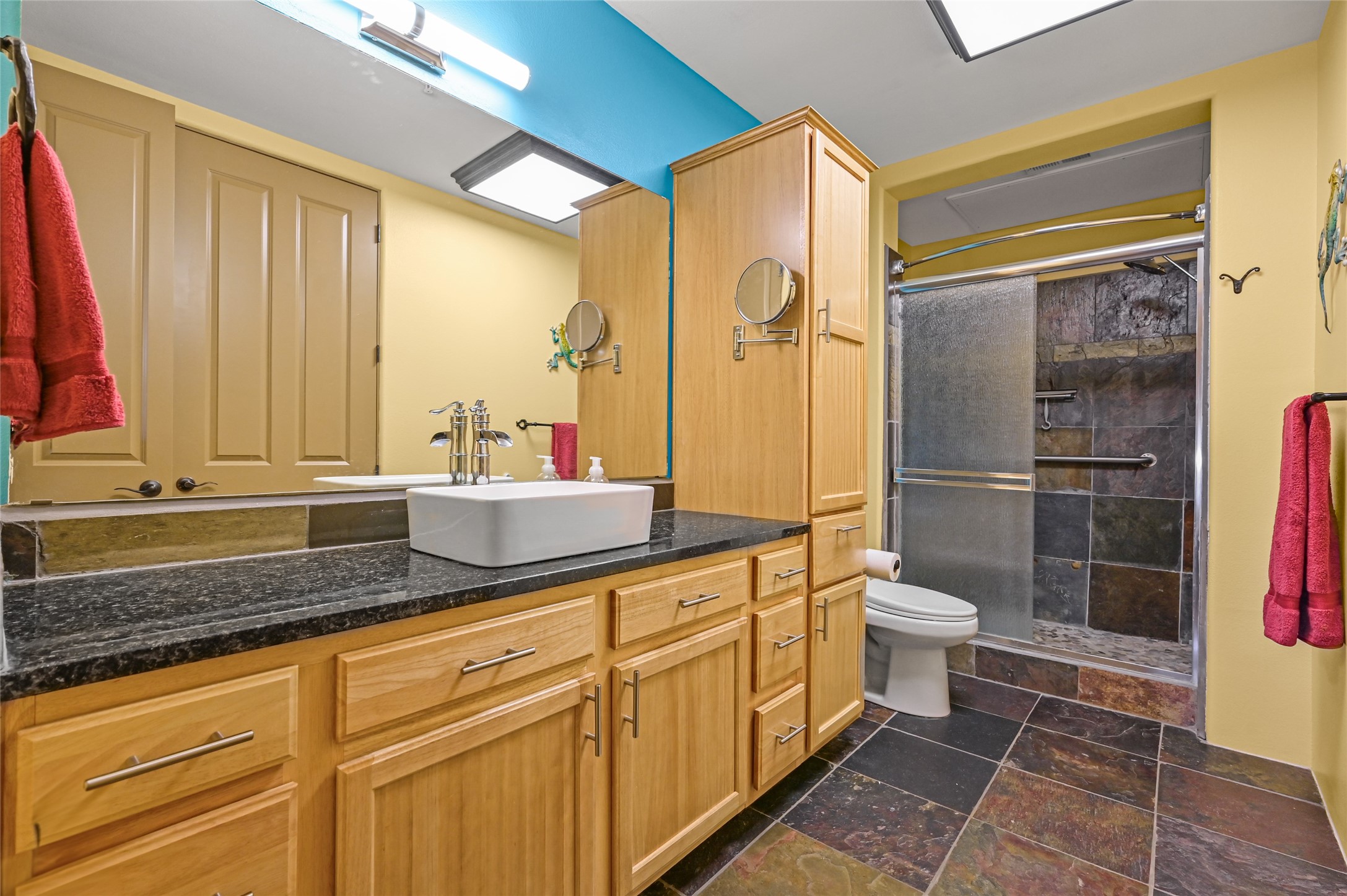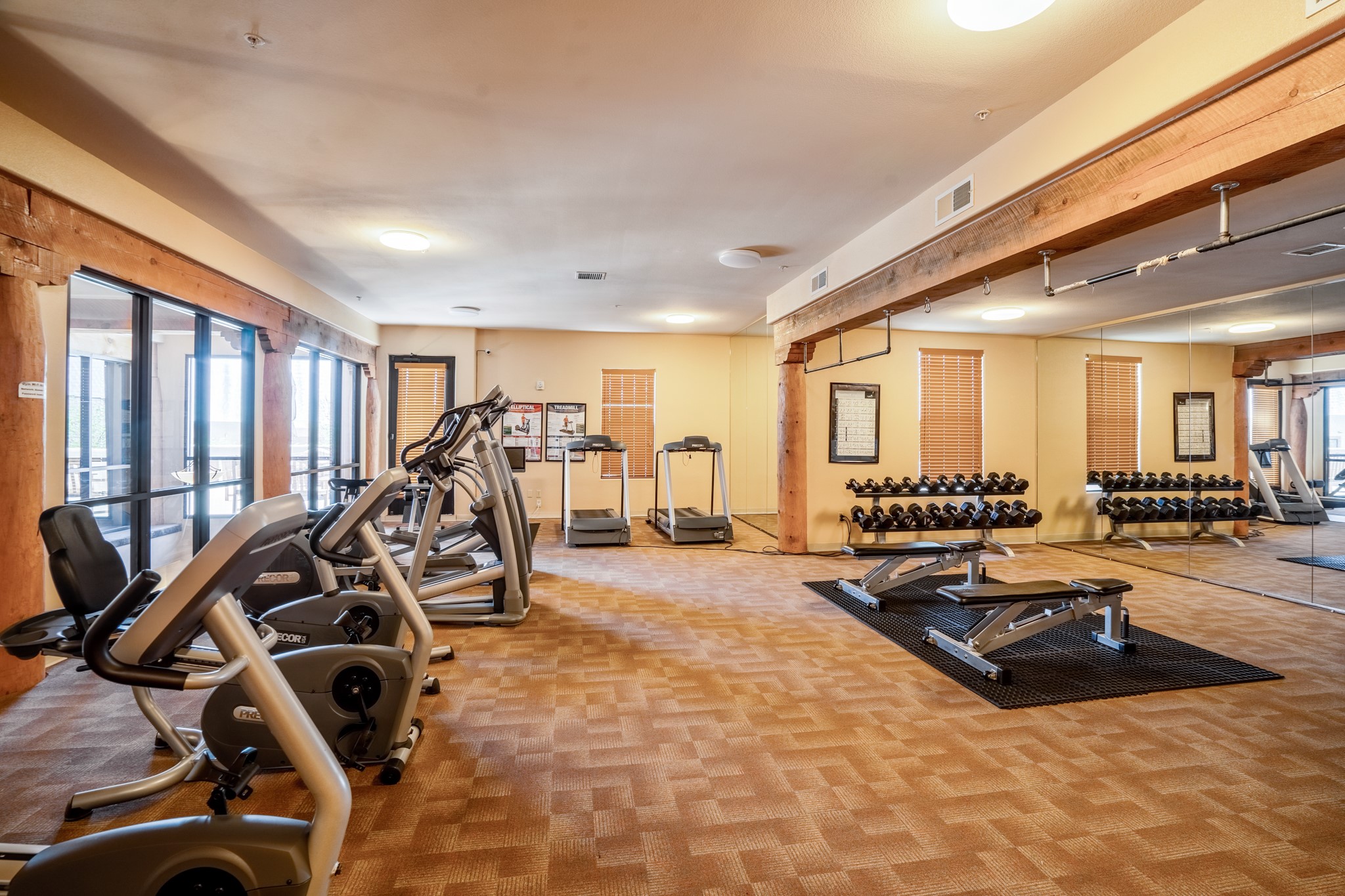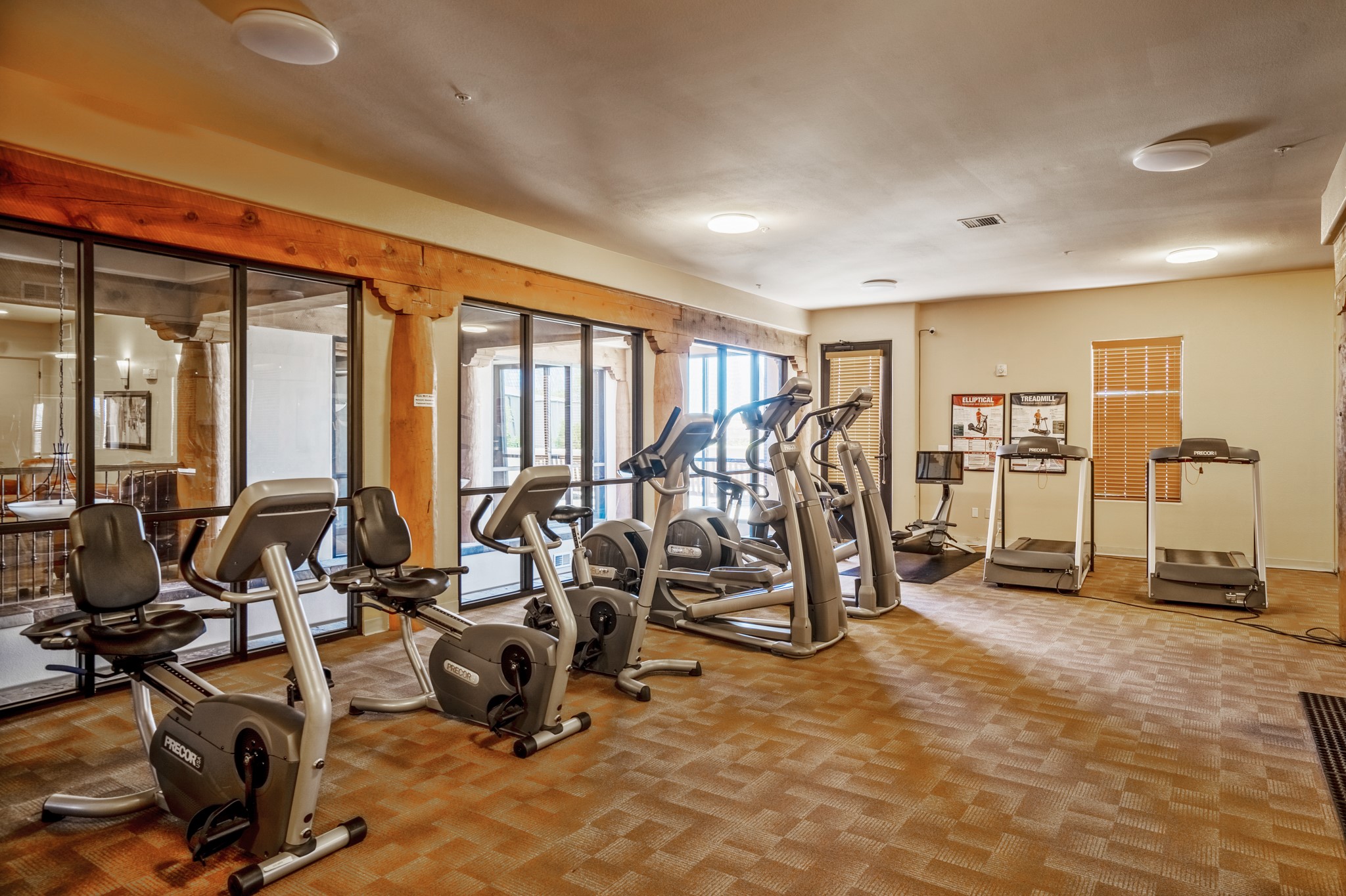 Simple living at The Alameda. This move-in-ready condominium offers one bedroom and one-and-a-half baths, showcasing classic Santa Fe architectural charm with exposed vigas and corbels, along with wood-like and slate tile flooring, granite countertops, and a gas kiva fireplace. A built-in office area provides an ideal work-from-home solution, complemented by an in-unit laundry room for added convenience.Ideally situated near the elevator and the door to the parking area, the location offers exceptional ease for daily living and bringing in groceries or supplies. The open, well-lit floor plan is warmed by the gas kiva fireplace--perfect for winter months--while stainless steel appliances and granite countertops elevate the kitchen's polished finish.The Alameda condominiums offer premier amenities, including a fitness center, community kitchen, multiple lounge and common areas, and a heated outdoor courtyard pool with BBQ grill. Residents enjoy periodic community events and happy hours that enhance the sense of community.Additional features include an extra storage unit conveniently located 2 doors down the hall, a single-car garage, onsite professional management, and 24-hour controlled access. Centrally located near shopping, dining, and entertainment, this residence blends timeless Santa Fe style with modern comfort and convenience.