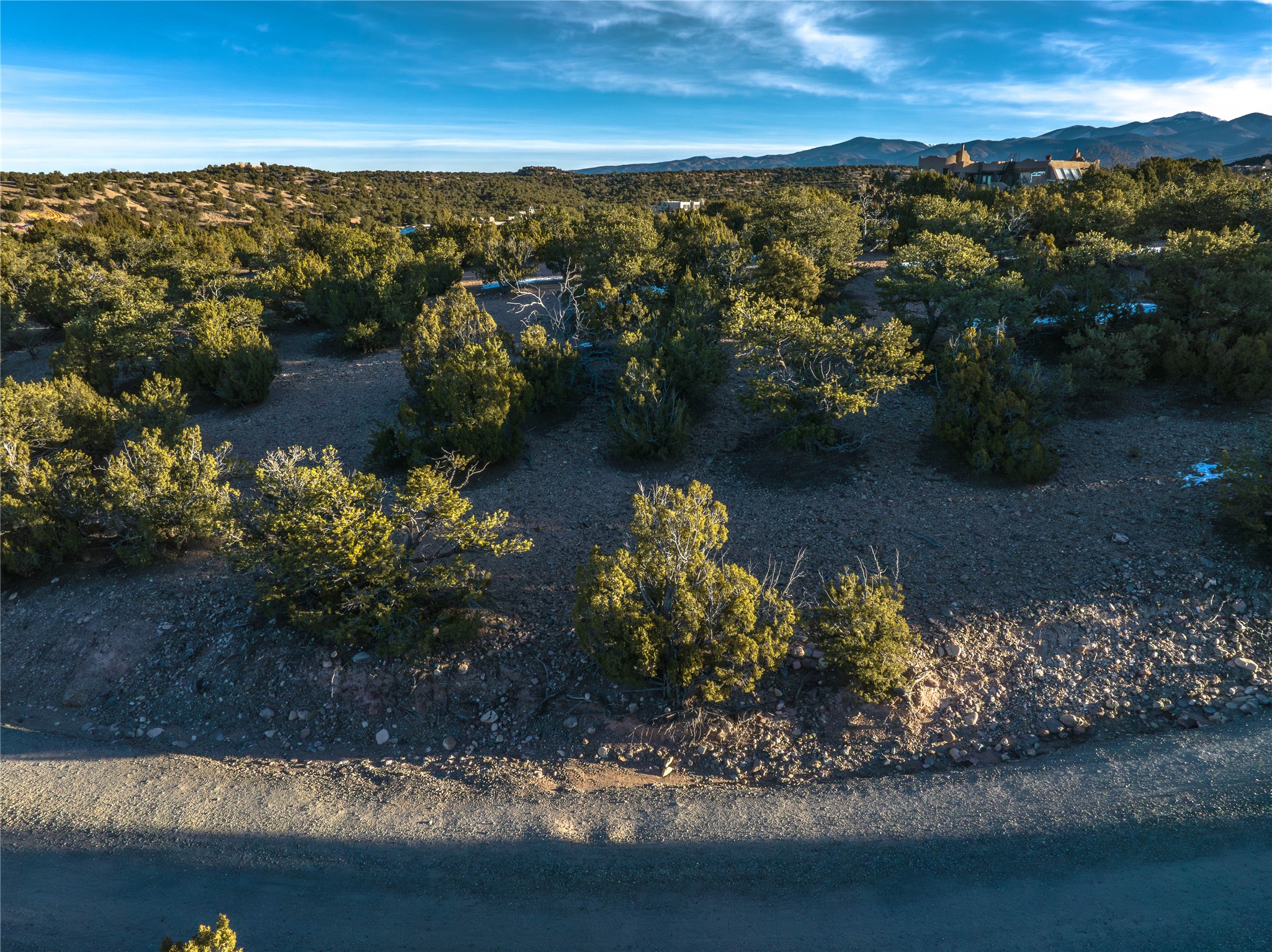Luxury, Views & Privacy in the Coveted Tano Road Area - Set in one of Santa Fe's most desirable Northside locations, this exceptional 2.5-acre treed parcel offers a rare opportunity to create a refined rural retreat while remaining just minutes from the city's celebrated cuisine, art, and cultural life.Oriented west off Tano Road and shaped by a natural ridge, the property enjoys breathtaking panoramic views stretching for miles - encompassing the Sangre de Cristo, Sandia, Jemez, and even Colorado mountain ranges. Expansive skies, excellent solar exposure, and remarkable sunset views make this an extraordinary setting for a custom home designed to capture both light and landscape.A lightly traveled road follows the ridge line, thoughtfully dividing the land into two approximately 1.25-acre segments. This configuration provides an ideal primary building site on one side of the road, while ownership of the adjoining acreage across the road offers the added benefit of preserving open space, privacy, and long-term view corridors - a meaningful luxury in this sought-after area.Not part of a subdivision and free from HOA restrictions, the property allows architectural freedom and a true sense of independence. While a shared well was reflected in a preliminary title search, the linked documents did not match, therefore we are working to firmly establish the agreement's existence. Legal access is established, and the setting reflects the essence of classic Santa Fe estate living - privacy, natural beauty, and wide-open land, without sacrificing convenience.Here, serenity and space coexist effortlessly with proximity to Santa Fe's world-class dining, galleries, music, and events. This is a rare offering for those seeking views, acreage, and elevated rural living, all within easy reach of the heart of Santa Fe.