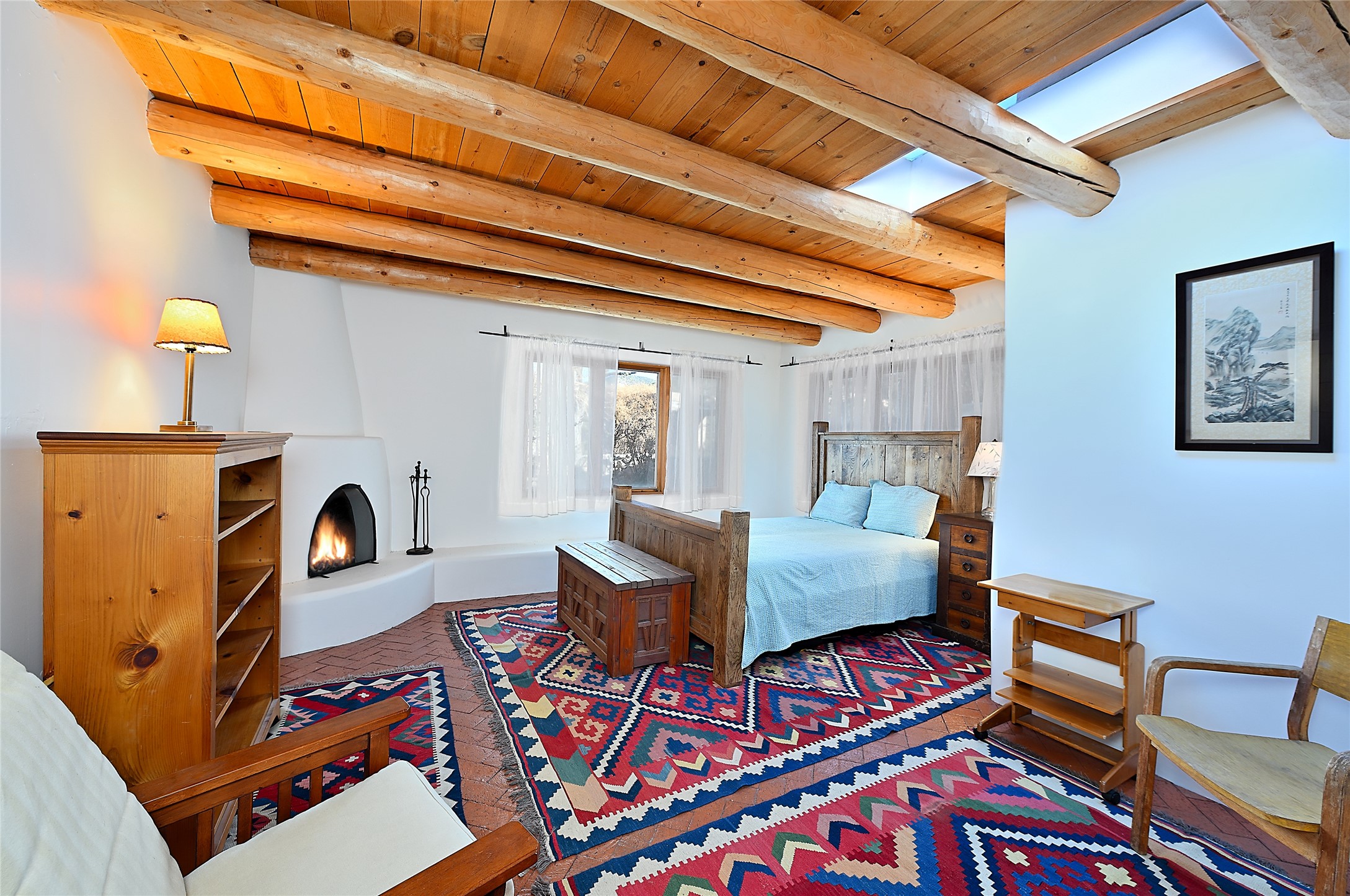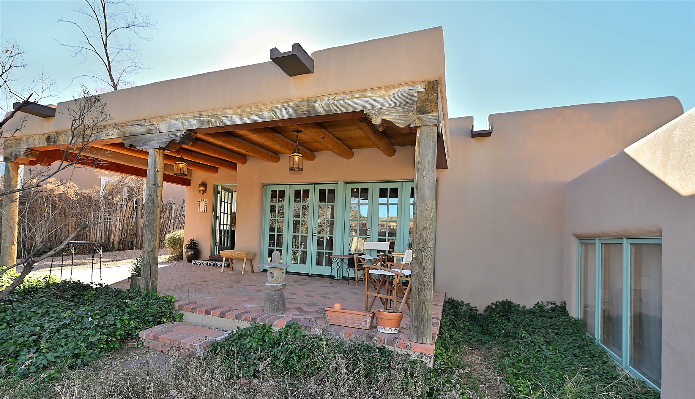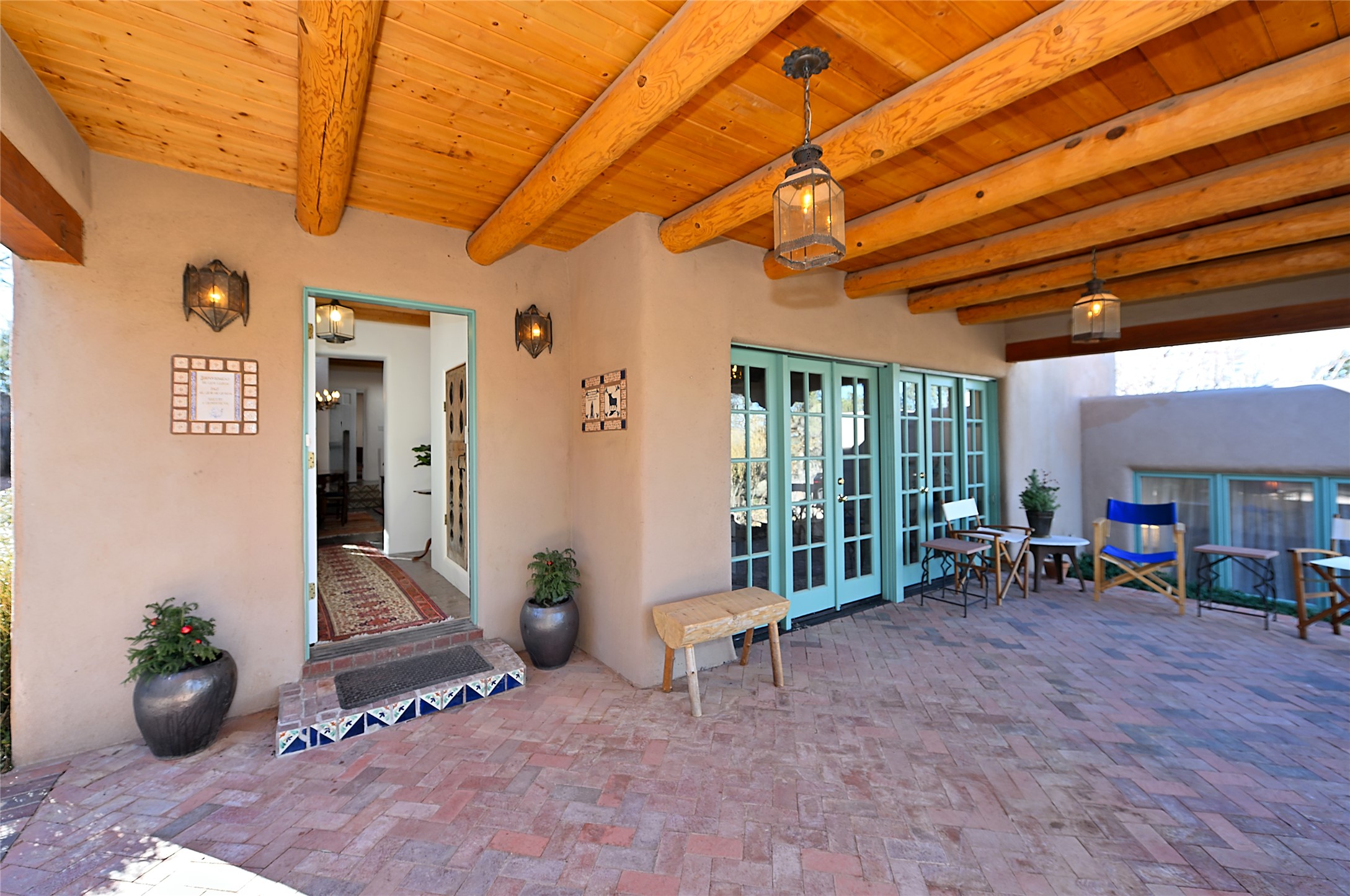 A gated driveway leads to wide pastoral views, with a open Sangre de Cristo mountain backdrop. The widows and french doors take in the outside''s beauty within quiet adobe walls. It's a pleasant, short stroll on "The Camino" to Canyon Road, plus all that downtown Santa Fe has to offer. Prime location with authentic Santa Fe style.
