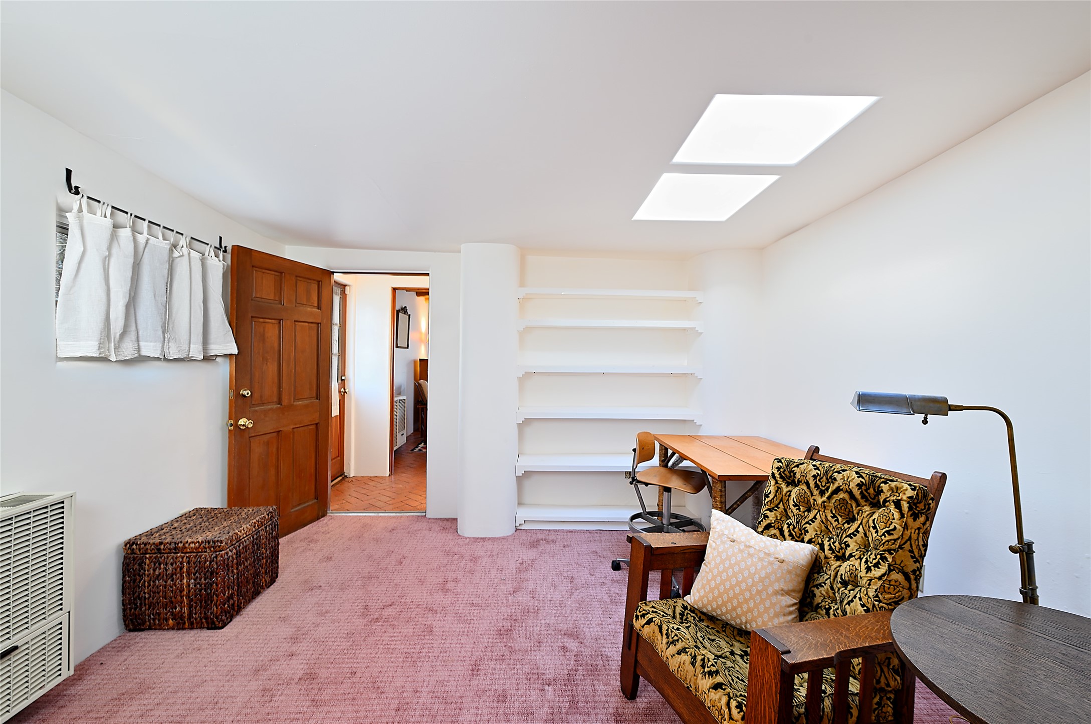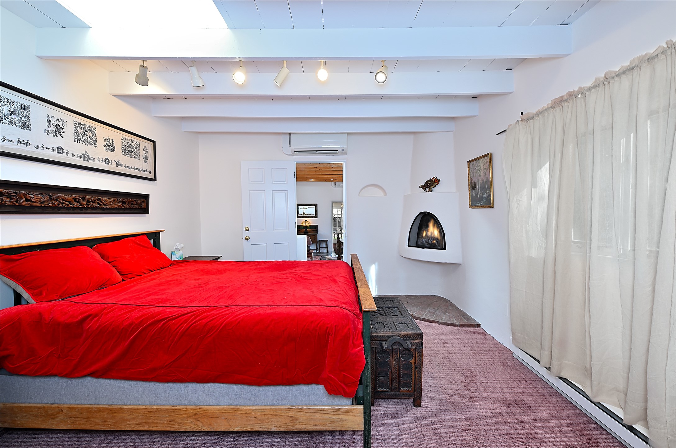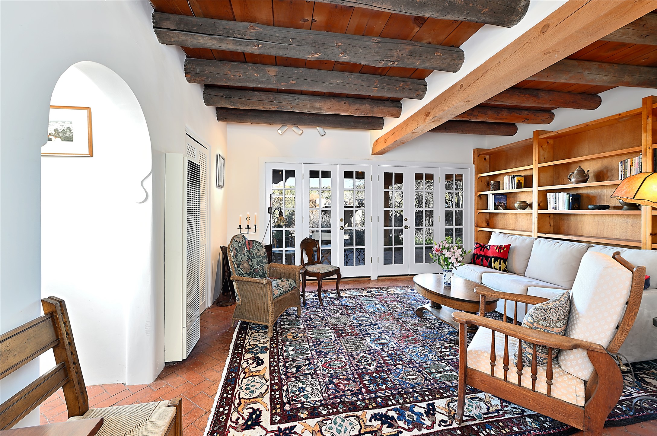 A gated driveway leads to wide pastoral views, with a open Sangre de Cristo mountain backdrop. The widows and french doors take in the outside''s beauty within quiet adobe walls. It's a pleasant, short stroll on "The Camino" to Canyon Road, plus all that downtown Santa Fe has to offer. Prime location with authentic Santa Fe style.