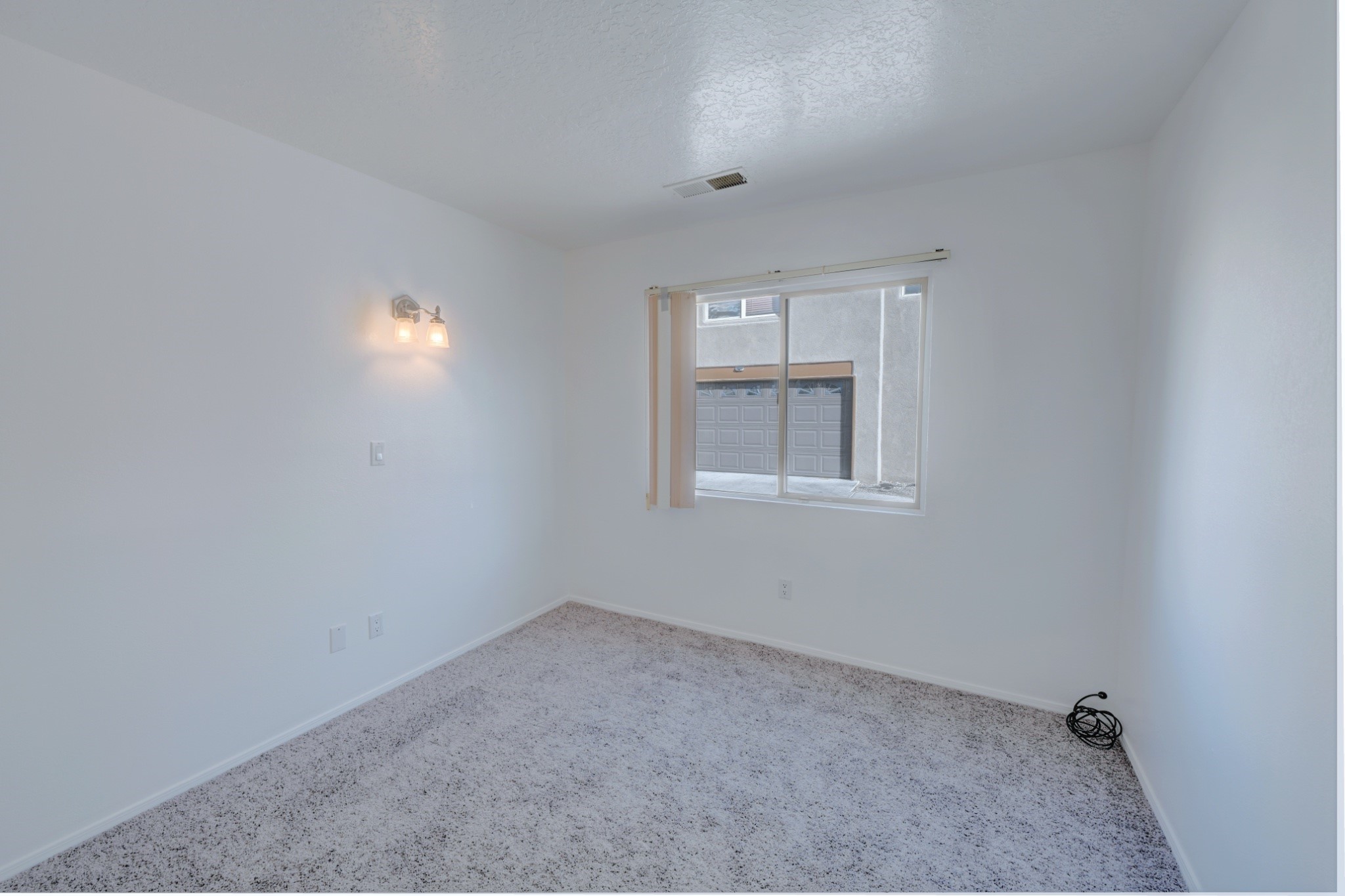 Welcome to this thoughtfully updated two-bedroom, two-bathroom home nestled on a desirable corner lot in Santa Fe's welcoming neighborhood. This single-level residence offers comfortable living with 946 square feet of well-designed space, perfect for those seeking a single level home with comfortable open floor plan. The heart of this home features a completely refreshed kitchen equipped with new appliances including a range, dishwasher, and refrigerator, complemented by new countertops. Throughout the home, you'll discover fresh interior paint, updated flooring, and modern light fixtures that create a bright atmosphere. Both bathrooms have been enhanced with new sinks and fixtures, while the recent installation of a new water heater and door hardware demonstrates the attention to detail invested in this property. The thoughtful updates extend beyond aesthetics to ensure long-term comfort and functionality. Outside, the fenced backyard provides privacy, while the spacious layout offers plenty of room for gardening or simply enjoying New Mexico's beautiful weather. The covered patio creates an ideal outdoor living space and the convenient shed provides storage. A one-car garage adds practical appeal for vehicle protection and additional storage. The location offers excellent convenience with Rancho del Sol park just steps away, providing recreational opportunities and green space. Best of all, there are no homeowners association fees, giving you the freedom to enjoy your property as you choose. This move-in ready home combines modern updates with comfortable living in a prime location. Please see the 3-D Matterport in the listing!