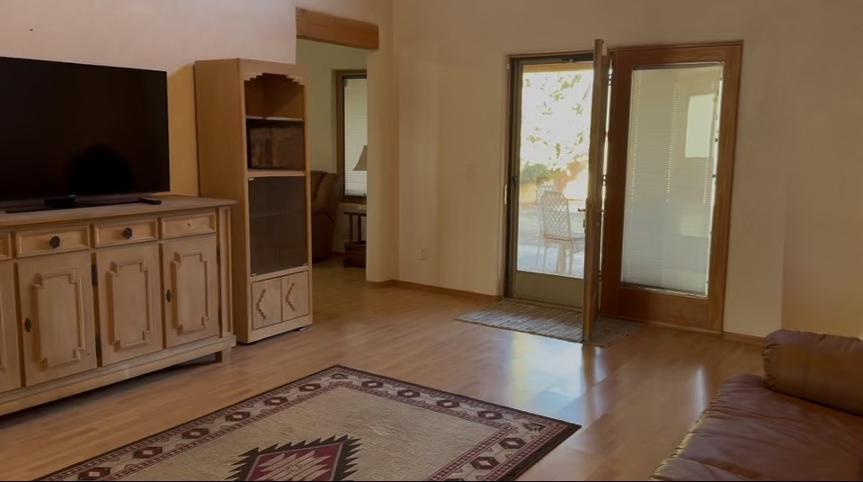 PRICE IMPROVEMENT!! Nestled on nearly 3 peaceful acres in the tranquil Puesta Del Sol community, 44 Calle Benavidez embodies the soul of Santa Fe living--open skies, timeless craftsmanship, and quiet comfort surrounded by nature. Just minutes from the Santa Fe Airport with easy access to Highway 599, this property offers both convenience and serenity.Built in 2000, this 3-bedroom, 2-bath home welcomes you with radiant heat, Pergo and tile floors, and rich pine details throughout, including vigas and tongue-and-groove ceilings that soar up to 18 feet in the great room. The space is filled with natural light from large windows, creating an inviting, airy feel. Enjoy three fireplaces--in the main living area, primary bedroom, and covered back patio--perfect for cozy winter nights or peaceful summer evenings.Both bathrooms feature jet tubs, and skylights in the guest bath and laundry bring in warm, natural light. The home offers electric and gas hookups for the stove and dryer, a gas water heater, and is cable or satellite ready for modern convenience. Ceiling fans in the great room and TV room provide gentle circulation and comfort throughout the seasons.Outside, the enclosed backyard provides a private retreat while still showcasing stunning views of the Sangre de Cristo Mountains. The property features a private driveway, 3-car attached garage, a legitimate Tuff Shed for storage, and a landscape that's alive with year-round New Mexico wildlife. Gentle arroyo features and walking trailsmeander through the land--perfect for morning strolls or pets. The property is also zoned for horses, and a small corral area remains from its previous use, a rare find within an HOA community.Whether you're relaxing by the fire, soaking in the view, or enjoying the open desert air, 44 Calle Benavidez offers a lifestyle defined by peace, space, and the authentic beauty of Santa Fe.