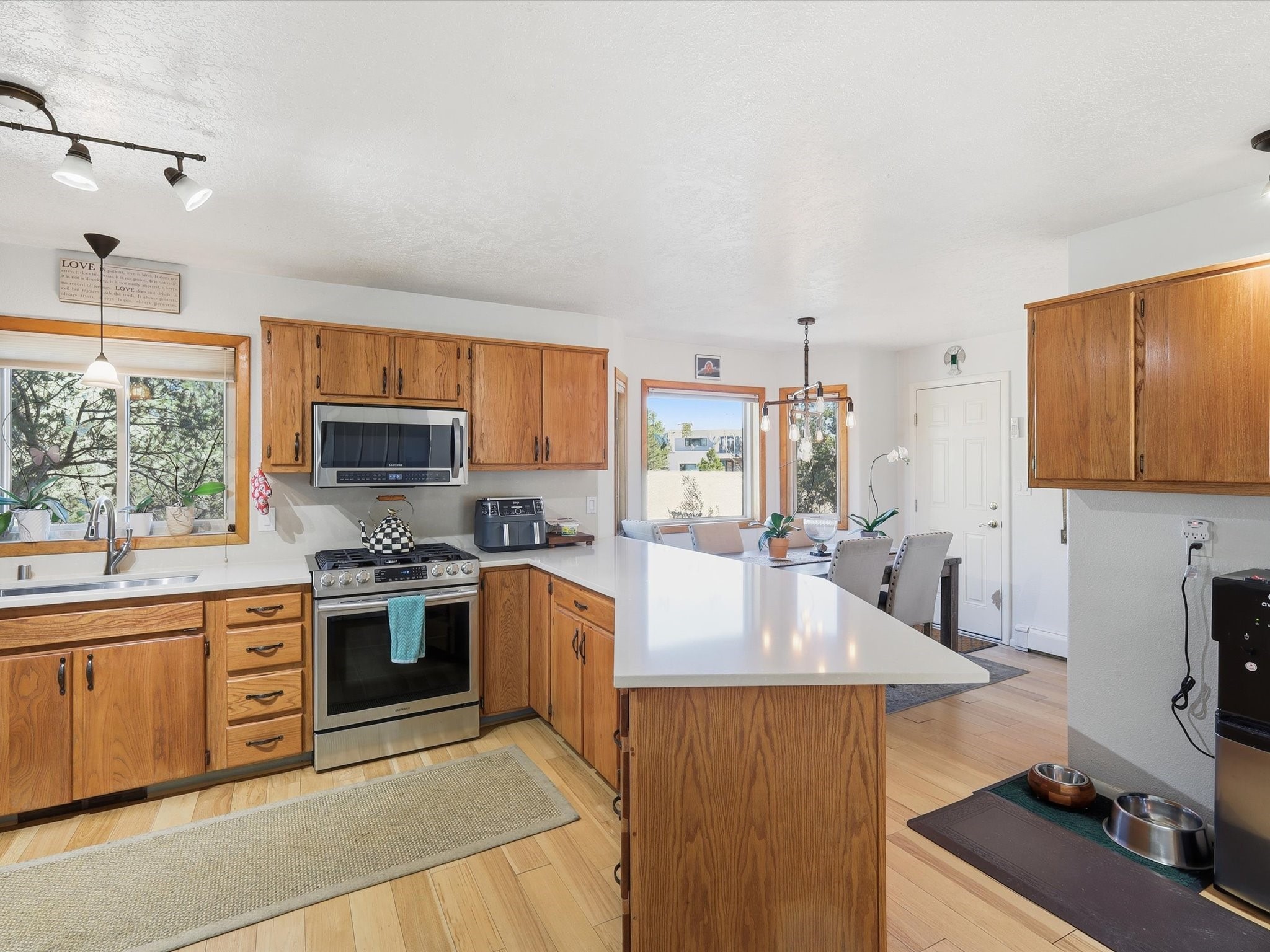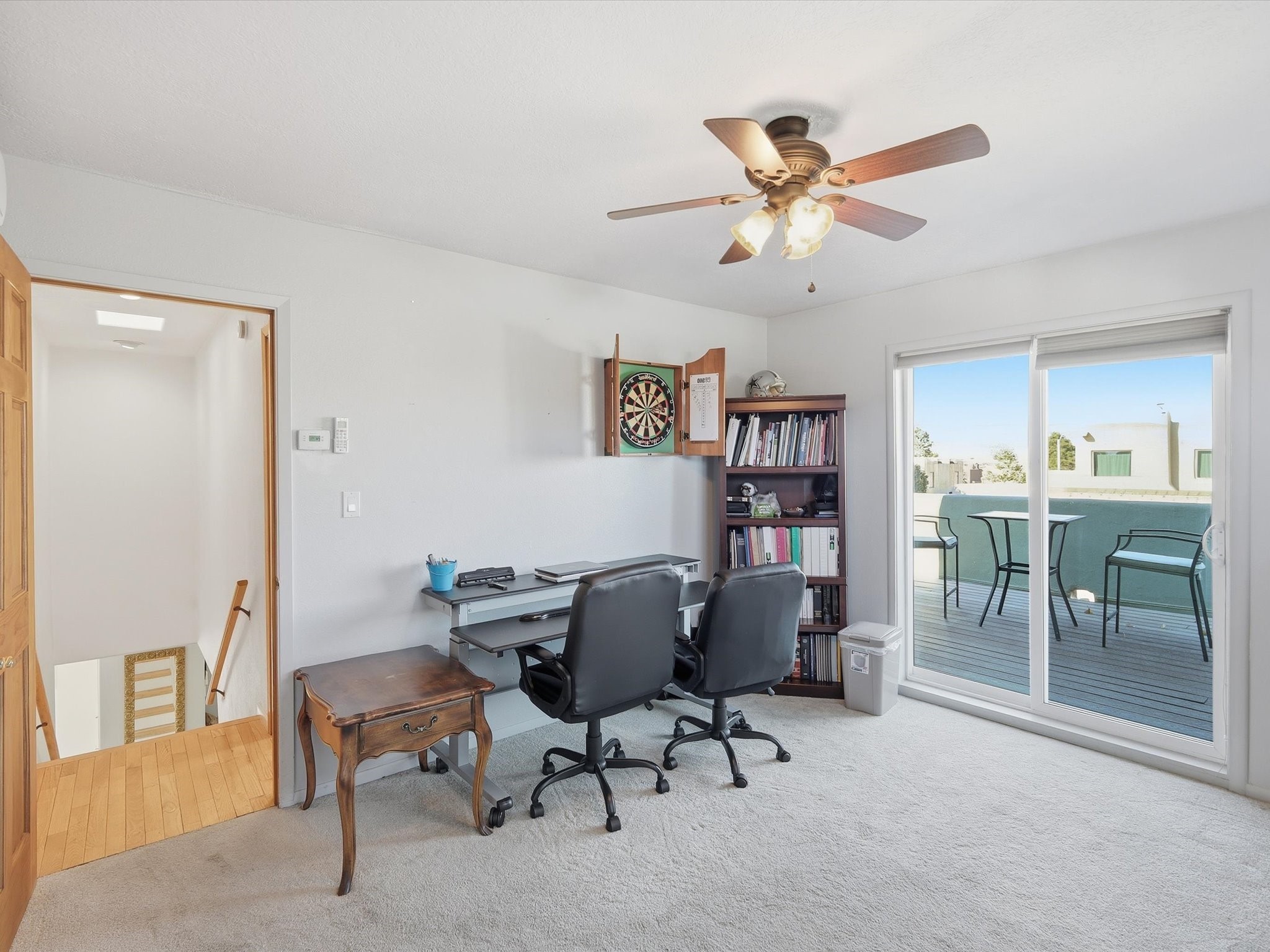 Renovated and truly move-in ready, this thoughtfully updated Santa Fe home offers peace of mind and great upgrades throughout the entire property. Improvements include a brand-new Gaco roof-sealant refinishing, a new stucco exterior, an upgraded heating and cooling system, solar panels, and a new water heater--providing both energy efficiency and long-term savings. Inside, the home features refreshed living spaces with refinished cabinetry, hardwood floors, quartz countertops, and fully remodeled bathrooms that blend modern comfort with classic Santa Fe charm. Every renovation was carefully completed to enhance functionality, durability, and timeless style. A detached studio adds exceptional versatility and value, complete with its own heating and cooling system--ideal for a home office, art studio, guest quarters, or flexible additional living space.