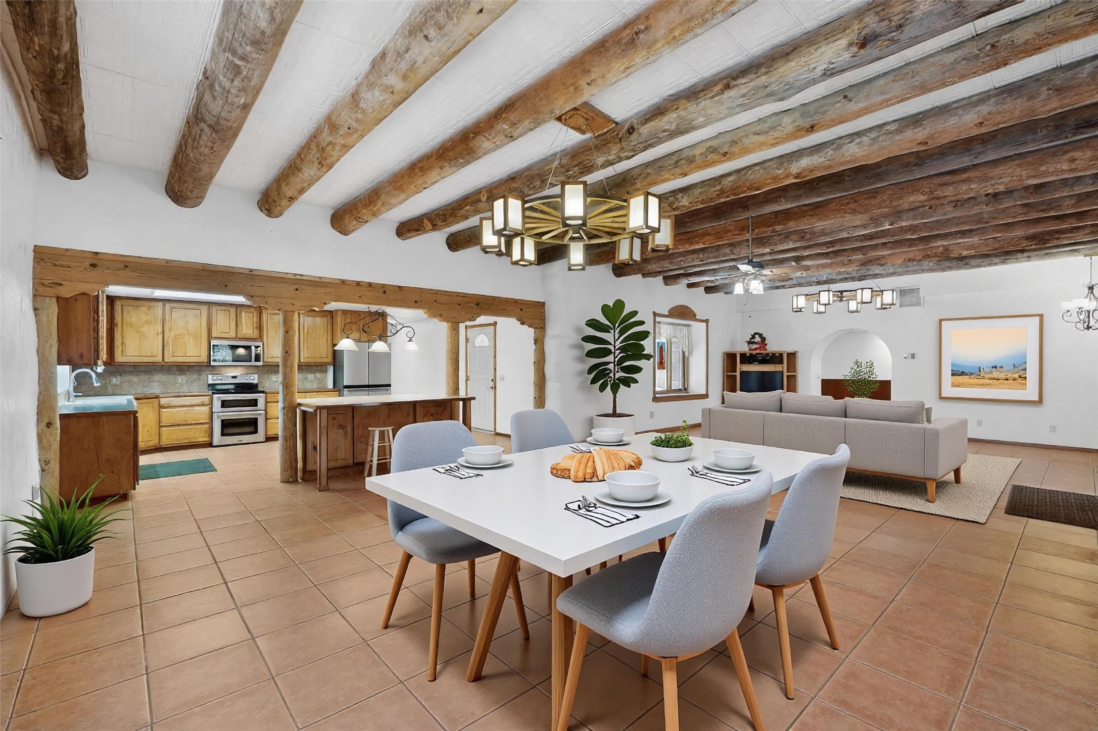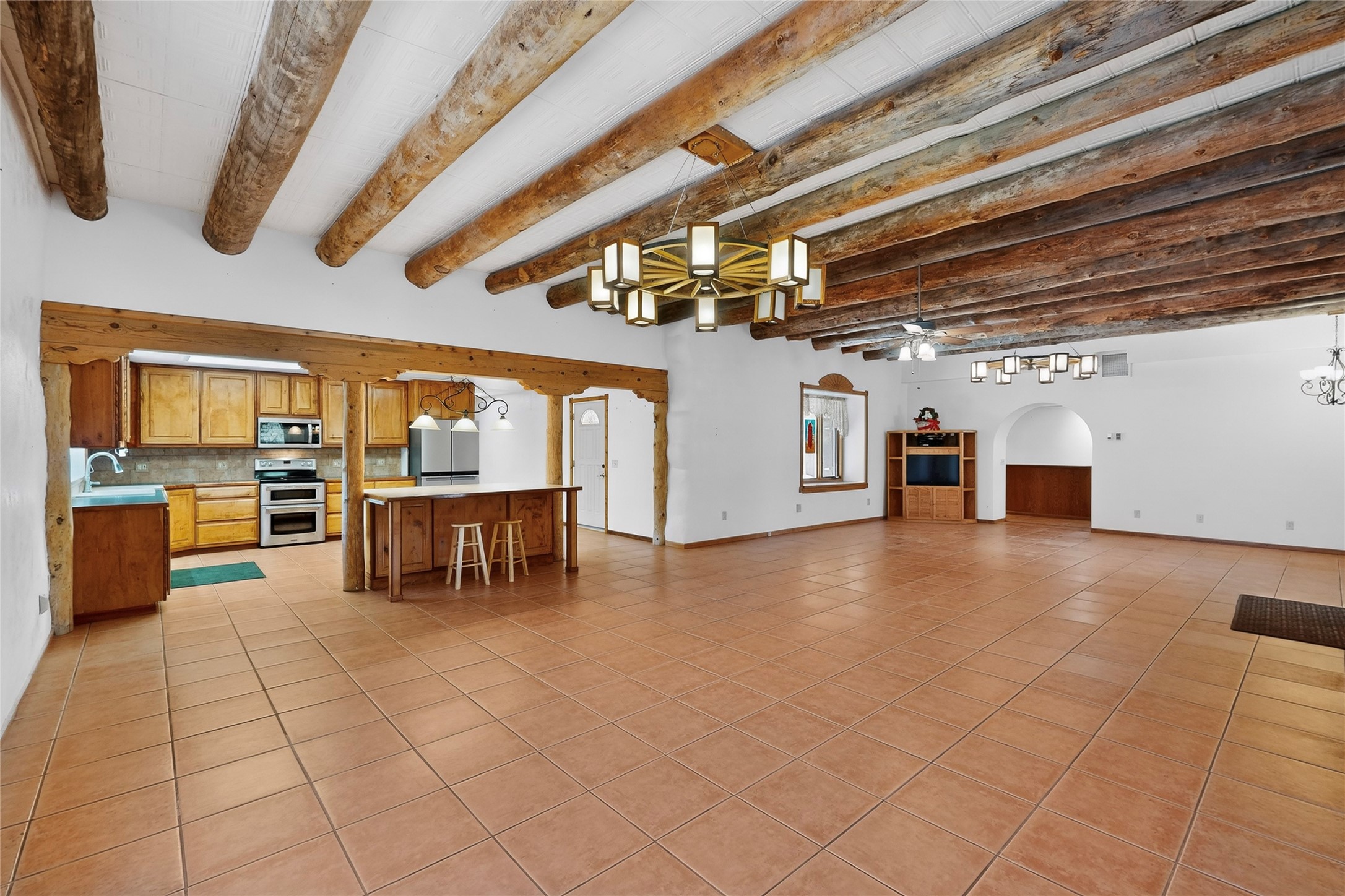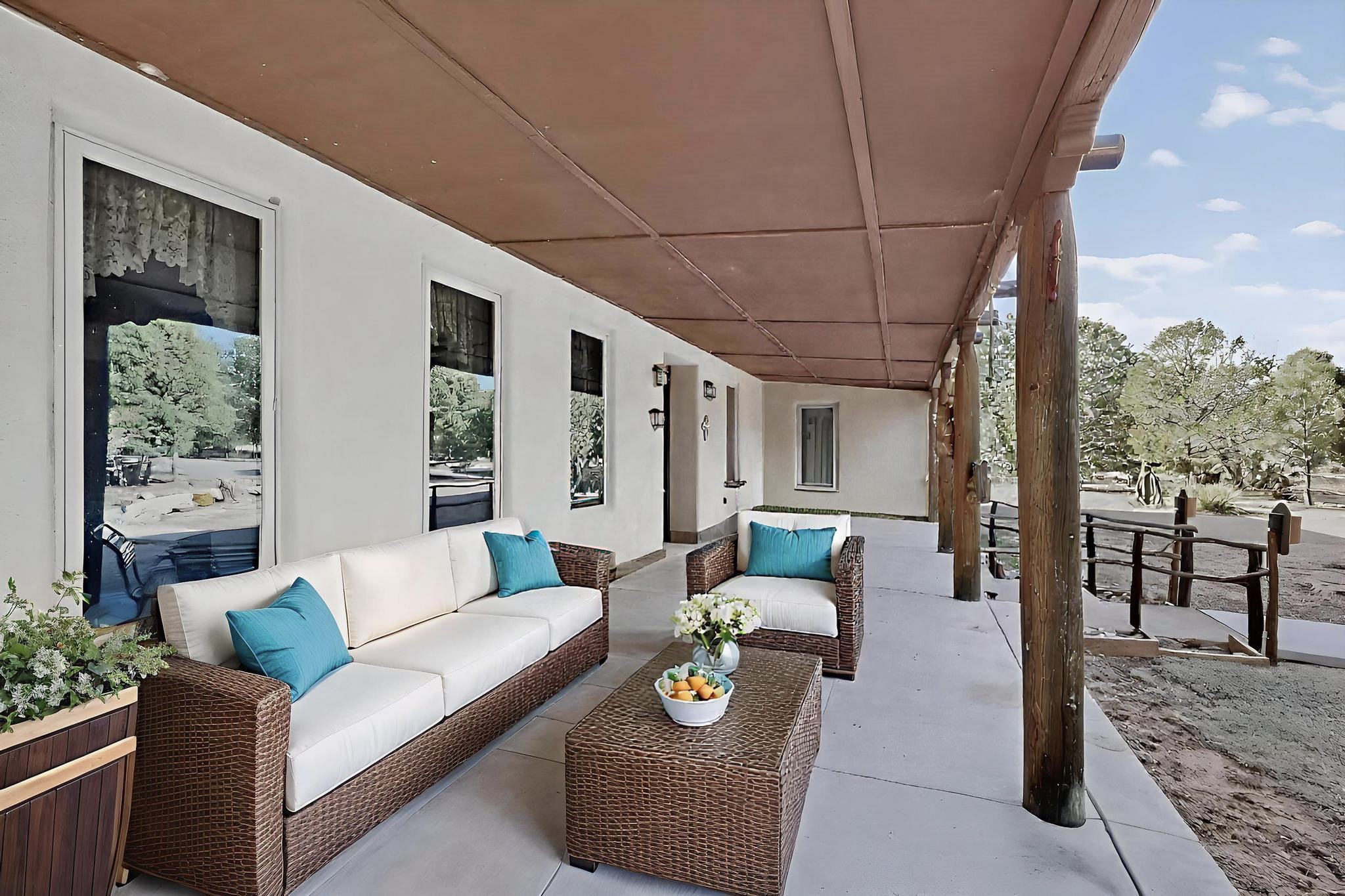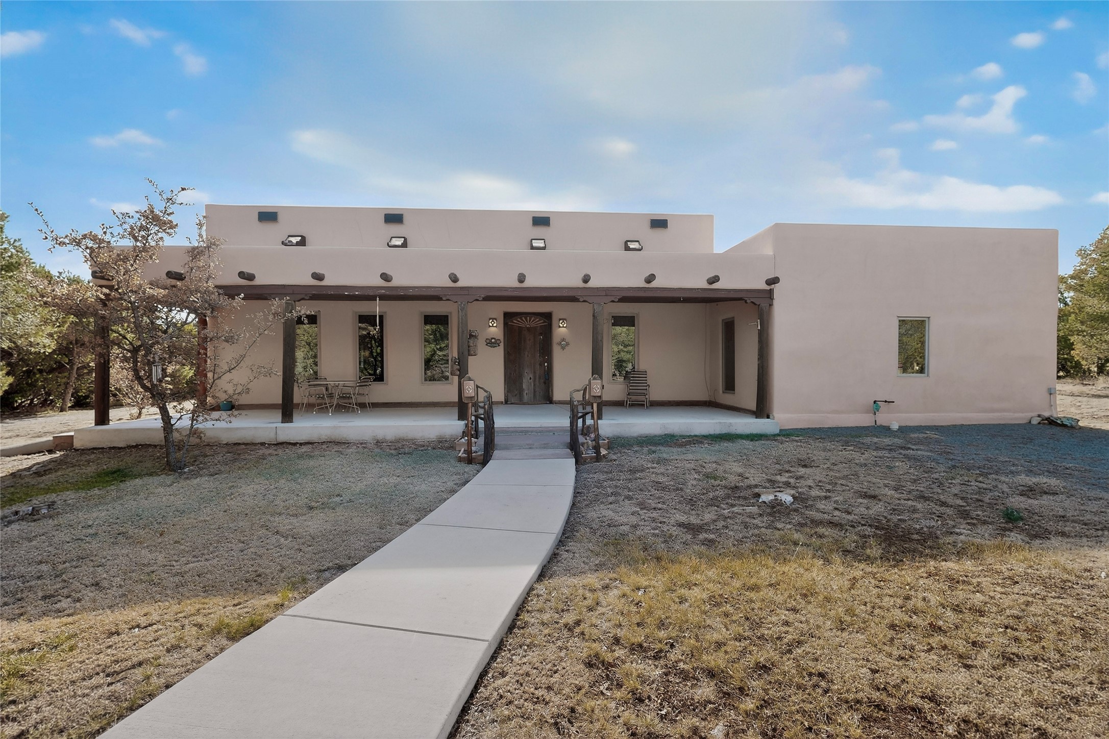 A front portal enhances the charm of the custom property featuring vigas, beams, and corbels. The layout is thoughtfully planned, allowing for a seamless flow between rooms while maintaining a sense of intimacy. Natural light floods the interiors, highlighting the exquisite finishes and enhancing the warm ambiance. This home is not merely a structure; it is a testament to the dedication and passion that built this creation.Features & details in this home include windows trimmed in wood, tailored plant ledges provide a perfect space for displaying those special heirlooms, striking wooden wheels serve as chandeliers and offer a unique focal point in the living area. Accommodating family and guests, the residence boasts three well-appointed bedrooms and 3.5 bathrooms. The timeless clawfoot bathtub serves as a focal point and embodies a sense of luxury and comfort that transforms an ordinary bathing routine into a serene escape from the stresses of daily life. Additionally, a built-in display cabinet with glass doors provides showcase for cherished items, further enhancing the home's sophisticated design.Constructed with straw bale materials, the home boasts exceptional energy efficiency, superior insulation, and impressive fire resistance, ensuring comfort and safety year-round. Additionally, the property includes a substantial 1,258+/- sq ft attached workshop that offers versatile possibilities. This space can serve multiple purposes, a mother-in-law suite, a dedicated hobby room, car enthusiasts' garage and the possibilities are endless. Notably, this workshop is not included in the home's heated square footage, providing an extra dimension of utility and flexibility to the property.Tucked into the Manzano Mountains the SW natural landscape is adorned with trees and wildflowers, attracting a variety of wildlife, including deer and turkeys. Immerse yourself in the peacefulness of this property.