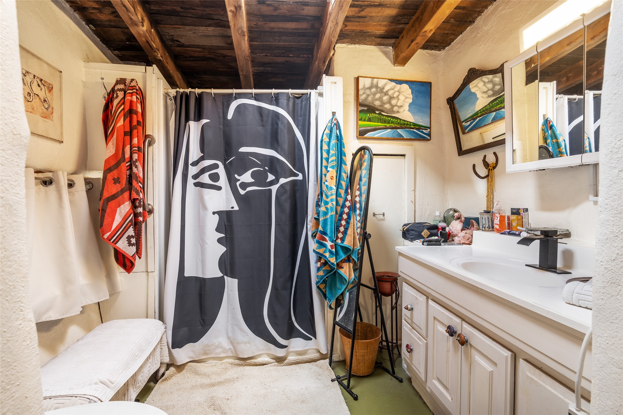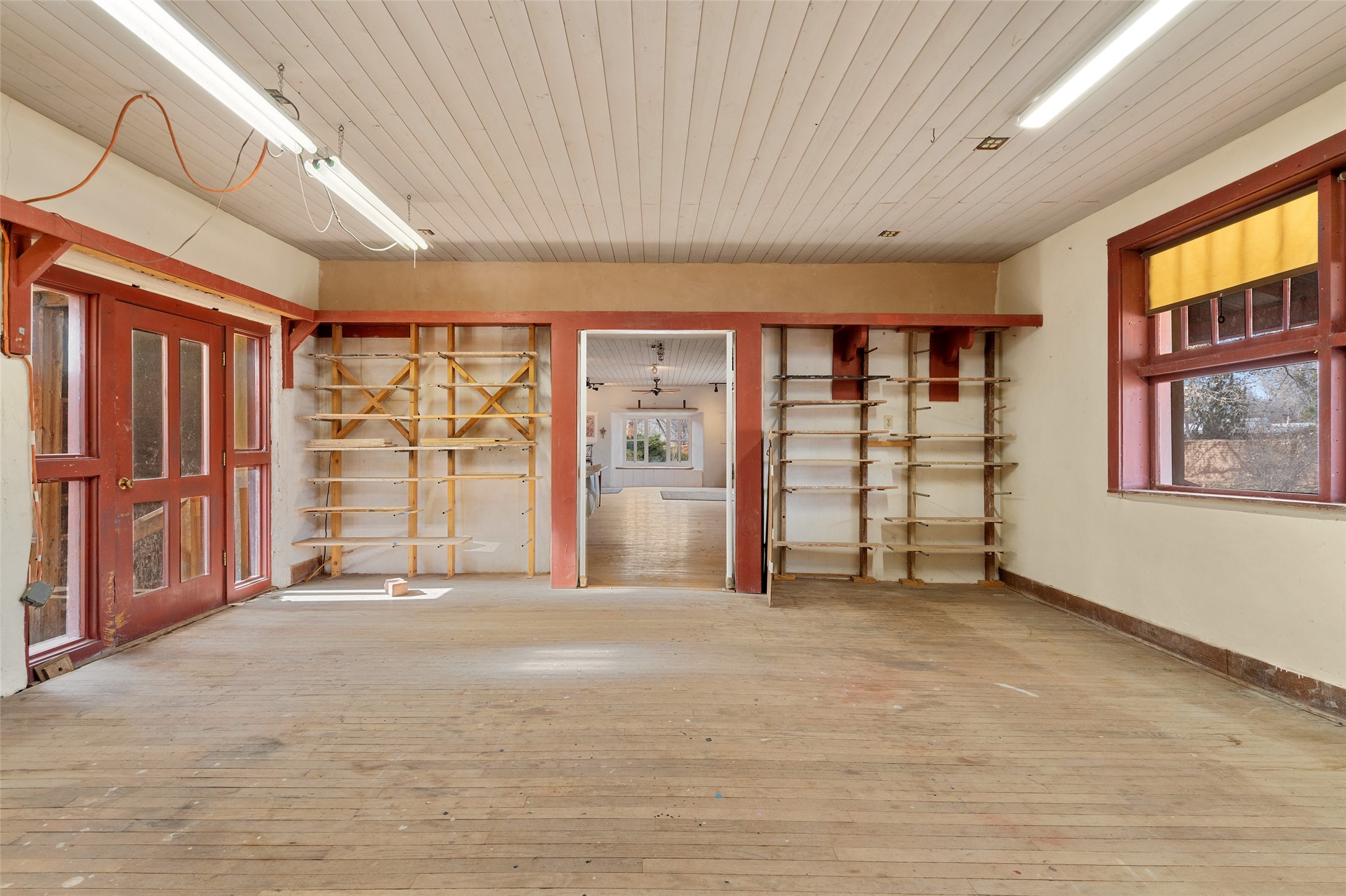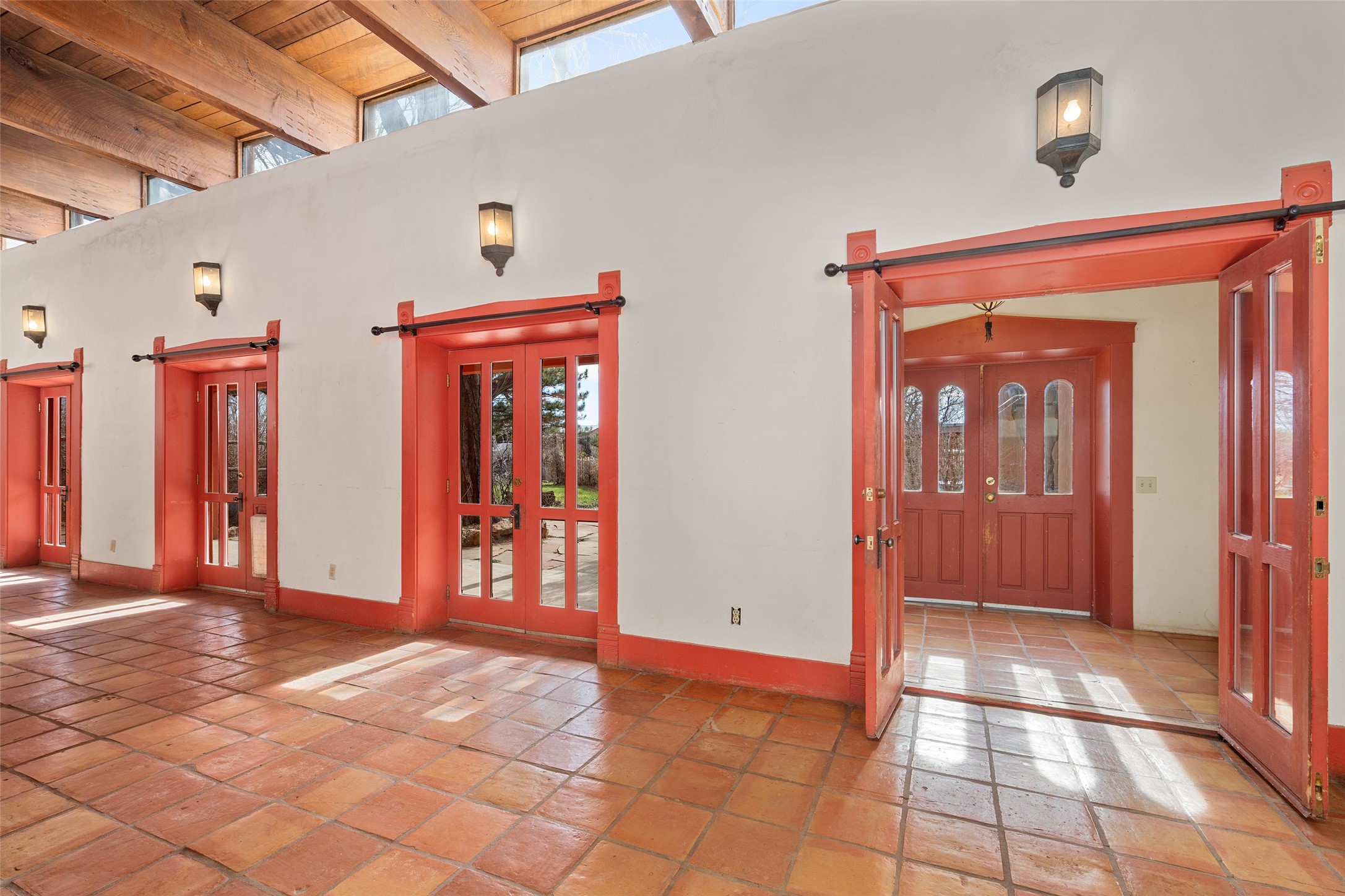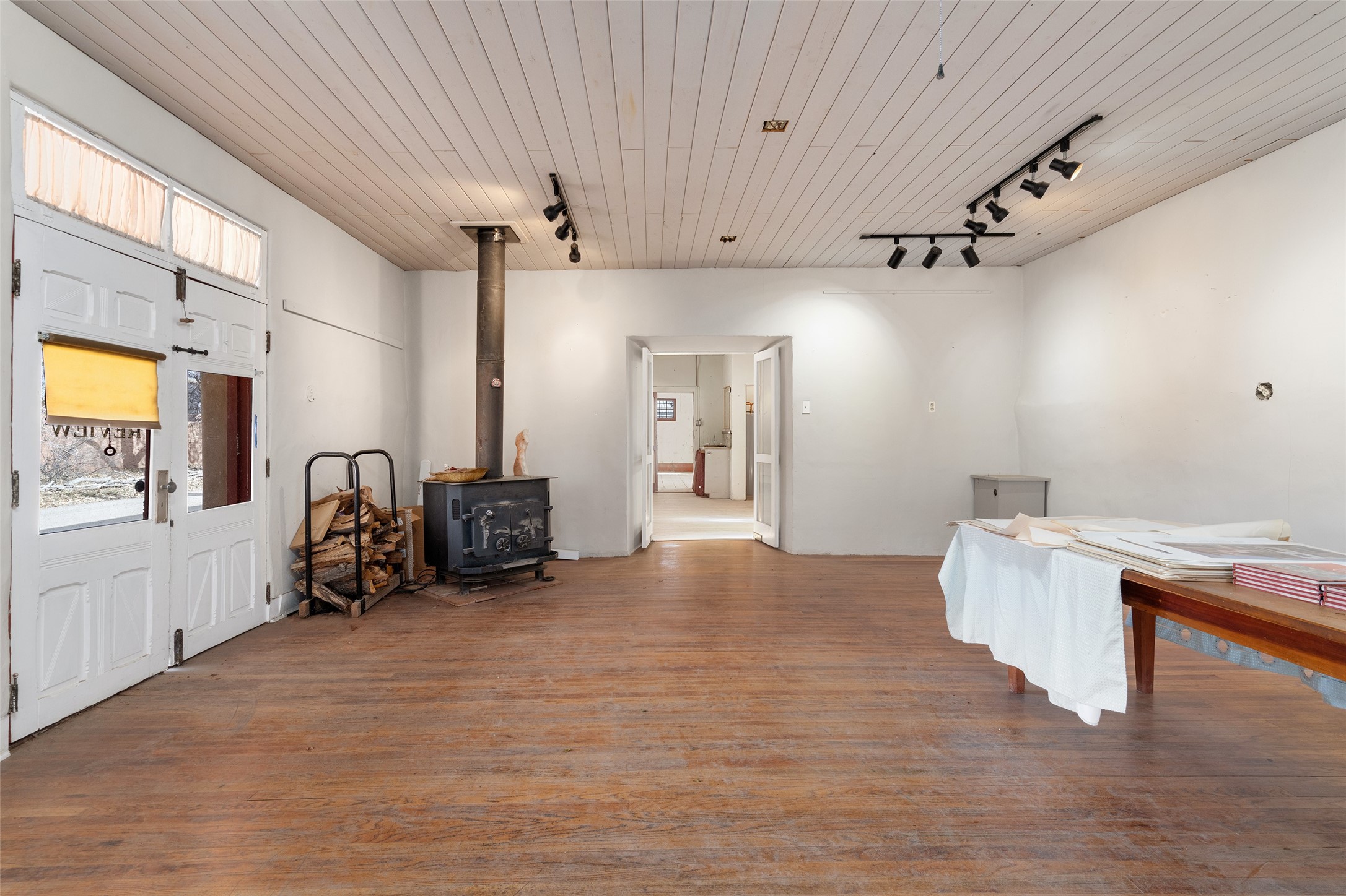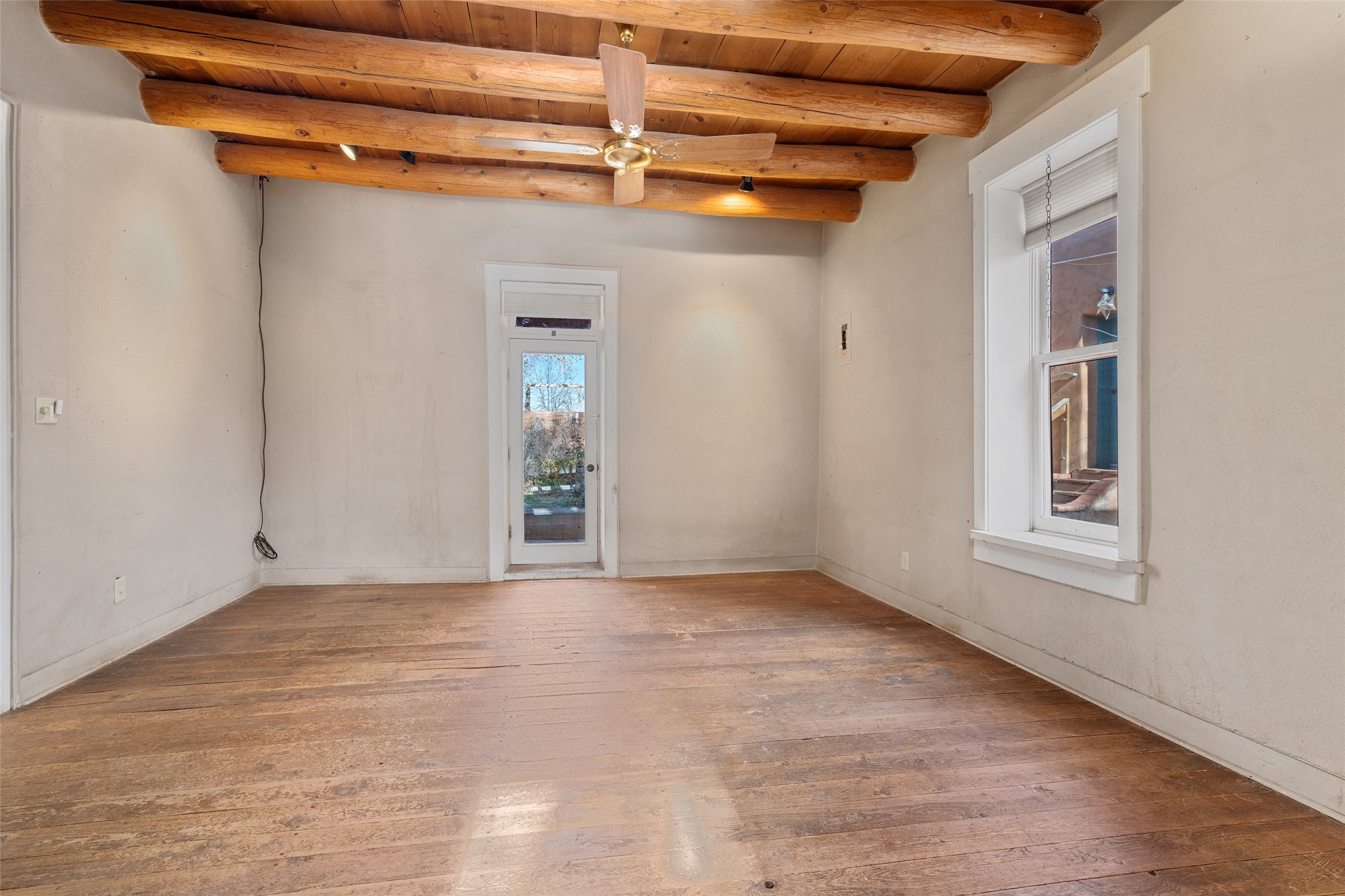 This historic Galisteo Hacienda presents a rare opportunity to restore an iconic adobe estate set on 3.8 acres within the village of Galisteo, one of the largest landholdings under Traditional Community zoning, which supports residential, live/work, and art gallery uses. Dating to the 1800s, the property once served as the headquarters of Don Jos Ortiz y Pino's sheep empire and later as the iconic Quartermill Farm - home, studio, and gallery of acclaimed artist Priscilla Hoback--making it uniquely suited to continue as a creative live/work estate. Located in the heart of Galisteo Village, the property includes a former gallery along a central village road and a substantial adobe main house privately set behind it.The hacienda features two residential wings with four bedrooms and three baths, a large library, grand living and dining rooms, multiple fireplaces, and authentic architectural details. A generous inner courtyard with mature trees, portals, and a koi pond creates a serene, campus-like setting ideal for both living and creative pursuits, complemented by fruit trees, gardens, and expansive village acreage.Equestrian facilities include a large handcrafted stone and adobe barn with spacious stalls and turnouts, wash rack, hay loft, tack room with bath, and an oversized arena, supported by a private well dedicated to the barn. Additional structures include an art studio with sink and loft, and a one-bedroom guest house--formerly the historic town bar--offering flexibility for guests, staff, or extended work use.The property is in need of renovation and restoration, presenting an exceptional opportunity for a discerning buyer to reimagine a historically significant live/work estate, blending residential life, creative enterprise, and community engagement in one of Galisteo's most storied village settings.
