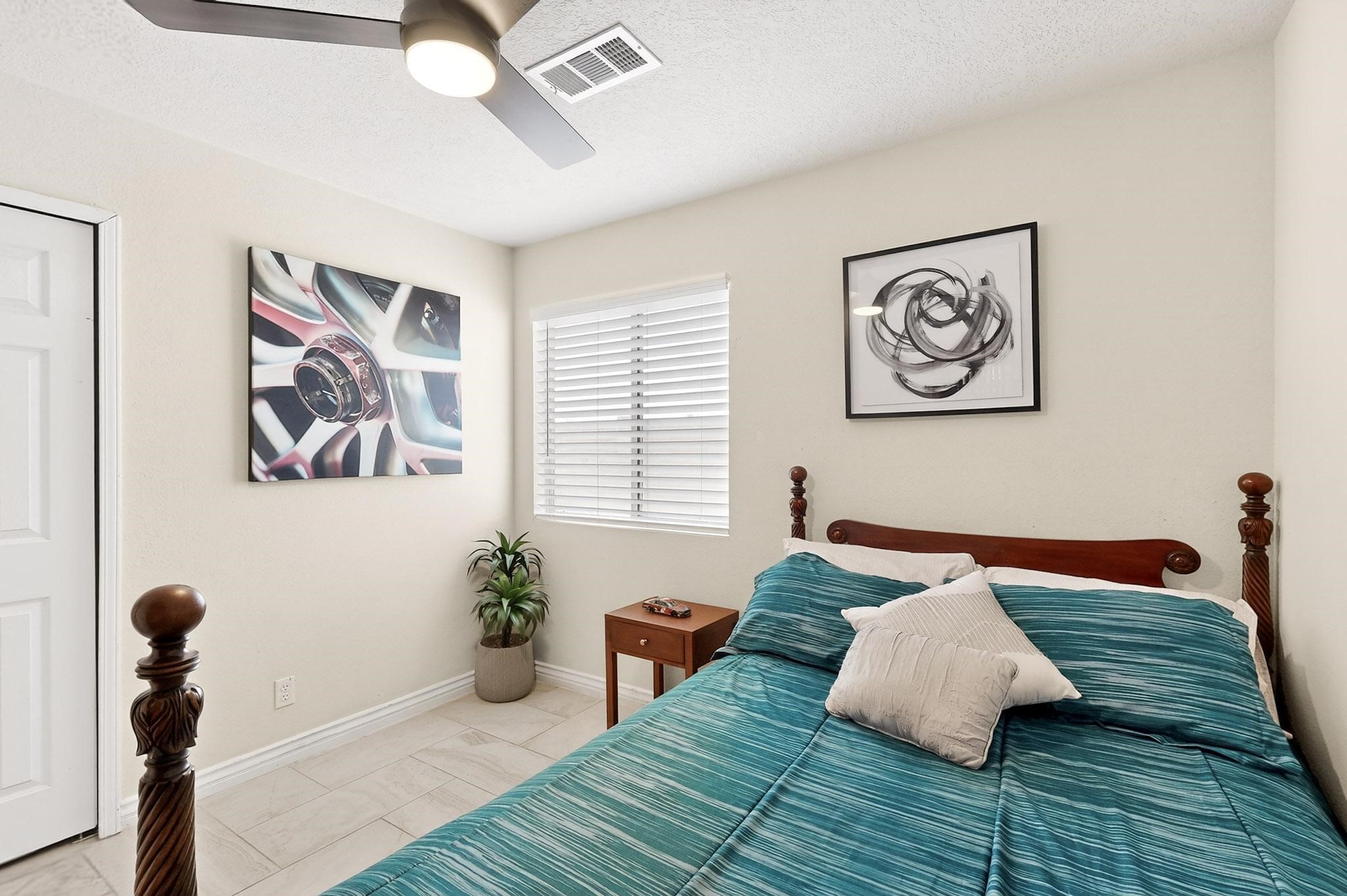 Immaculate, upgraded, and move-in ready! This stunning 4-bedroom, 2-bath home has no HOA and no PID, making it an exceptional find. The owners have invested over $170,000 in thoughtful renovations inside and out, creating a one-of-a-kind property. Features include an ash wood front door, tile flooring throughout, updated kitchen cabinetry and newer appliances, and beautiful mahogany French doors opening to the backyard. The living space is enhanced by an electric fireplace with a newer mantel, custom '' mirrors in the living and dining areas, updated bathrooms, ceiling fans, and refreshed lighting throughout. Additional improvements include a newer water heater and furnace, a finished garage with a new garage door, two 220V outlets, and a heavy-duty metal roof with recent maintenance and new roof bolts installed. Exterior upgrades continue with a custom 16' x 8' shed with metal base plate, a custom 1,000-pound side gate, refreshed portal ceilings in both the front and back, and newer stucco on the foundation. Conveniently located near US-550 with easy access to shopping and everyday conveniences - this home is truly turnkey and ready for its next owner.