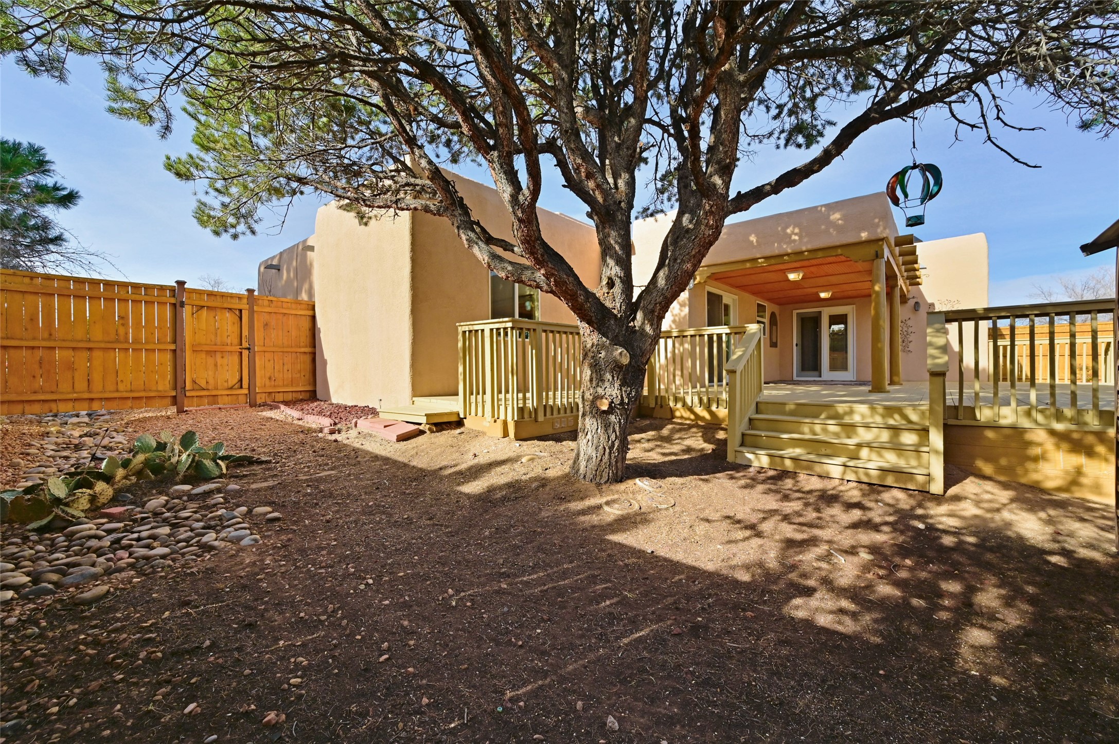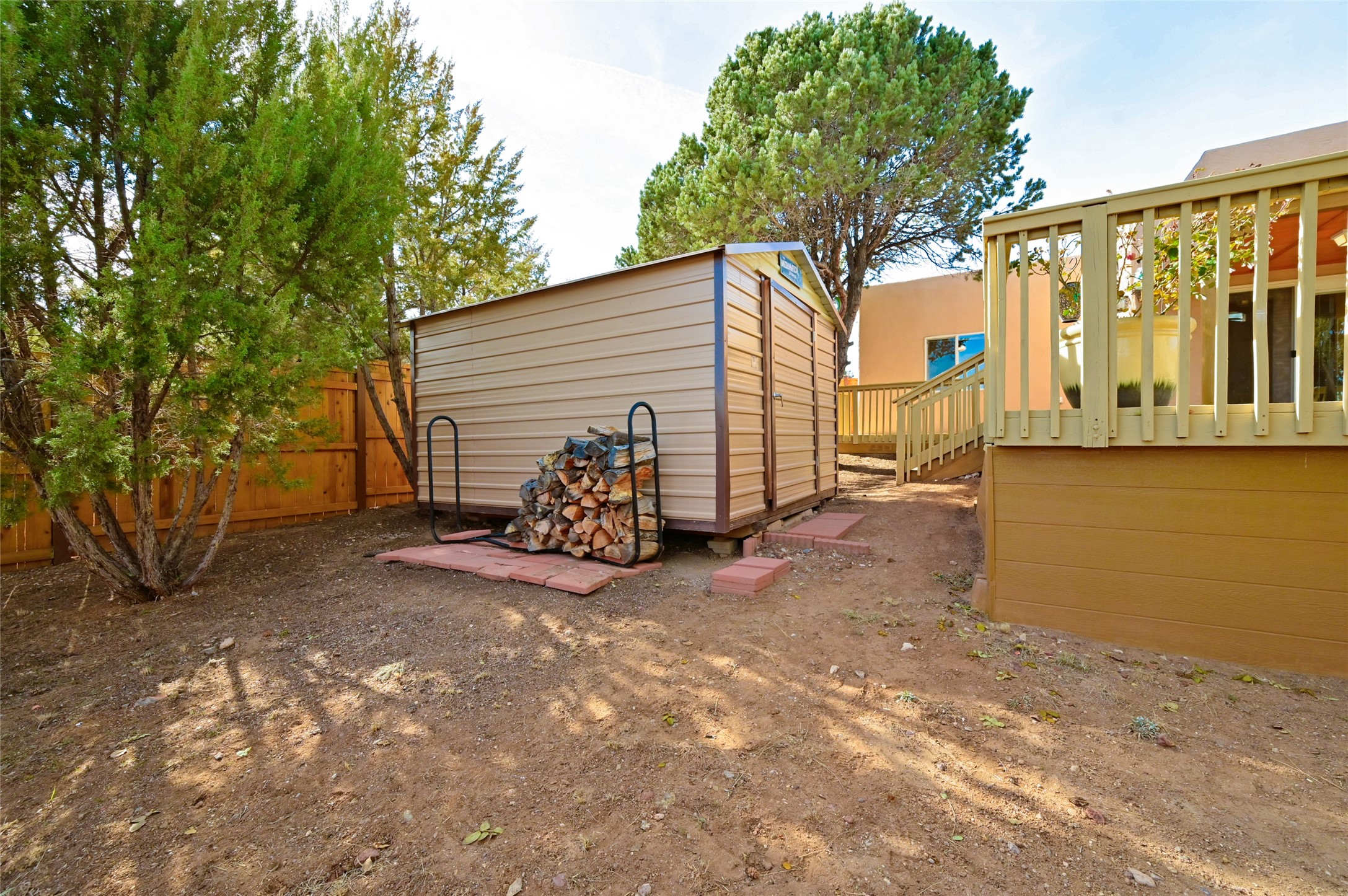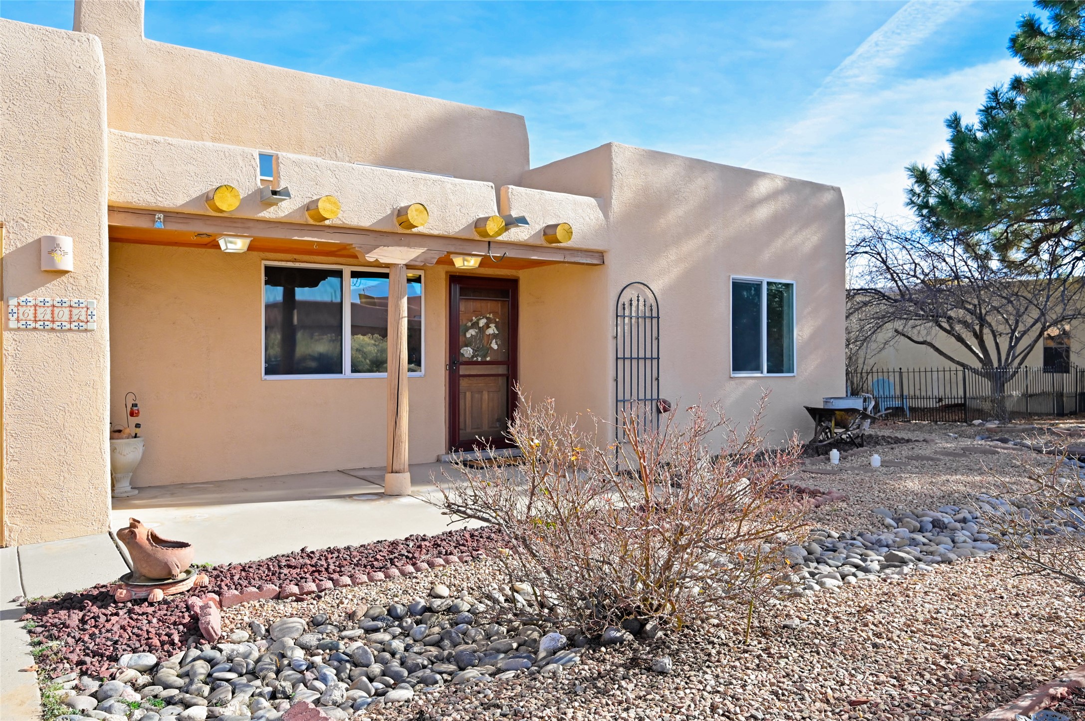 Southwestern Charm Near Cochiti Lake. Discover the perfect blend of tradition and comfort in this lovely 3-bedroom, 2-bathroom home located near the high end of Cochiti Lake on Vooscane Avenue. From the mature, thoughtfully landscaped front yard to the classic covered portal entry, this residence exudes authentic New Mexico character.Inside, the Great Room makes a dramatic impression with soaring ceilings adorned with traditional vigas and herringbone decking. At the heart of the home sits a sculpted Kiva fireplace, offering a warm and inviting focal point. The flooring is a beautiful mix of classic Saltillo tile and rich, engineered hardwood, providing a timeless aesthetic that is as durable as it is stylish.The kitchen and bathrooms carry the theme with classic NM tile motifs and ample oak cabinetry, while the kitchen is updated with a sleek stainless steel refrigerator. Comfort is prioritized year-round with radiant baseboard heating, evaporative cooling, and multiple ceiling fans throughout.Step out onto the spacious outdoor deck and covered portal, an ideal spot for entertaining or quiet reflection. The fully fenced backyard, secured by high-quality wood fencing, offers privacy and a limited view toward Tetilla Peak. Practicality is also built-in, with a handy backyard storage shed and organized garage shelving for all your gear.Don't miss this one. Schedule your showing today!