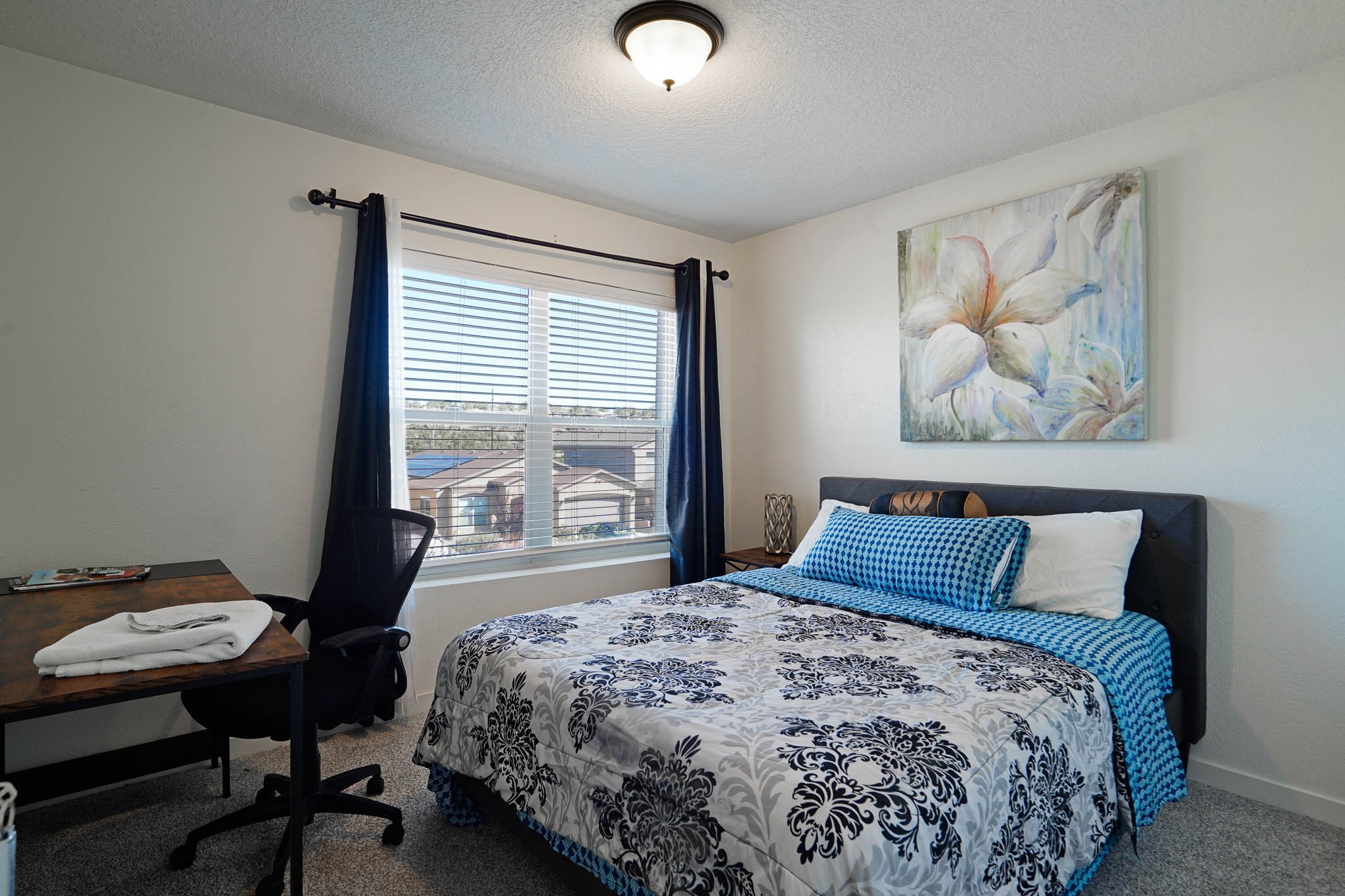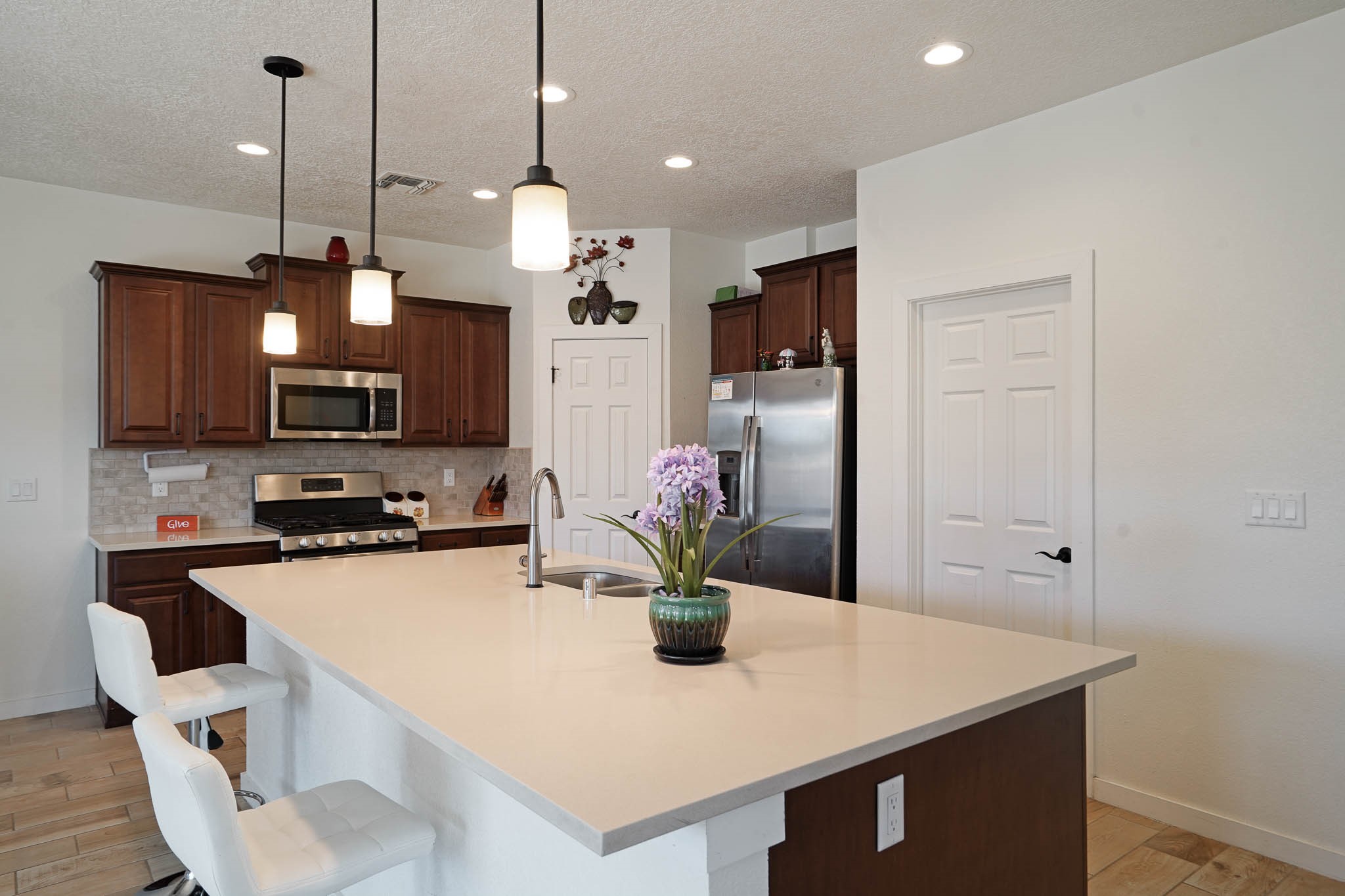 Deluxe 5 year new resale in desirable Mirador neighborhood in the heart of White Rock, close to Los Alamos National Laboratory! Step into comfort w/this thoughtfully designed 4 bed/2.5 bath ~1900sf "Cougar" layout on two levels of living space. Main level features sleek open eat-in kitchen w/marble counters, maple cabinets, stainless steel appliances, & generous walk in pantry. Also separate dining area, bright 'n wide living room w/South + East exposures, half bath, bonus storage room, and direct access to back portal + fully fenced backyard. All 4 bedrooms up w/primary suite featuring private balcony w/mountain views, double sink + walk in shower bathroom that leads to walk in closet. 2 car garage + driveway parking all on a quiet dead end street in a peaceful, scenic community close to parks, trails, & local amenities. Whether looking for a forever home, versatile investment property, or a part time in-town spot - this home presents an outstanding opportunity to own in a special location. Eligible veterans may qualify to assume current VA loan and realize significant savings at a low interest rate!