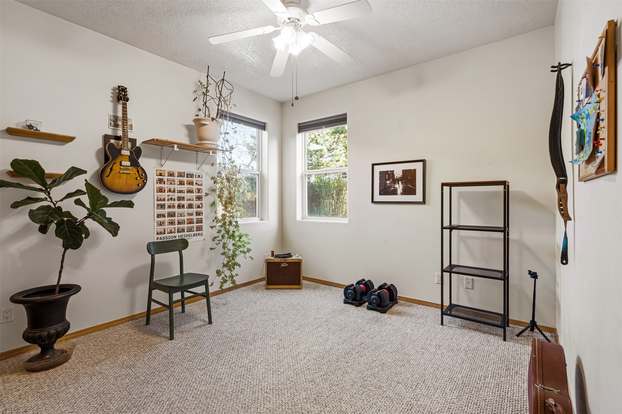 Discover your Santa Fe sanctuary at the peaceful end of a quiet cul-de-sac in the highly desirable Pueblos Del Sol neighborhood. This lovingly maintained home invites you into a sun-drenched expansive living room where authentic wooden vigas and beams soar across high ceilings, while a cozy gas fireplace creates an inviting focal point. The thoughtful main floor layout flows effortlessly from the living room to a large, open dine-in kitchen and back patio, additionally complemented by two spacious bedrooms, a full bathroom and laundry room.The second floor reveals a private retreat--an enormous primary suite featuring a spa-like ensuite bathroom and generous walk-in closet. A versatile fourth bonus room adapts perfectly as a home office, while the covered porch and expansive viewing deck showcase breathtaking sunsets and mountain vistas.Recent updates and quality features make this home truly move-in ready. The roof was re-sealed in 2023, the stucco remains in excellent condition, and radiant in-floor heating provides efficient, comfortable warmth throughout. Practical amenities include a two-car garage and a gated side driveway with ample space for a van or camper trailer. The backyard's fully finished, insulated shed with electricity transforms easily into a creative studio, yoga space, or private retreat.The neighborhood delivers exceptional convenience--top-rated schools, scenic walking trails, and nearby shopping and groceries--all while maintaining the serenity of this central, easily commutable location.Picture yourself enjoying lazy summer evenings on the covered back patio as children or pets roam the fully fenced yard, or greeting each morning from your second-floor deck with coffee and mountain views. This home strikes that rare balance between connection and seclusion, offering both the warmth of community and the peace of your own private haven. More than a house, this is where your family's story unfolds.