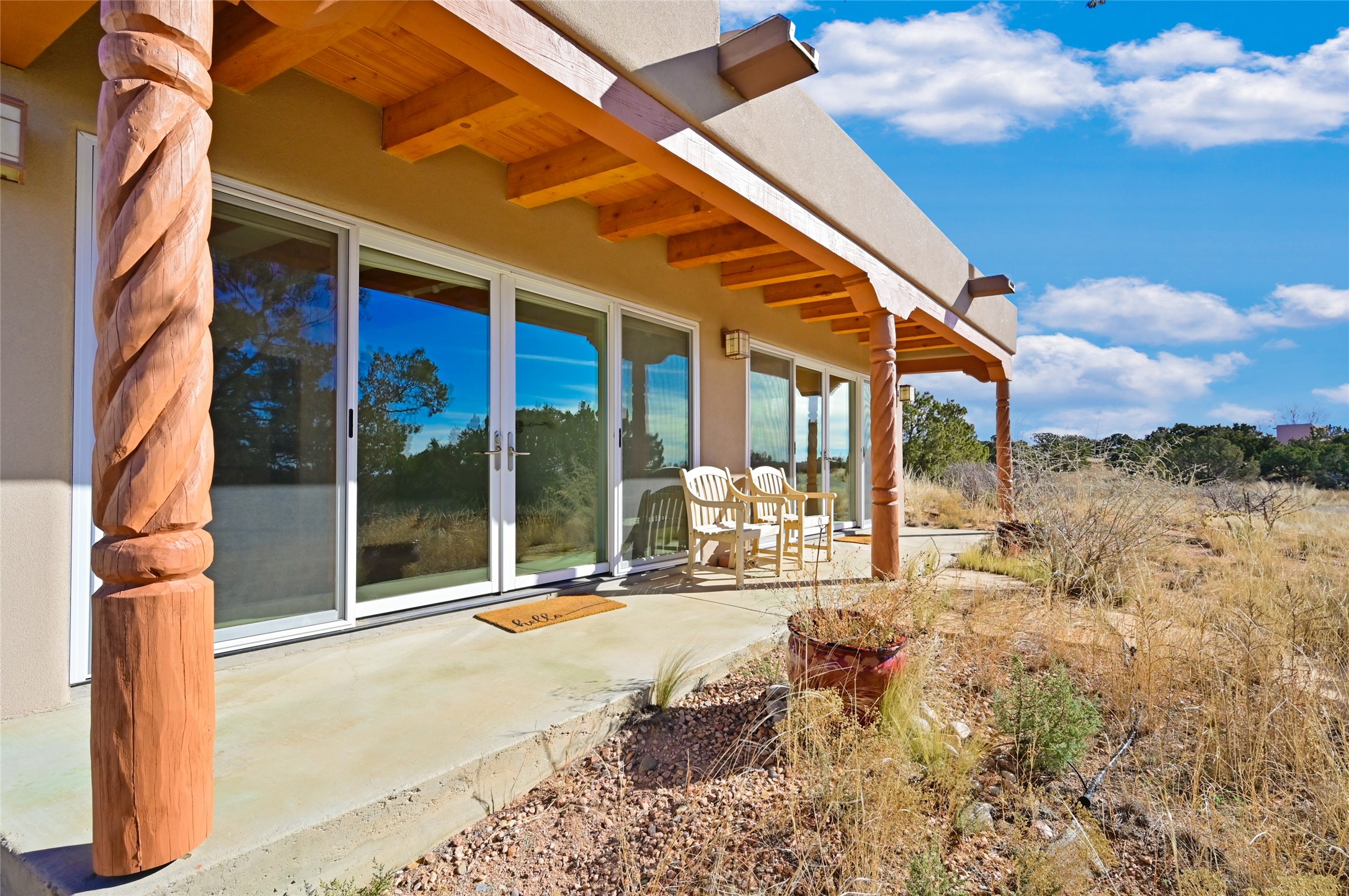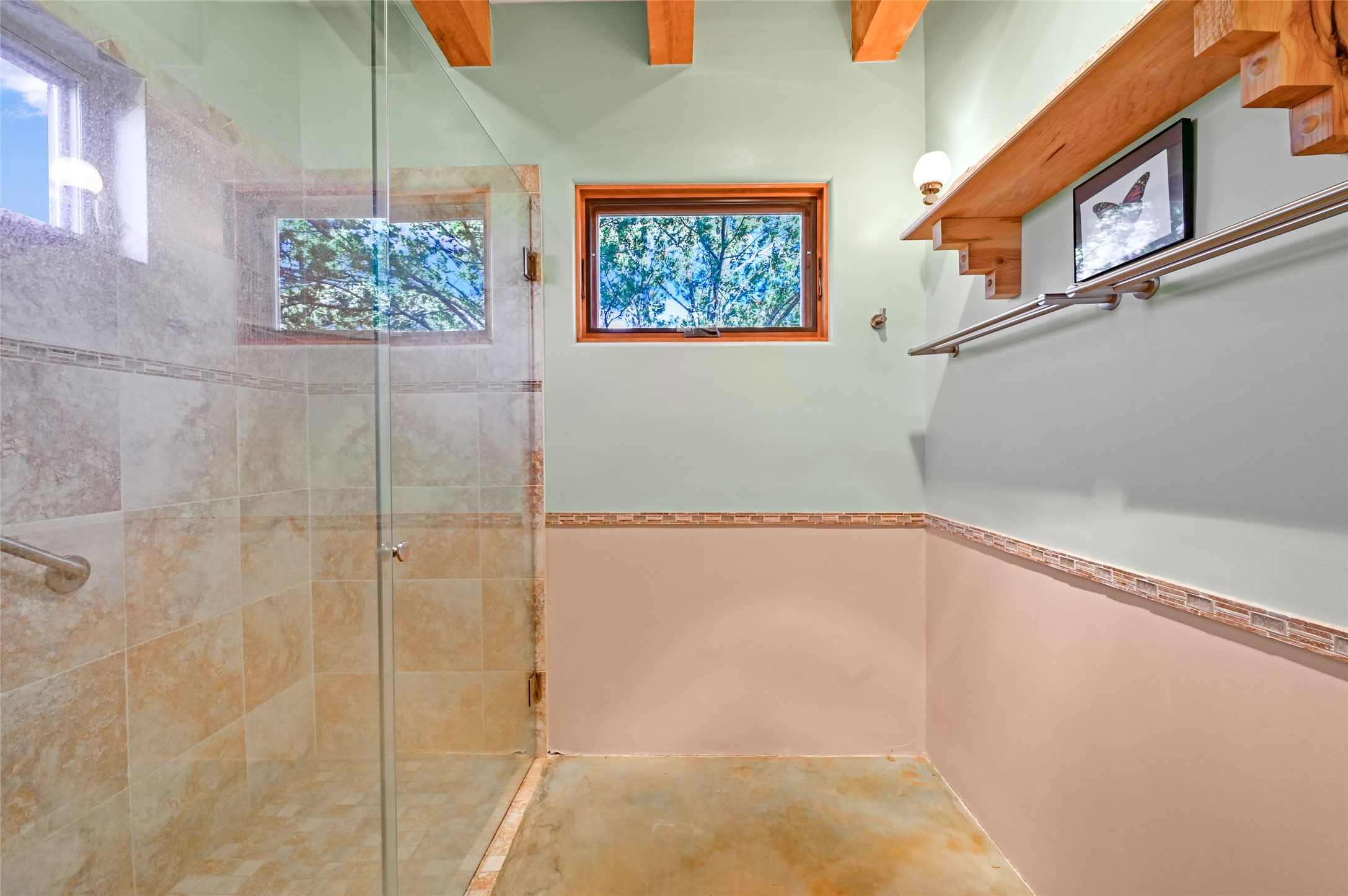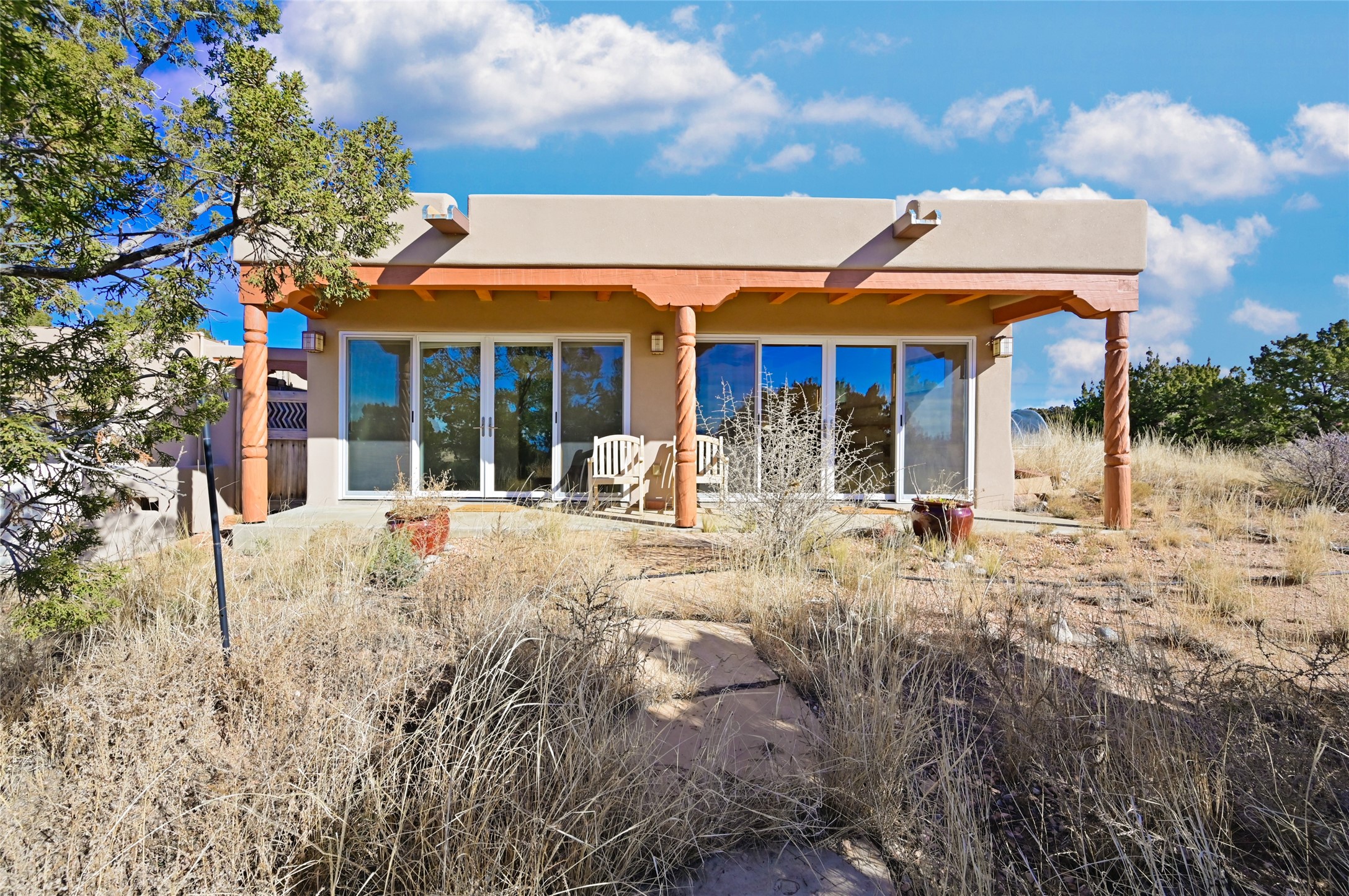 Great passive solar Eldorado home on 1.39 Acres. The 1,146-square-foot main house has 2 bedrooms and 2 bathrooms, and the 686-square-foot Guesthouse/Studio has 2 large rooms and one 3/4 bath. Brick floors in the main, with granite countertops and concrete floors in the Guesthouse/Studio. Also included are Solar panels, a shared well, a 1750-gallon cistern for rainwater harvesting/irrigation, a Navien boiler in the studio, and new coyote back yard fencing. The property backs up to a greenbelt, allowing easy access for hiking and open space for mountain and star-gazing views.