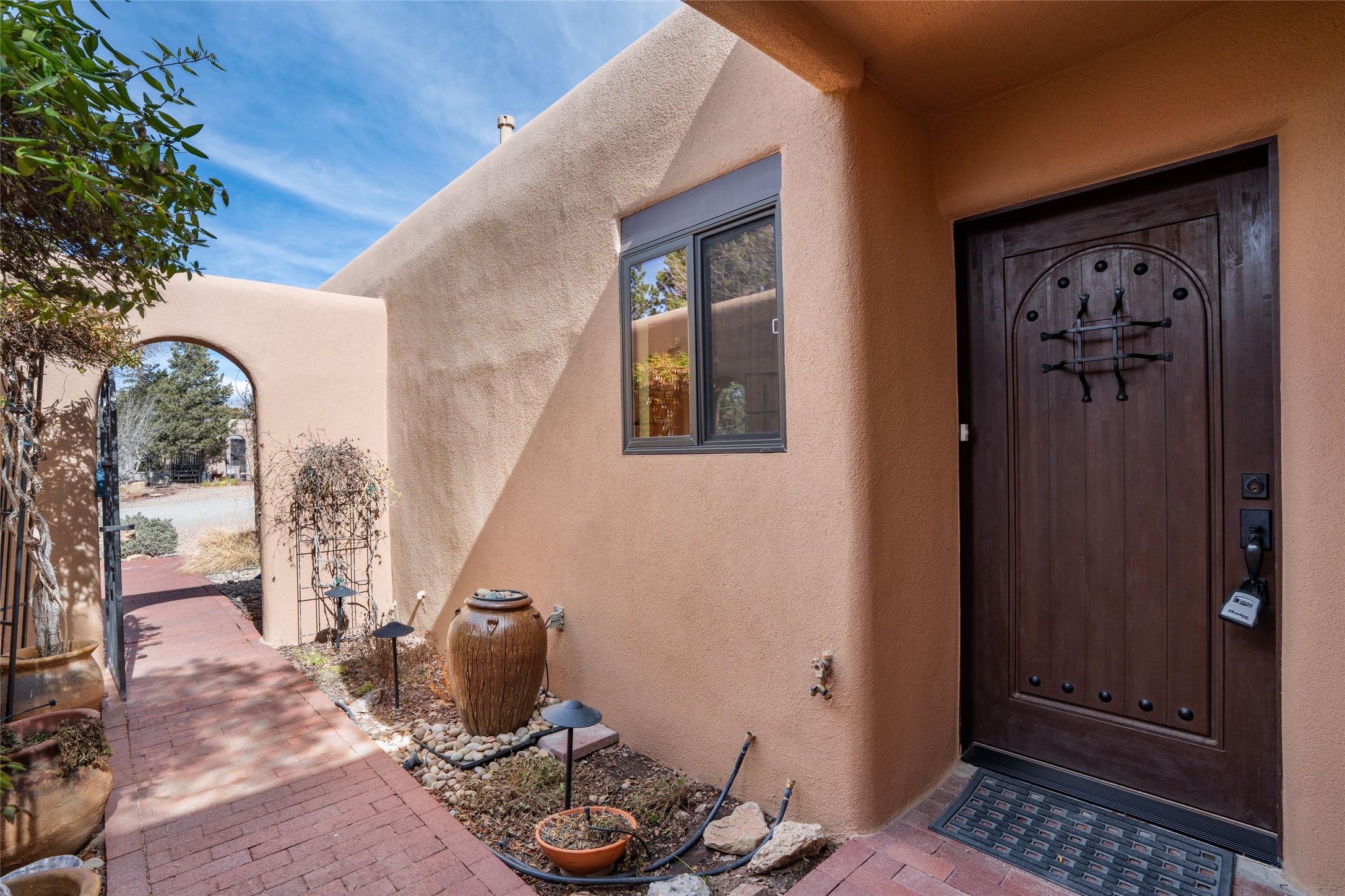 Welcome to the community of Valle del Sol on the Northside with excellent proximity to The Plaza and Fort Marcy Park and Recreation Center. This 2 bedroom, 2 bathroom, 2-car garage one-level townhouse has been thoughtfully renovated over the years with quality finishes. Newer kitchen appliances. The wonderful outdoor spaces will reveal lovely landscaping in the spring. The portal off the dining area is perfect for meals on our many pleasant days. Watch nature for by from the picture window or the portal in the arroyo across the adjacent side street. Central A/C and heat. NO HOA. Open house Sunday March 15th 1:00 - 3:00.