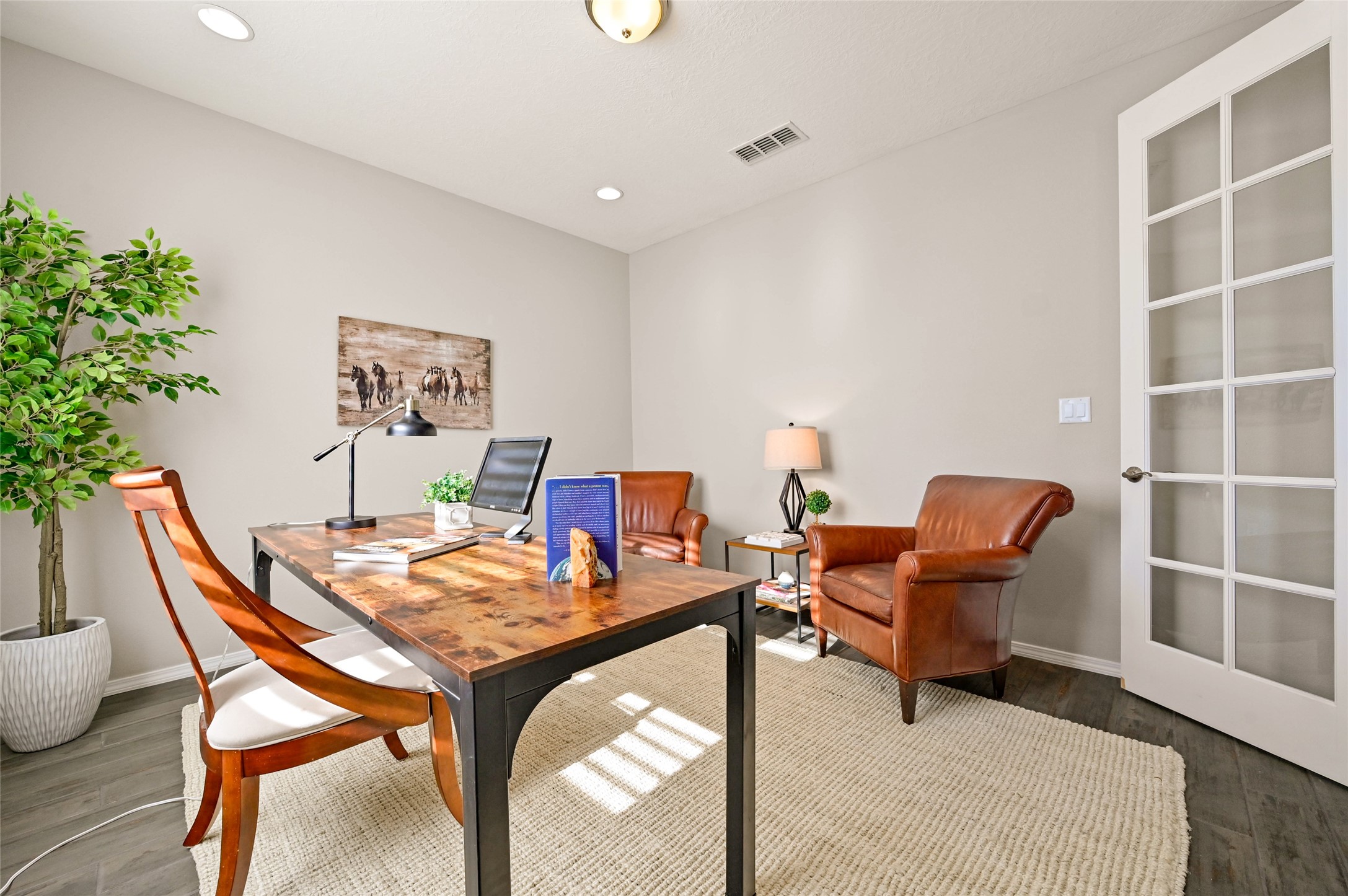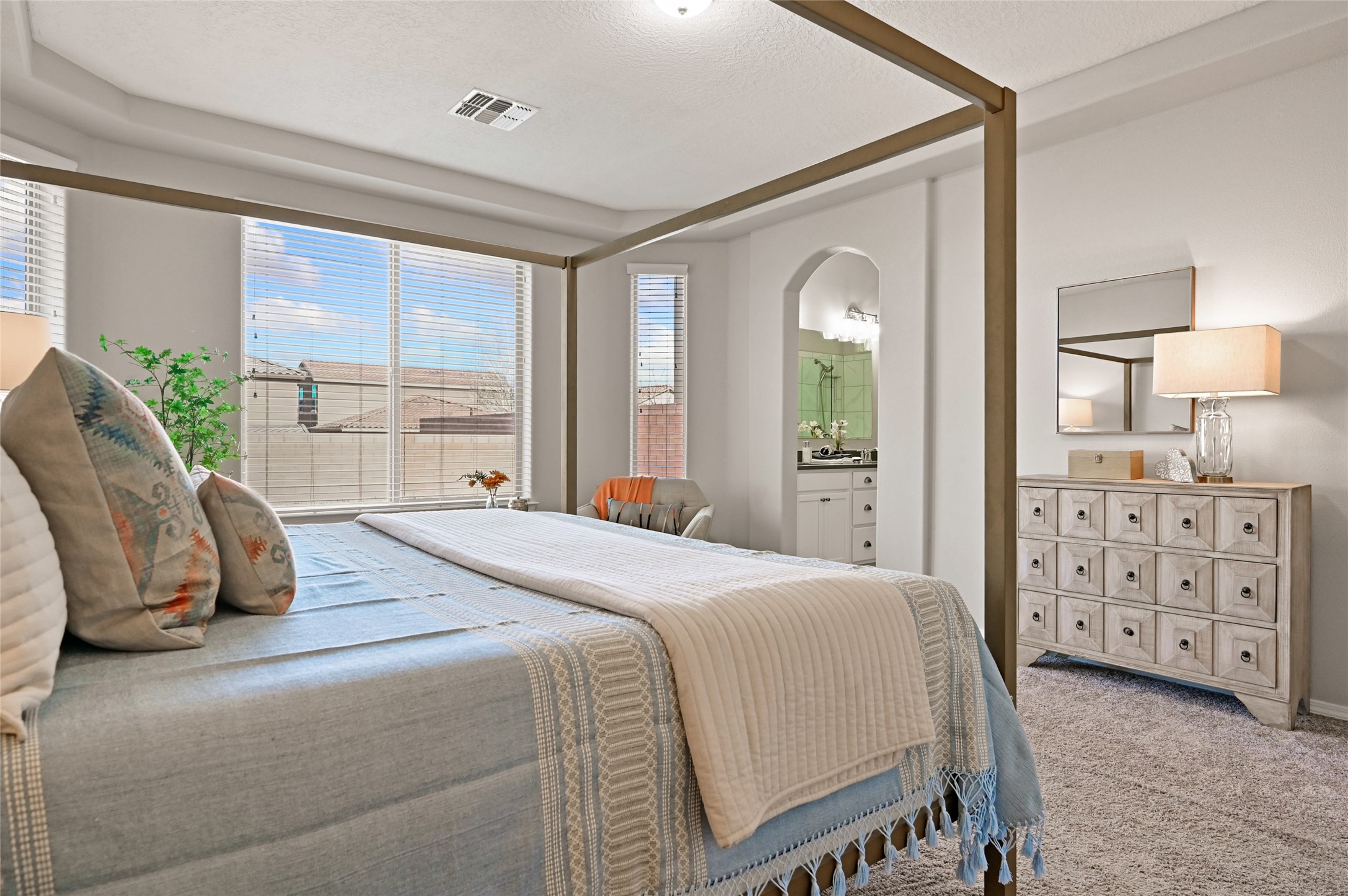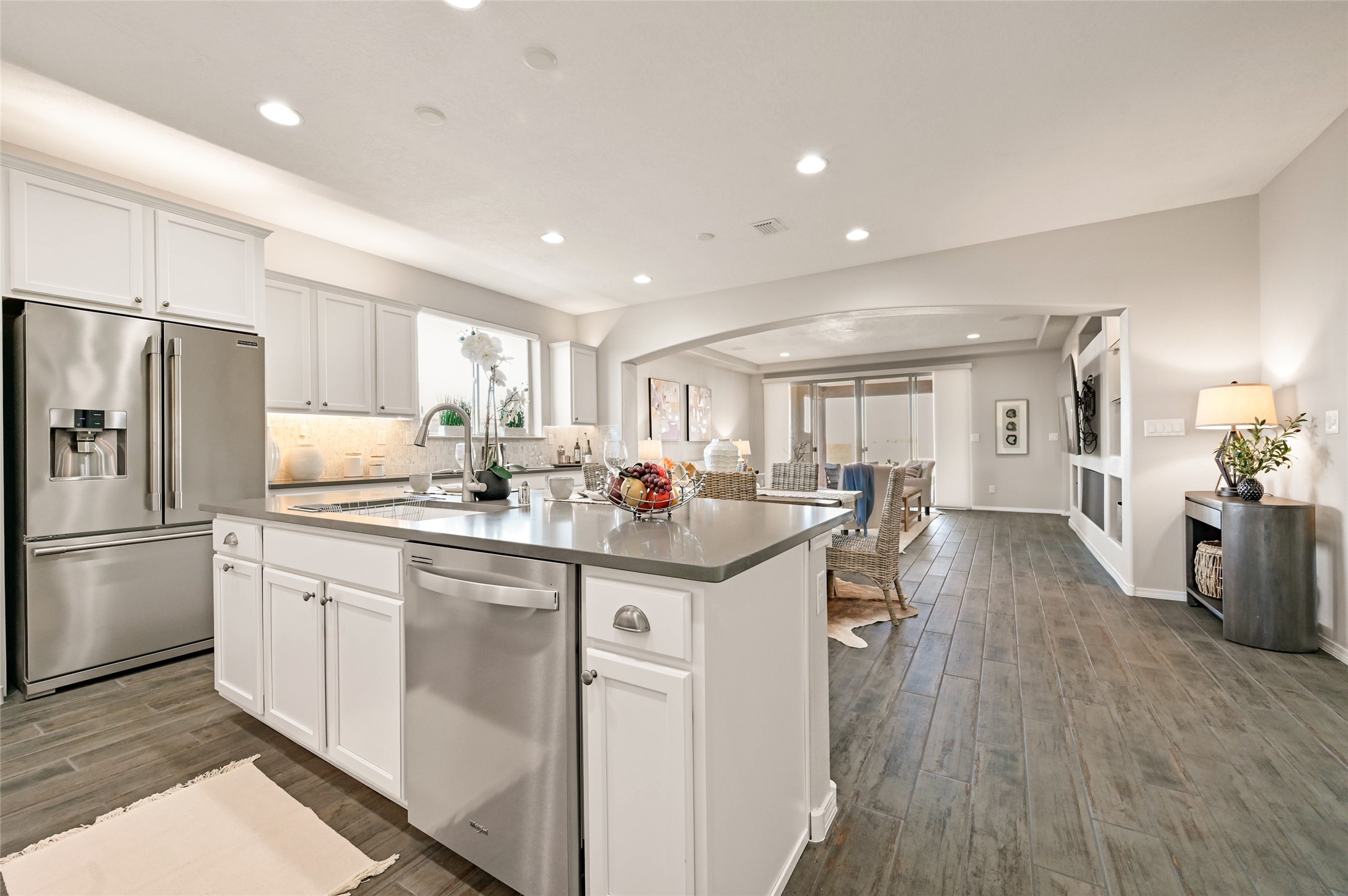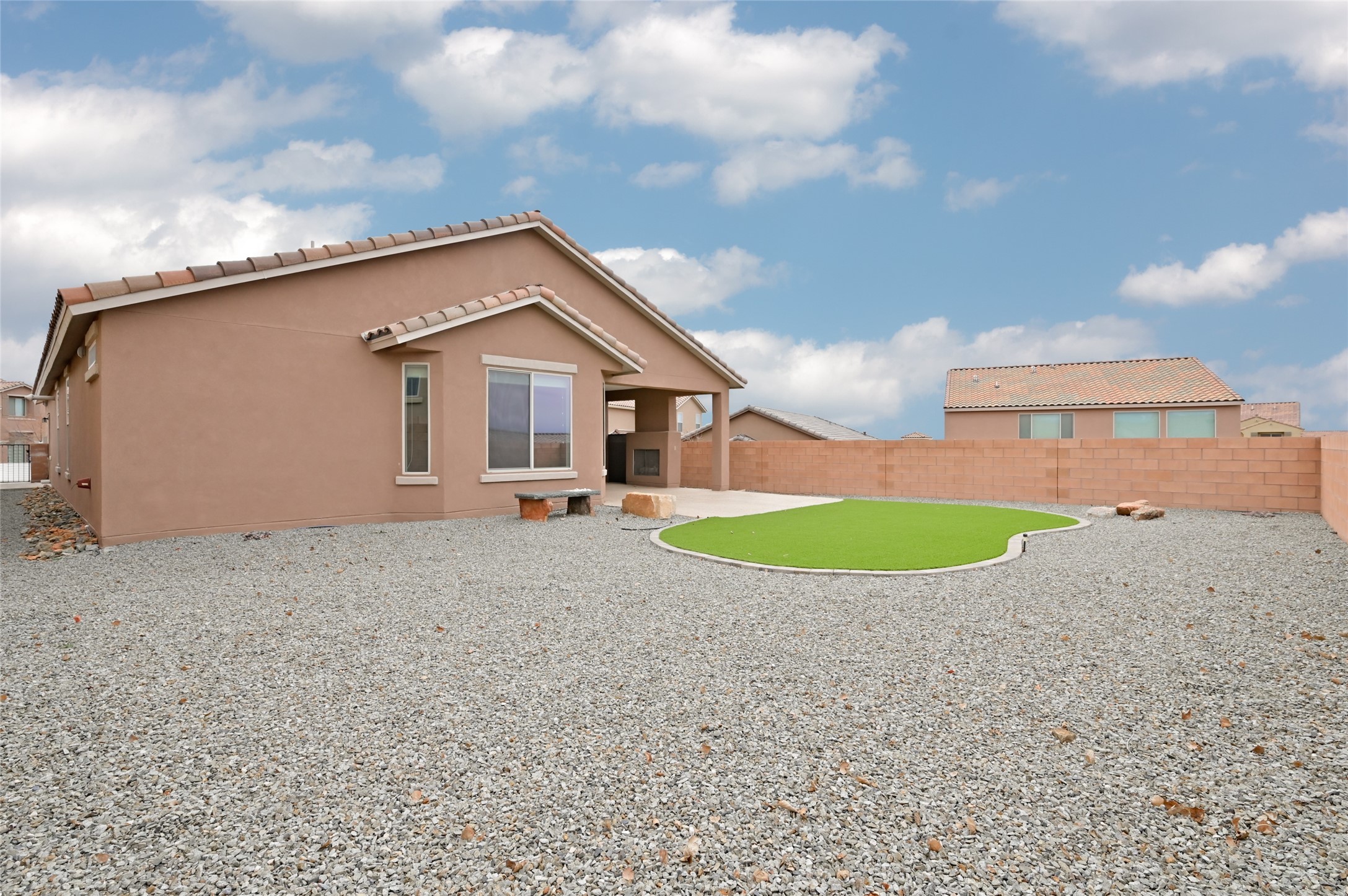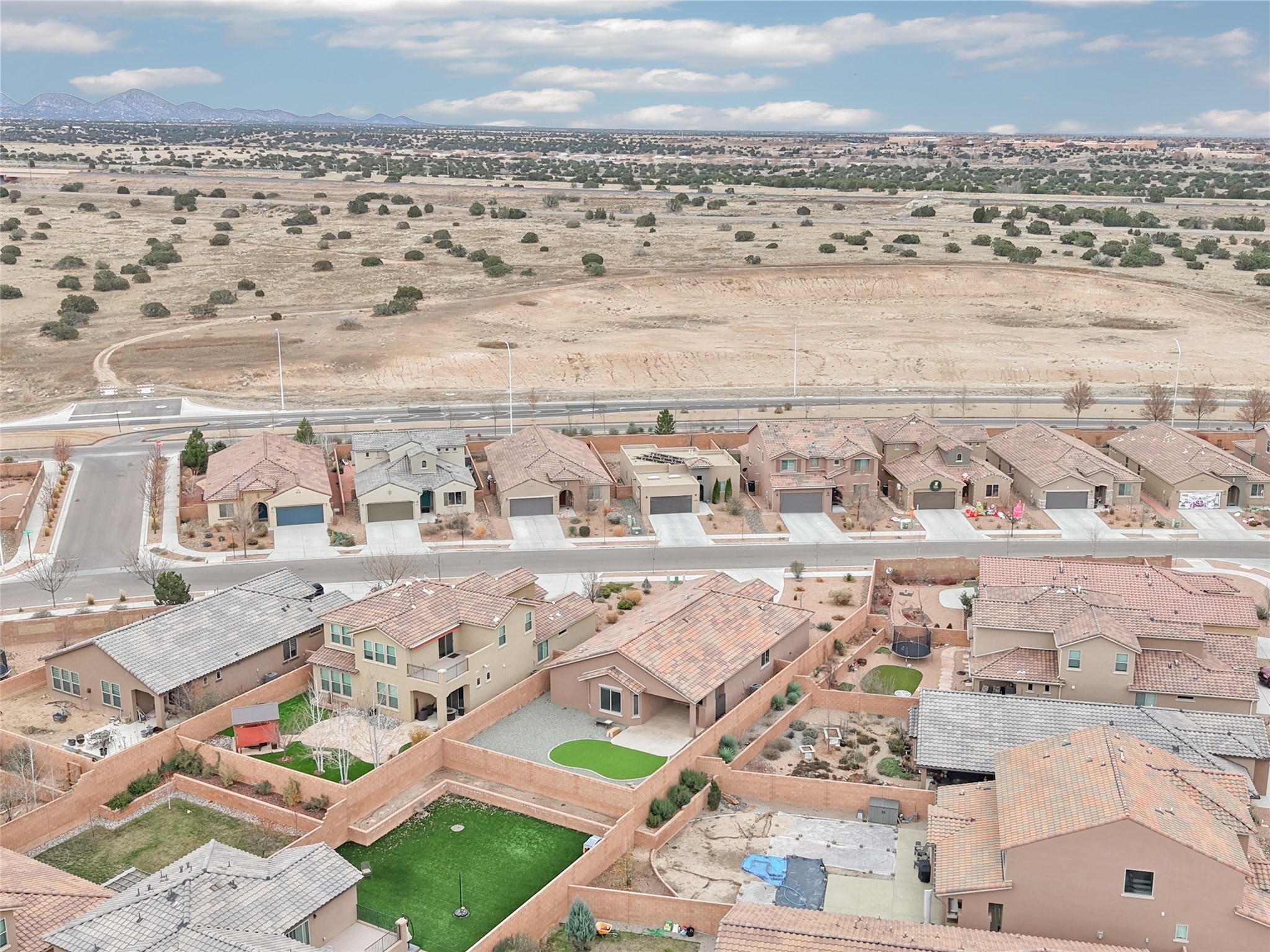 SELLER IS OFFERING A $10,000 CREDIT TOWARD AN INTEREST RATE BUY-DOWN - AN EXCEPTIONAL OPPORTUNITY TO REDUCE YOUR MONTHLY MORTGAGE COSTS! Built by Pulte in 2019, this beautifully maintained single-level 2,184 sq. ft. 3 bedroom/2 bathroom home is sited on a premium 0.20-acre lot, offering both privacy and captivating sunset views. Thoughtfully designed for comfortable living, the open-concept floor plan creates seamless flow between the kitchen, living, and dining areas. An elegant archway defines the living/kitchen/dining areas while framing a view of Santa Fe's expansive skies from the kitchen--a touch that brings both beauty and warmth to everyday living. The kitchen is a true standout, featuring extensive quartz counter space, abundant cabinetry, and stainless steel appliances. At its heart is a generous island with a sink and seating for four, perfect for a social gathering and sunset viewing. The generous primary suite has a large walk-in shower, double vanities and a substantial walk-in closet. The primary suite also has views of the private back yard. The large back portal has a beautiful gas fireplace and the back courtyard comes with green turf that never needs to be mowed! An attached 2-car garage and a mudroom/laundry room with a sink and a side-by-side washer and dryer complete this wonderful home. This beautiful home is newer in age and timeless. The premium lot and views definitely make it a stand out!