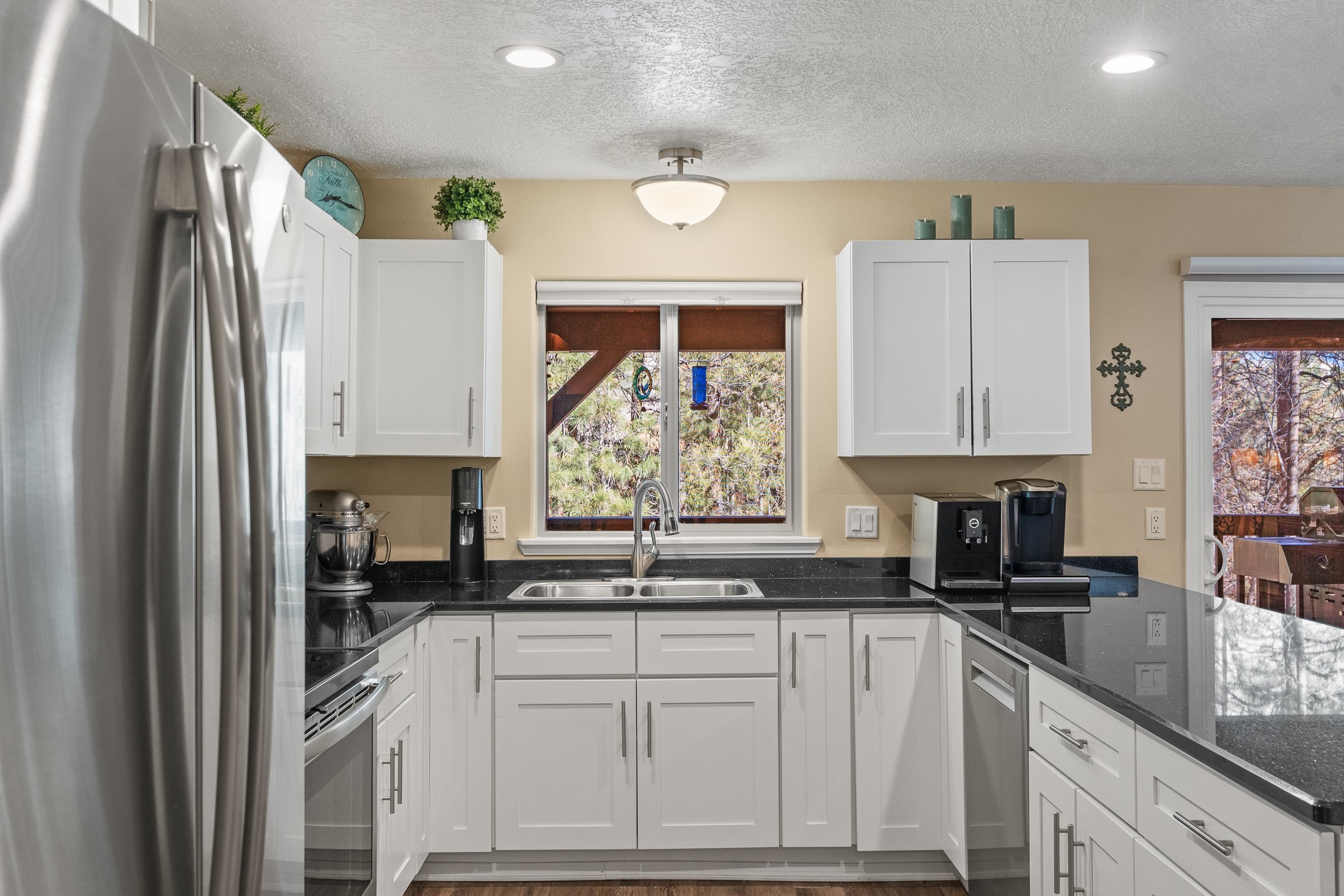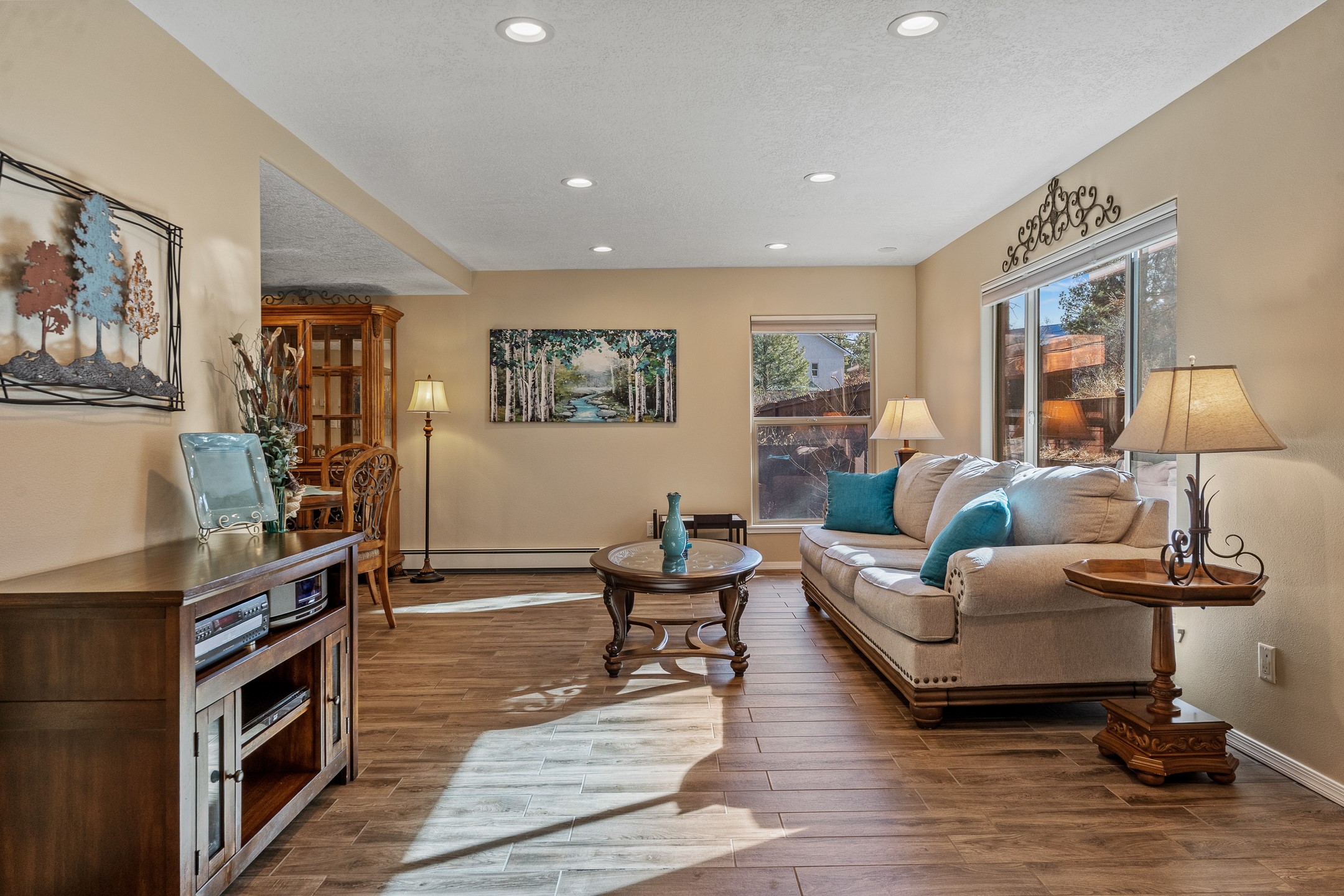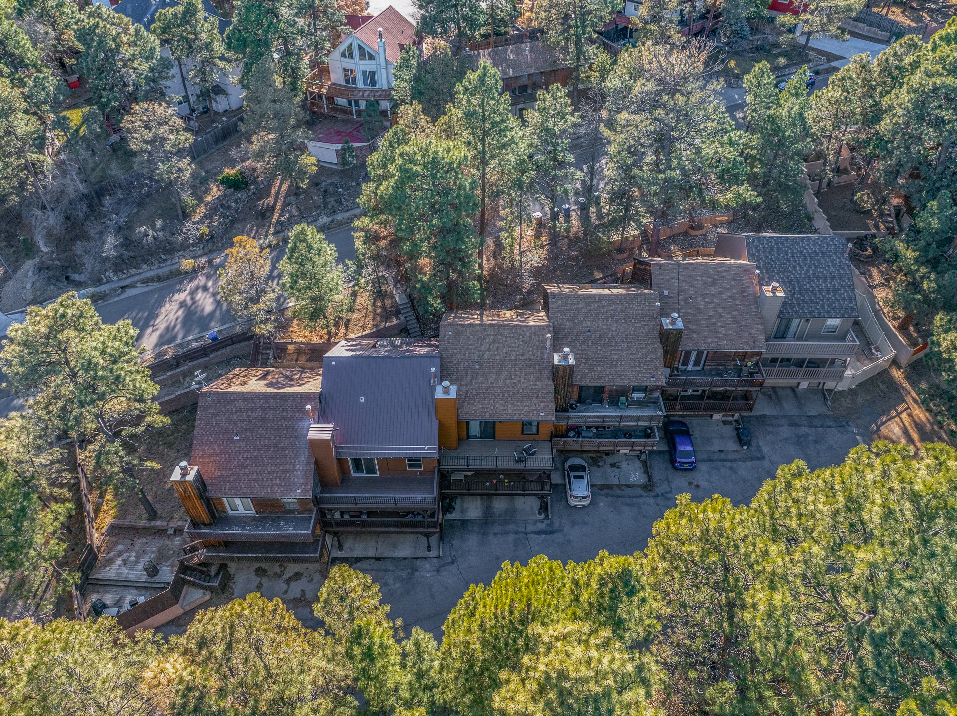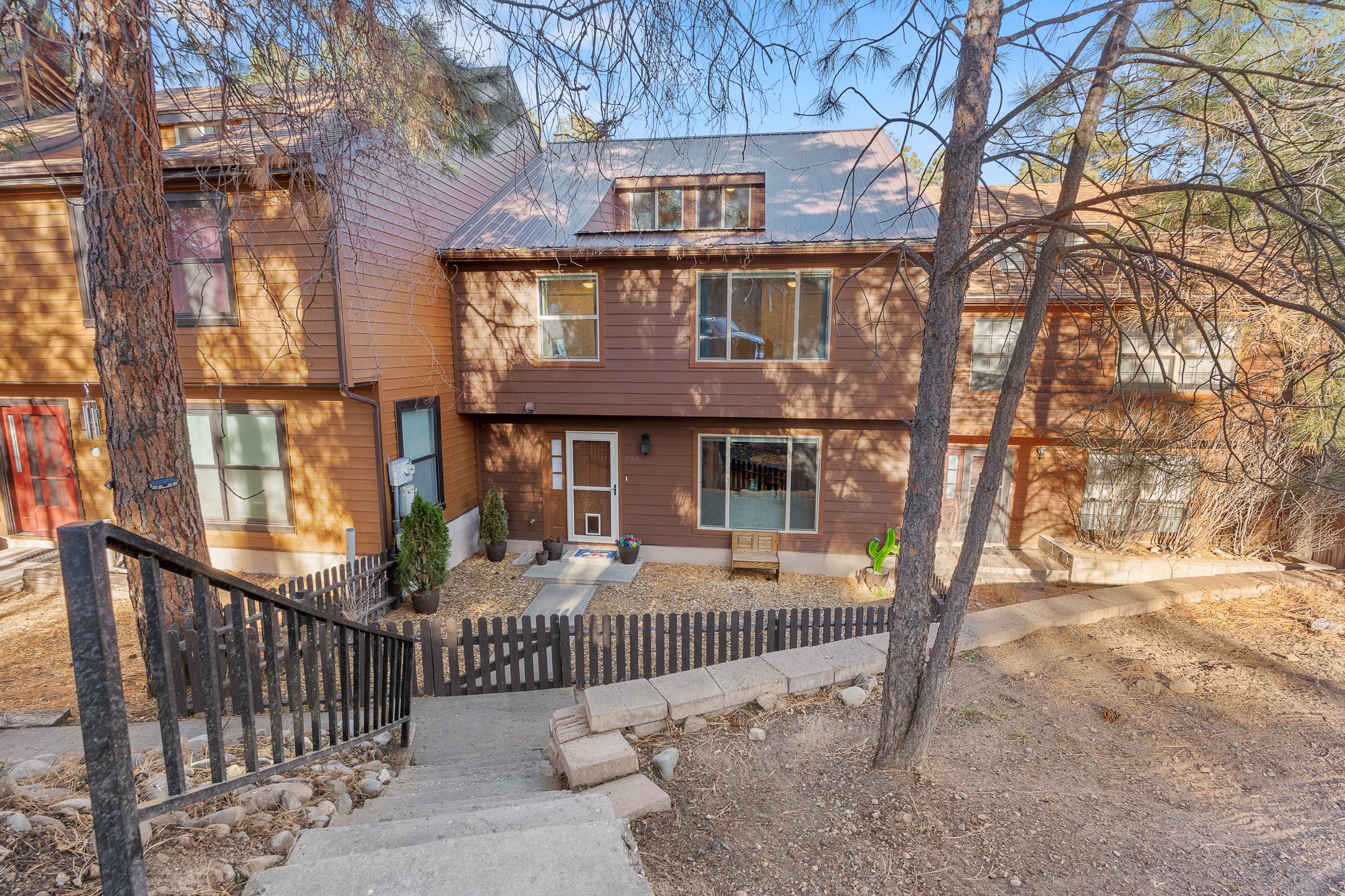 Beautifully remodeled townhome with a desirable multi-level floor plan, multiple decks with scenic views, mini split air conditioning, and a bright loft to top it all off. Welcome to 998 Alamo!Nestled among towering pines, this home offers a peaceful sense of retreat while still showcasing lovely views in North Mesa. Upon entry, you're greeted by updated recessed lighting and flooring that flows seamlessly throughout the main level. Just around the corner, a formal dining area opens to an inviting open-concept layout, connecting the kitchen and living room and extending onto a spacious deck--perfect for entertaining or simply enjoying the tranquil setting. The modern kitchen is equipped with stainless steel appliances, solid-surface countertops, and a charming window over the sink with views of the pines beyond. A conveniently located powder room completes this level.Upstairs, the living quarters await! The primary suite includes an en suite bathroom with a beautifully-tiled, modern shower, as well as a private deck to enjoy views of the night sky. The guest wing features two additional bedrooms, a full bathroom, and a dedicated laundry room.The next level reveals a bright and cheerful loft with large windows, offering flexibility as a home office, reading nook, or additional living space.On the lower level, you'll find a generous recreation area set up with a hot tub--perfect for relaxing after a long day. The spacious two-car garage includes ample storage.This thoughtfully updated home combines comfort, style, and serene mountain living. Don't miss the opportunity to make it yours--schedule a showing today before it's gone!