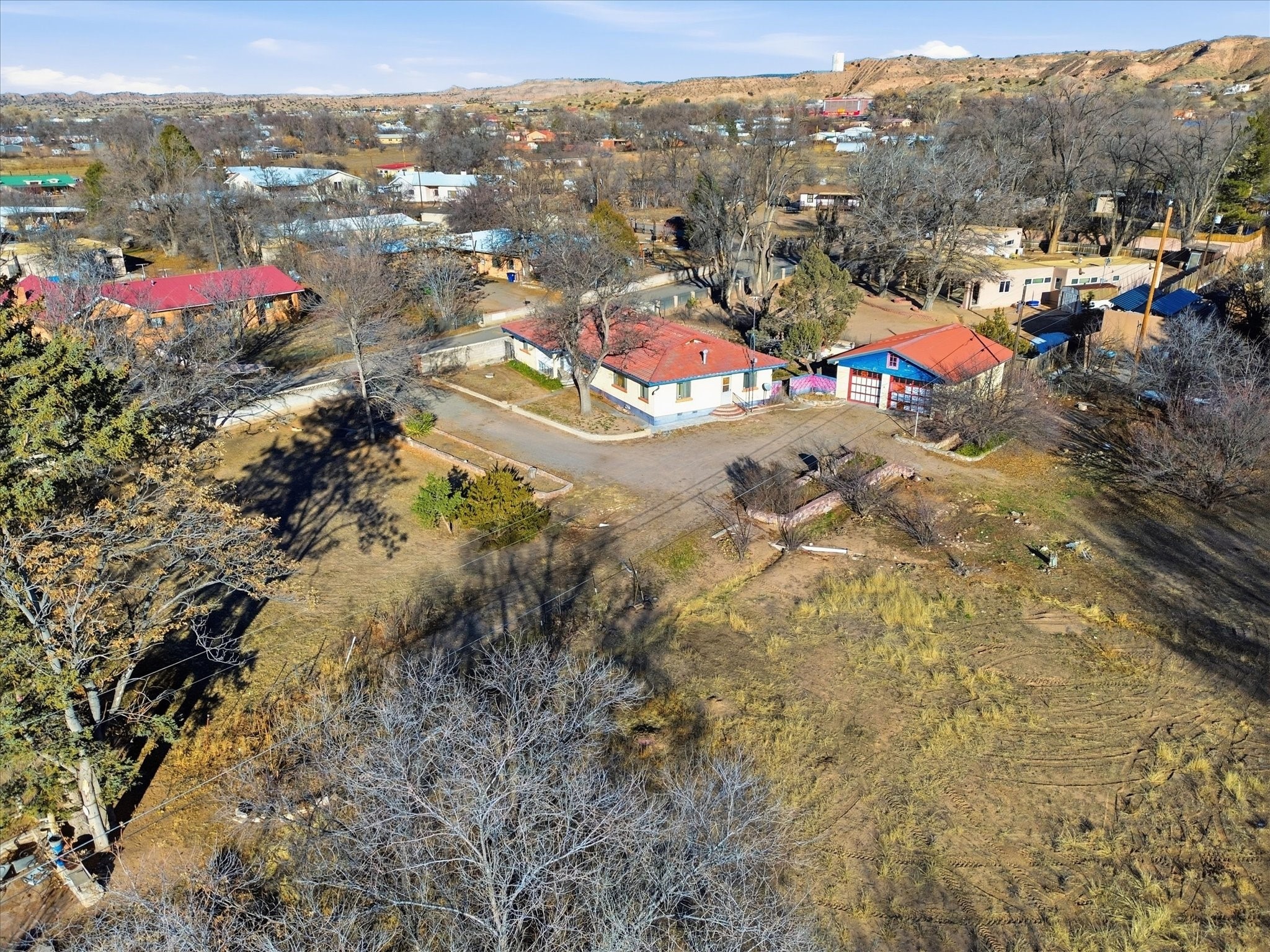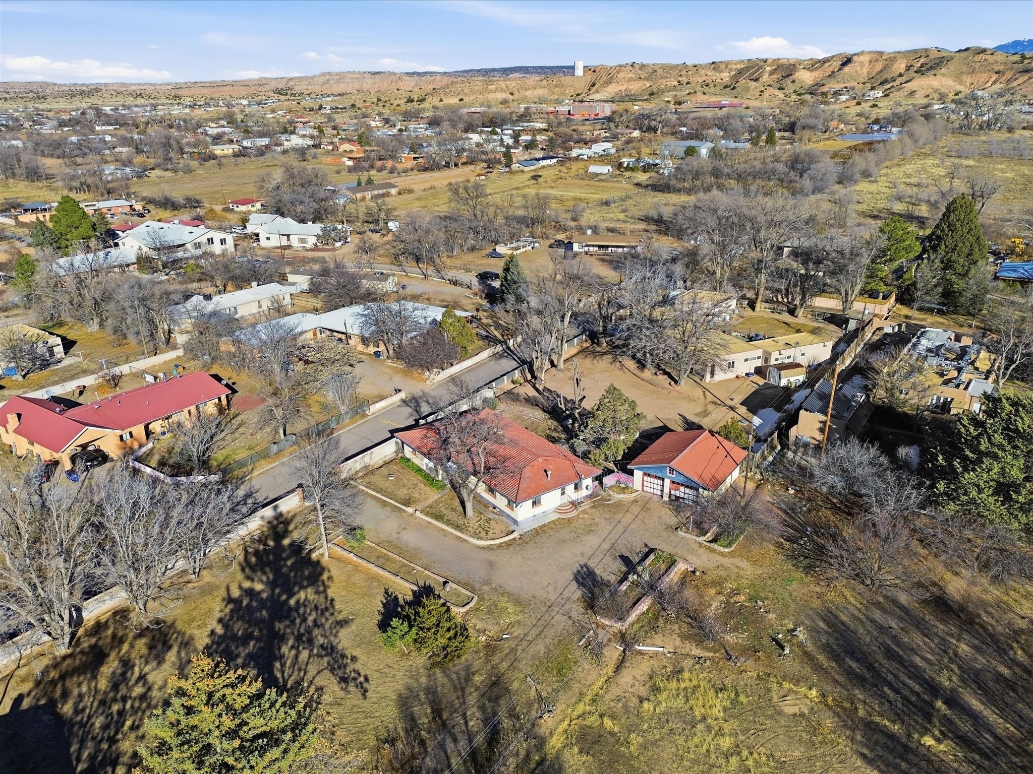 From Desert Sunsets To Adobe DreamsSet on a rare and beautifully spacious 1.15-acre lot in the heart of Espaola includes highly sought after water rights of .91 acre ft per acre, this 3-bedroom, 2-bath adobe home offers approximately 2,074 sq. ft. of timeless character and untapped potential. Built in 1961, this property is ready for a new chapter--ideal for investors, renovators, and creative visionaries looking to transform a classic into something truly exceptional.Featuring a dual-sided fireplace, a versatile multi-purpose room perfect for a studio or home office, and a detached two-car adobe garage with workshop potential, the foundation is here for a remarkable transformation. With city sewer and a shared well, enjoy convenience in an incredibly central location--minutes to shopping, restaurants, and schools--all while holding the rare luxury of acreage in town.A true canvas in the beautiful Espaola Valley--bring your vision and create the masterpiece this property was always meant to become.