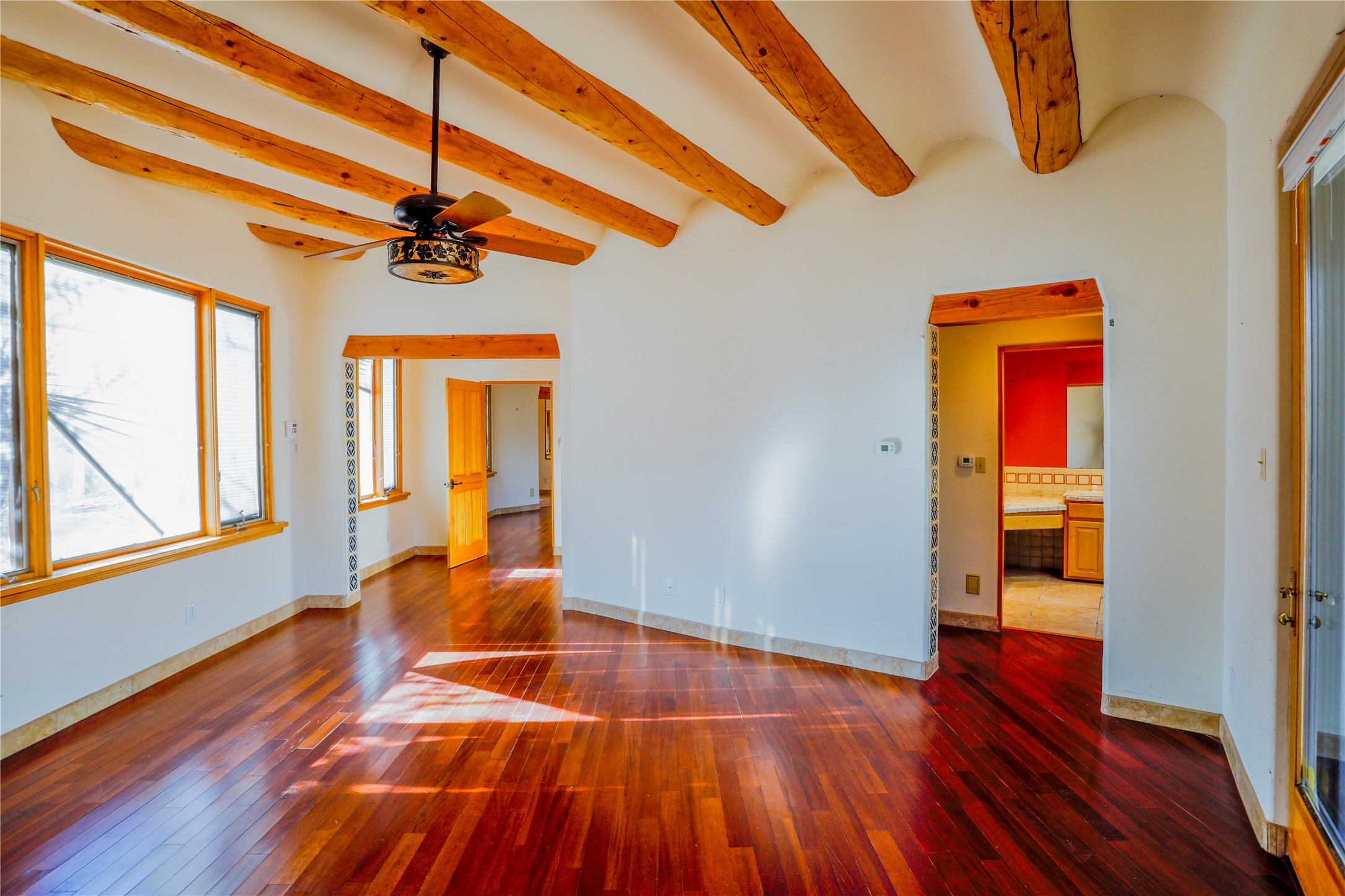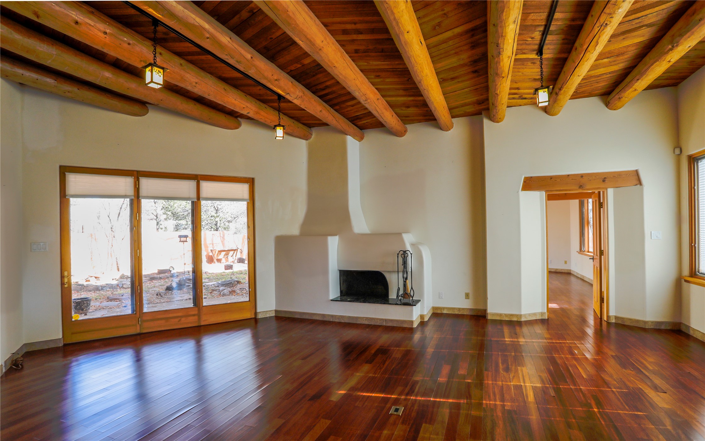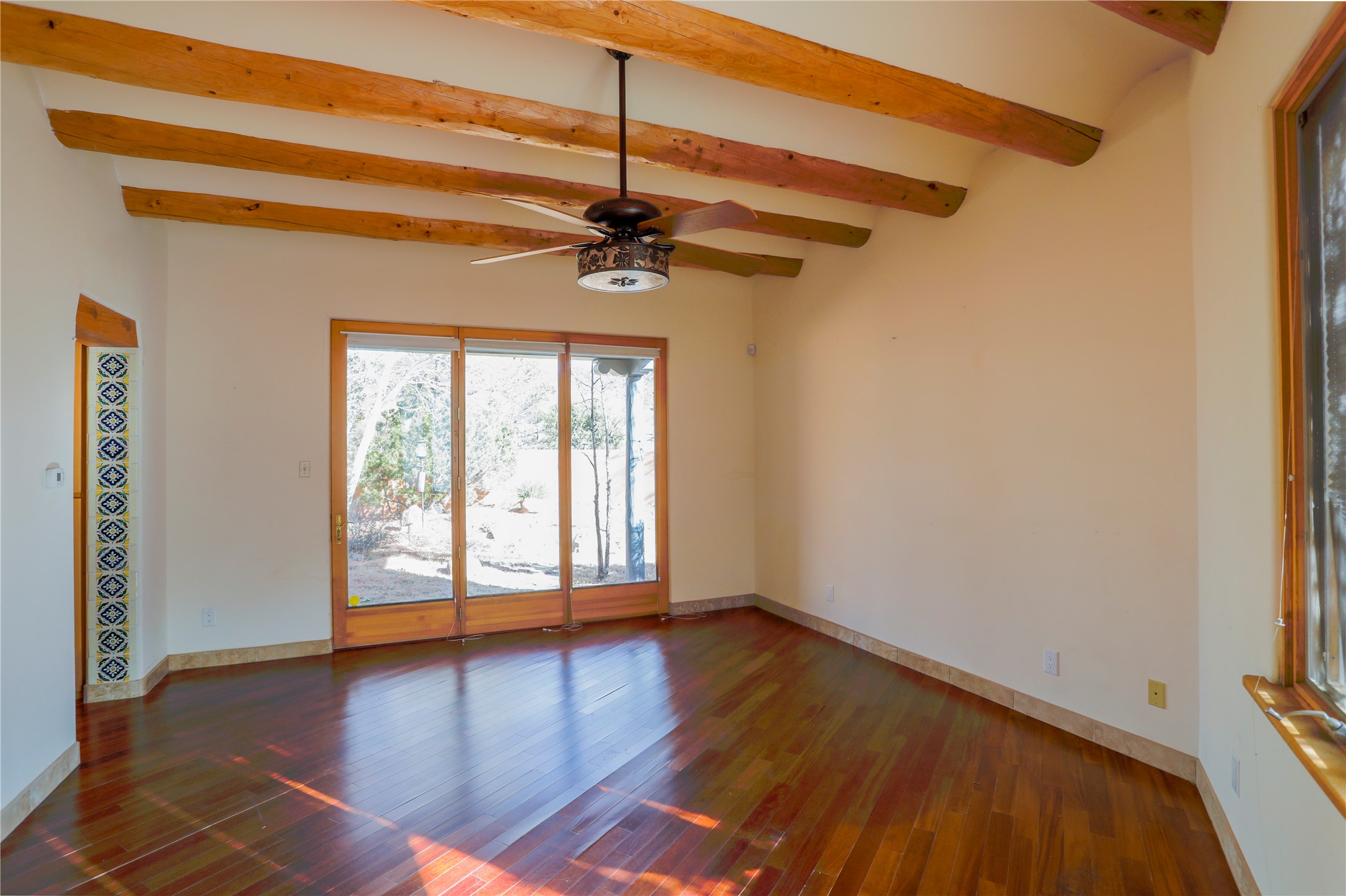 Charming property with unlimited potential in highly desirable neighborhood, this once-elegant home combines classic Pueblo design with warm Southwestern style. The main residence features 3 bedrooms and 2 baths, with an adjacent detached 1BR/1BA guest house offering tremendous flexibility. Soaring viga ceilings, open floor plan kitchen, den, and a blend of tile and wood floors throughout the home. The property features a spacious two-car garage, mature landscaping, and an indoor endless swim spa pool. Tucked away on a private lane located in the desirable Wood Gormley School District, this one-acre property offers views of Sun Mountain. With deferred maintenance throughout the property, list price reflects substantial repairs per pre-listing inspection (included in MLS documents). Tremendous value potential for a buyer willing to roll up its sleeves to restore the splendor of this home.