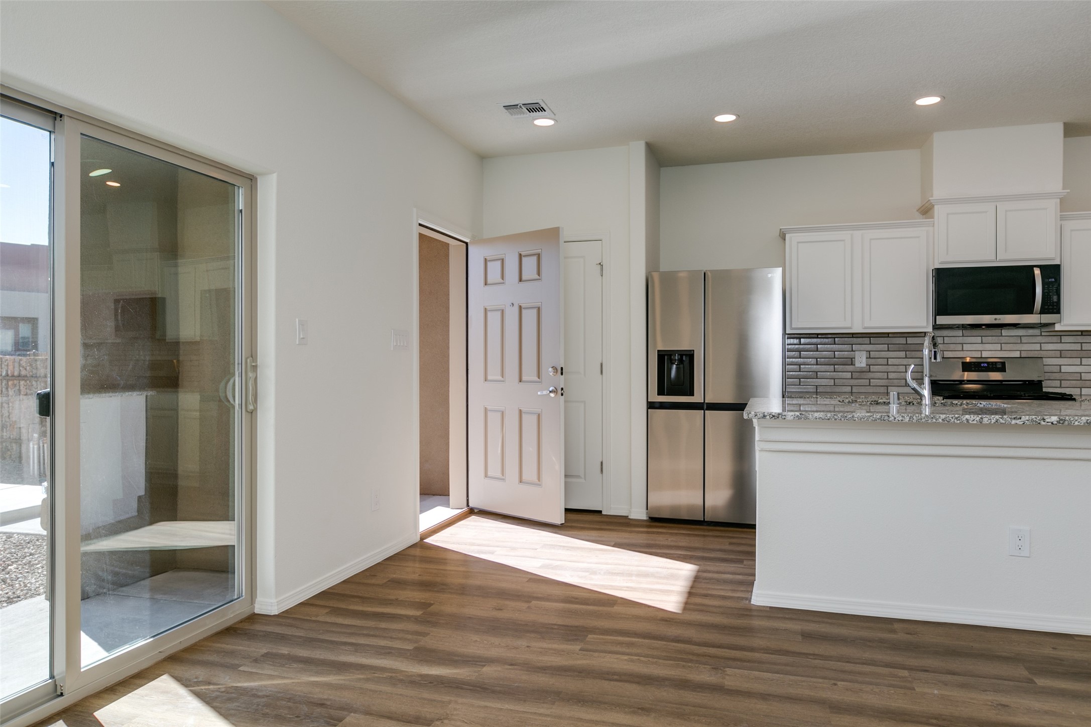 New townhome ready for move in. New community conveniently located and incredibly priced. Brand new, spacious townhomes in great location, move-in ready homes. Very affordable pricing. First floor is an open floorplan with kitchen, dining area, powder bath and living area. Living area features glass sliders opening to a spacious back patio. The second floor features all three bedrooms. The laundry room is conveniently located on the second floor. Primary bath features dual sinks,shower and separate commode area. Second upstairs bath features tub/shower. Large closets throughout. Primary bedroom walk-in closet. Solid granite counter tops in Kitchen and baths w/4" granite backsplash. Luxury vinyl tile on entire first floor, bathrooms and laundry room. 2-10 Ltd 10yr Warranty + Exclusive Builder 1 yr warranty. Front and rear landscaping. Recessed LED lighting. Tankless water heater, programmable thermostat and much more.