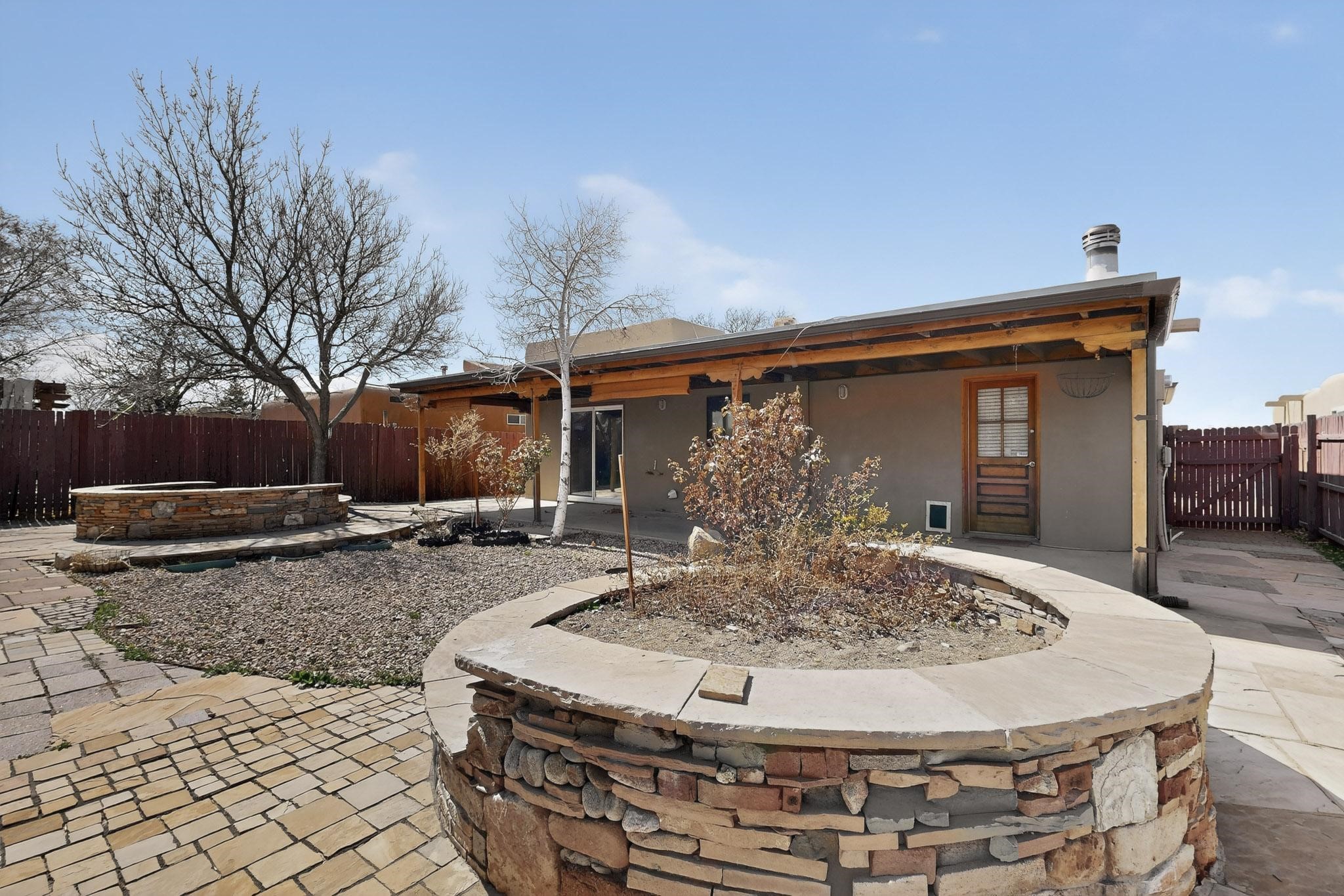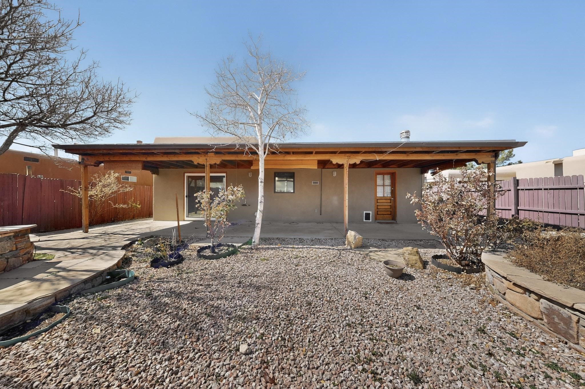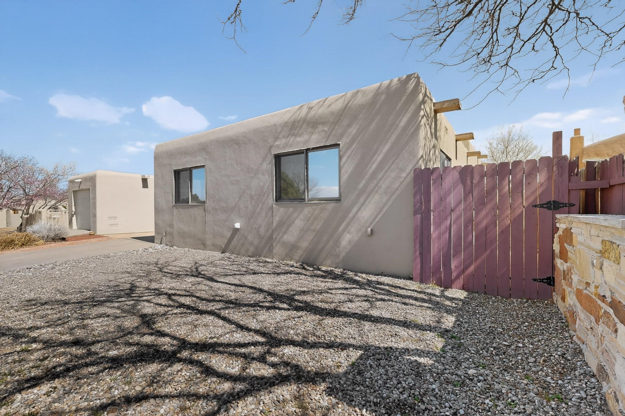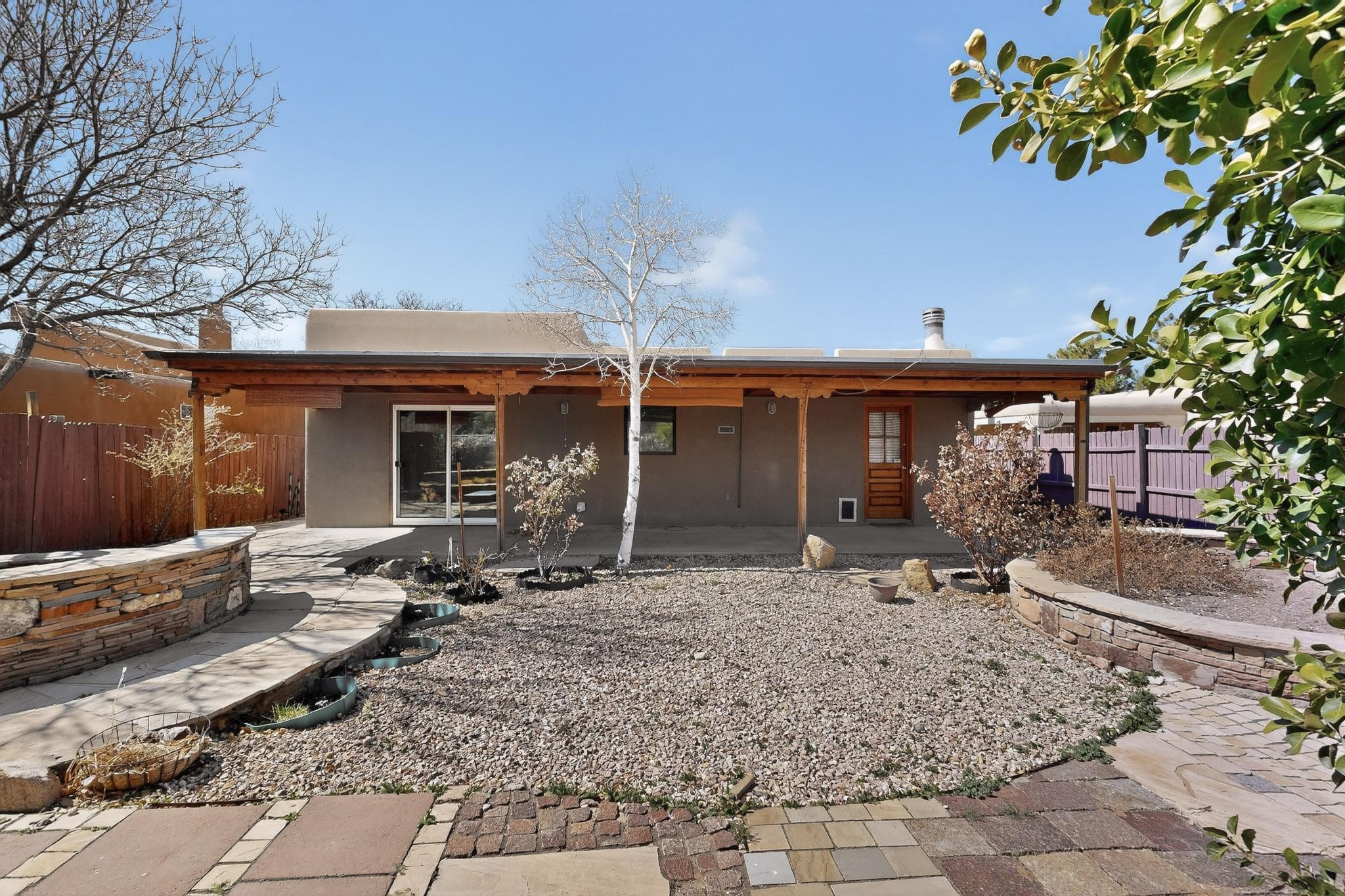 Ideally located just across from the Genoveva Chavez Center, this beautifully updated single-level home offers unbeatableconvenience with quick access to downtown Santa Fe and easy access to shopping, schools, including zoning in Pion Elementary school and everything the city has to offer. Boasting 1,794 sq ft, this thoughtfully designed 3-bedroom, 2-bath home features a modern open-concept layout perfect for comfortable living and effortless entertaining. The updated kitchen is a true showstopper, showcasing elegant waterfall granite countertops, a coordinating backsplash, and ample space for both counter seating and a dining table. The spacious living room is the heart of the home, offering soaring ceilings adorned with rich wood beams and tongue-and-groove detail, a cozy wood-burning fireplace, and a seamless flow. A sliding glass door opens to your private backyard retreat--perfect for indoor-outdoor living. Step outside to discover an enclosed, landscaped yard with mature gardens, a large covered portal ideal for year-round enjoyment, and exquisite hand-carved stonework throughout both the front and back yards. Additional highlights include a versatile mudroom/storage space/office or studio with direct outdoor access. This Santa Fe treasure blends timeless charm with modern updates in a location that truly can't be beat. Comeexperience it for yourself!