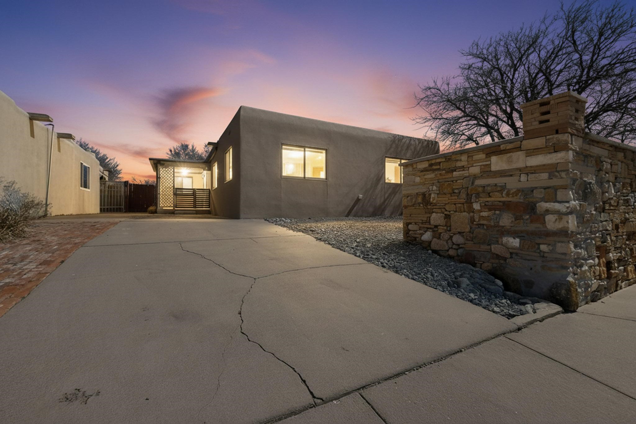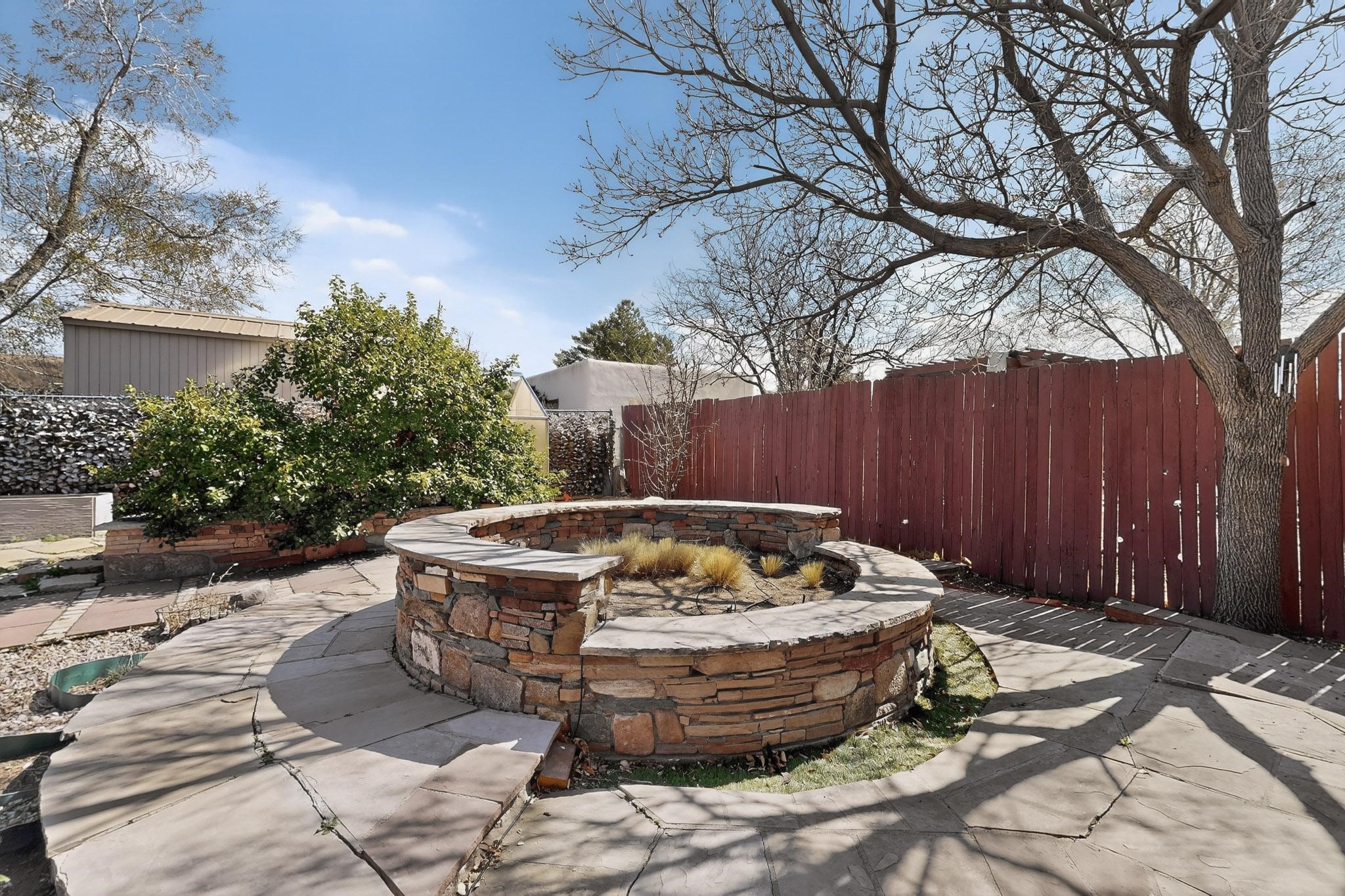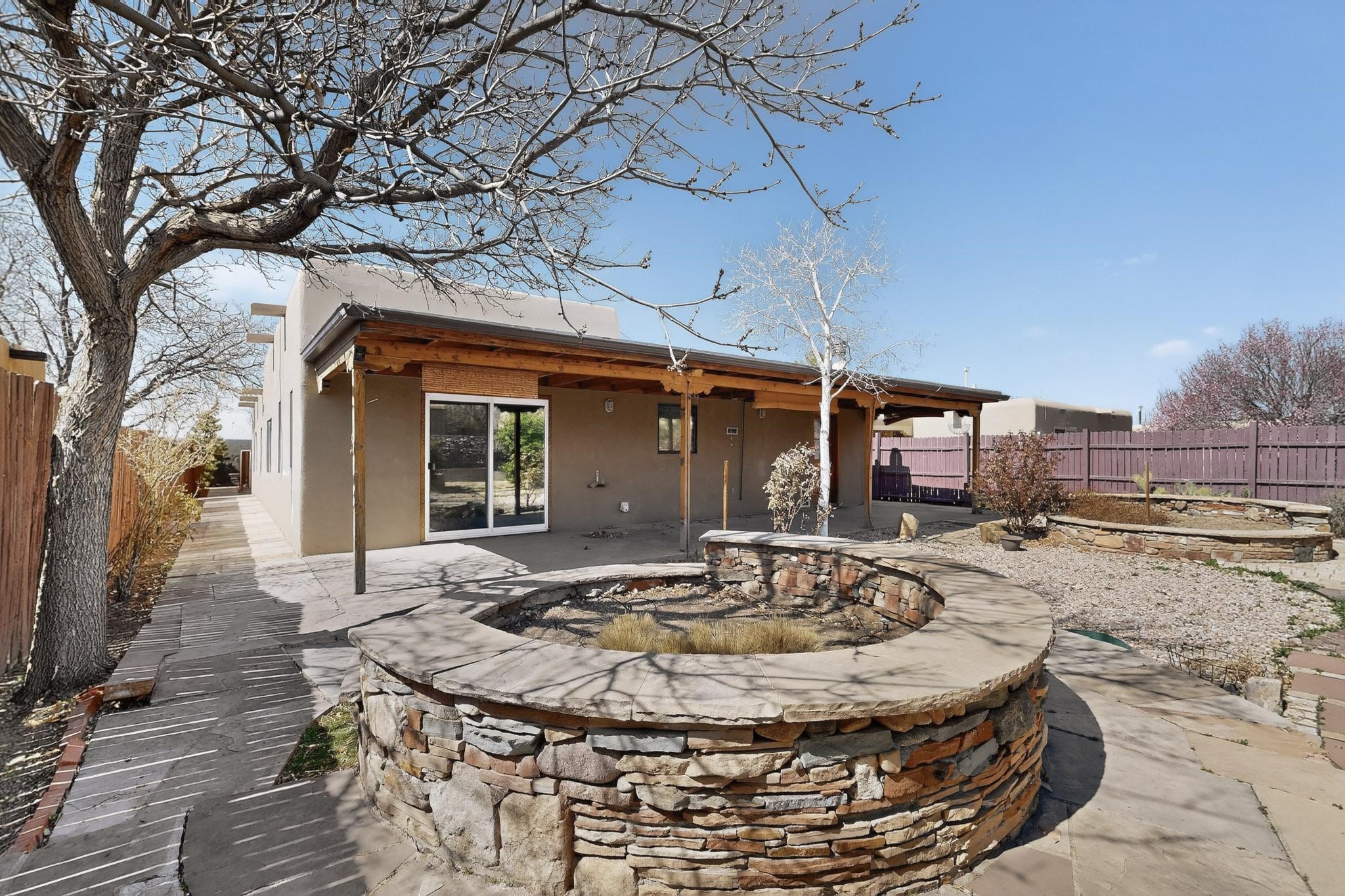 Ideally located just across from the Genoveva Chavez Center, this beautifully updated single-level home offers unbeatableconvenience with quick access to downtown Santa Fe and easy access to shopping, schools, including zoning in Pion Elementary school and everything the city has to offer. Boasting 1,794 sq ft, this thoughtfully designed 3-bedroom, 2-bath home features a modern open-concept layout perfect for comfortable living and effortless entertaining. The updated kitchen is a true showstopper, showcasing elegant waterfall granite countertops, a coordinating backsplash, and ample space for both counter seating and a dining table. The spacious living room is the heart of the home, offering soaring ceilings adorned with rich wood beams and tongue-and-groove detail, a cozy wood-burning fireplace, and a seamless flow. A sliding glass door opens to your private backyard retreat--perfect for indoor-outdoor living. Step outside to discover an enclosed, landscaped yard with mature gardens, a large covered portal ideal for year-round enjoyment, and exquisite hand-carved stonework throughout both the front and back yards. Additional highlights include a versatile mudroom/storage space/office or studio with direct outdoor access. This Santa Fe treasure blends timeless charm with modern updates in a location that truly can't be beat. Comeexperience it for yourself!