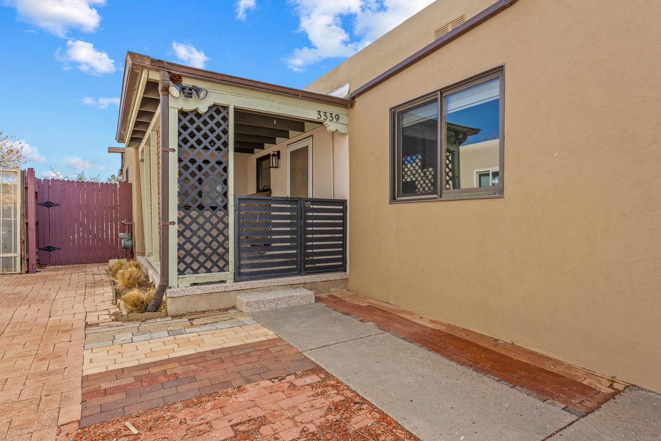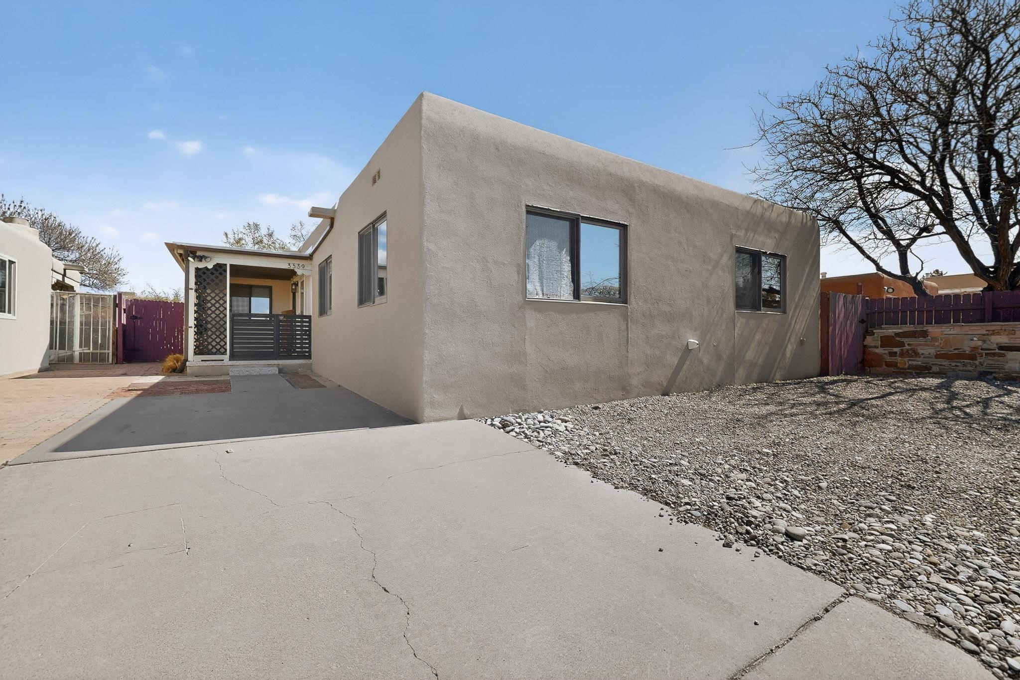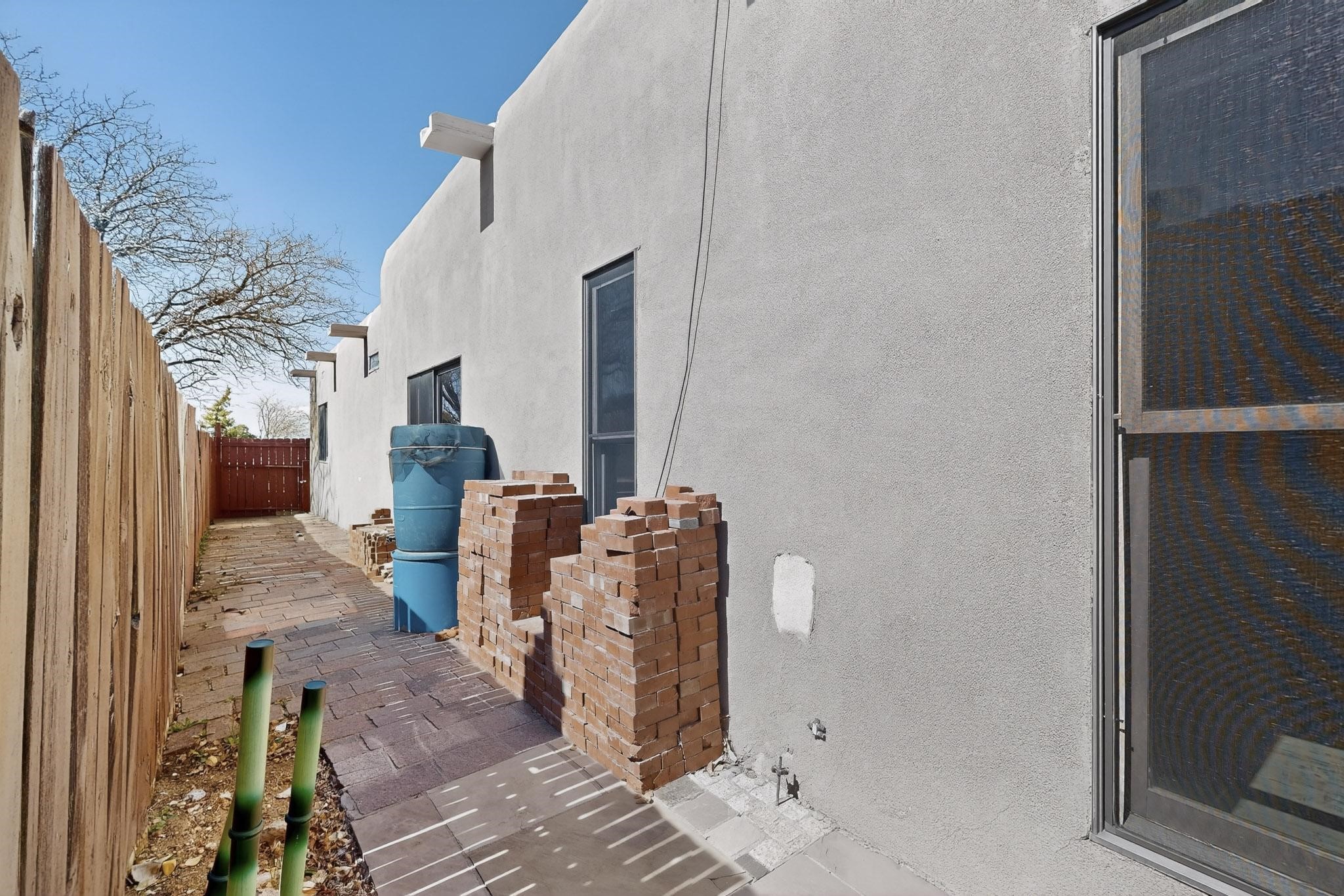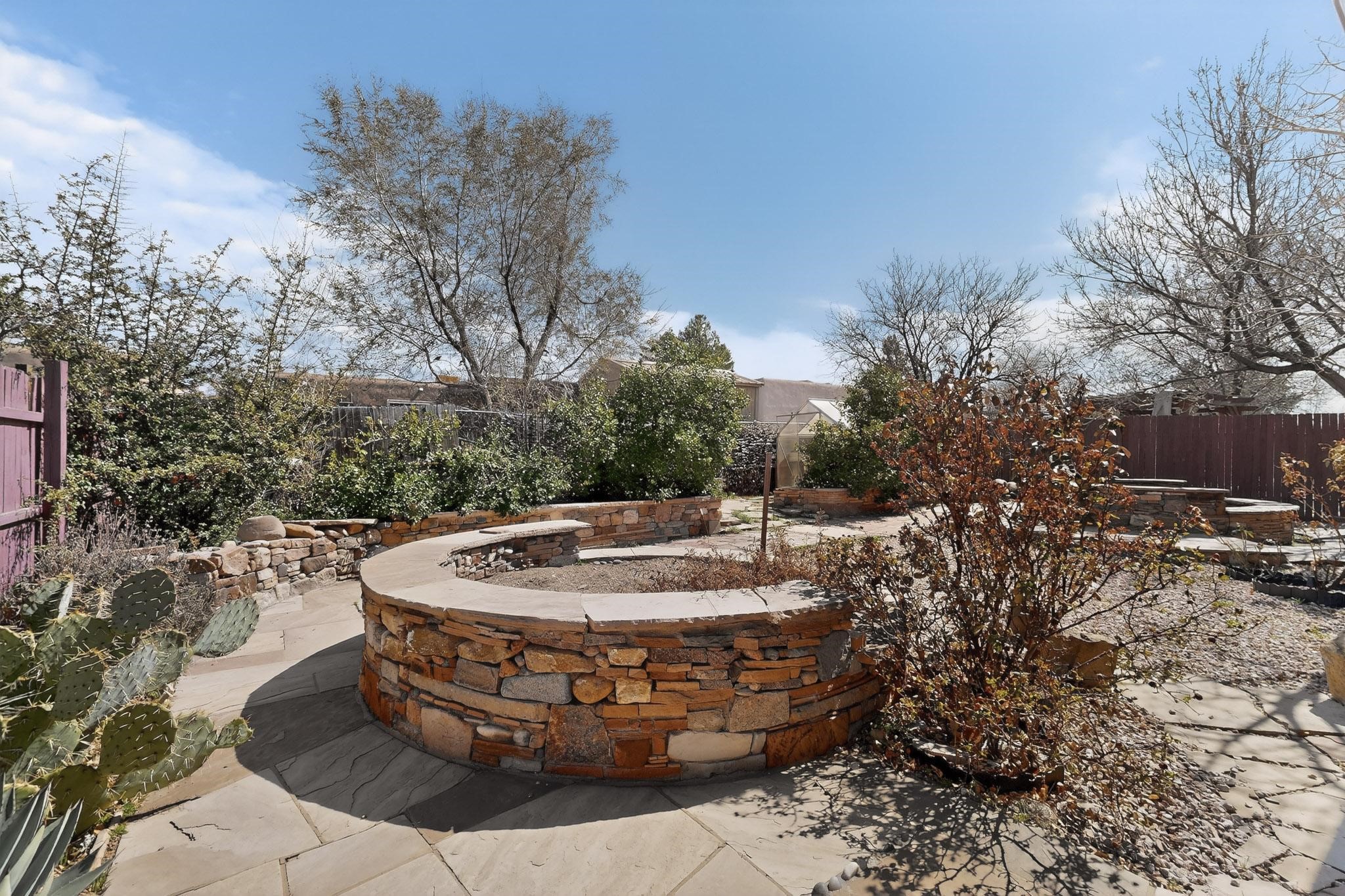 Ideally located just across from the Genoveva Chavez Center, this beautifully updated single-level home offers unbeatableconvenience with quick access to downtown Santa Fe and easy access to shopping, schools, including zoning in Pion Elementary school and everything the city has to offer. Boasting 1,794 sq ft, this thoughtfully designed 3-bedroom, 2-bath home features a modern open-concept layout perfect for comfortable living and effortless entertaining. The updated kitchen is a true showstopper, showcasing elegant waterfall granite countertops, a coordinating backsplash, and ample space for both counter seating and a dining table. The spacious living room is the heart of the home, offering soaring ceilings adorned with rich wood beams and tongue-and-groove detail, a cozy wood-burning fireplace, and a seamless flow. A sliding glass door opens to your private backyard retreat--perfect for indoor-outdoor living. Step outside to discover an enclosed, landscaped yard with mature gardens, a large covered portal ideal for year-round enjoyment, and exquisite hand-carved stonework throughout both the front and back yards. Additional highlights include a versatile mudroom/storage space/office or studio with direct outdoor access. This Santa Fe treasure blends timeless charm with modern updates in a location that truly can't be beat. Comeexperience it for yourself!