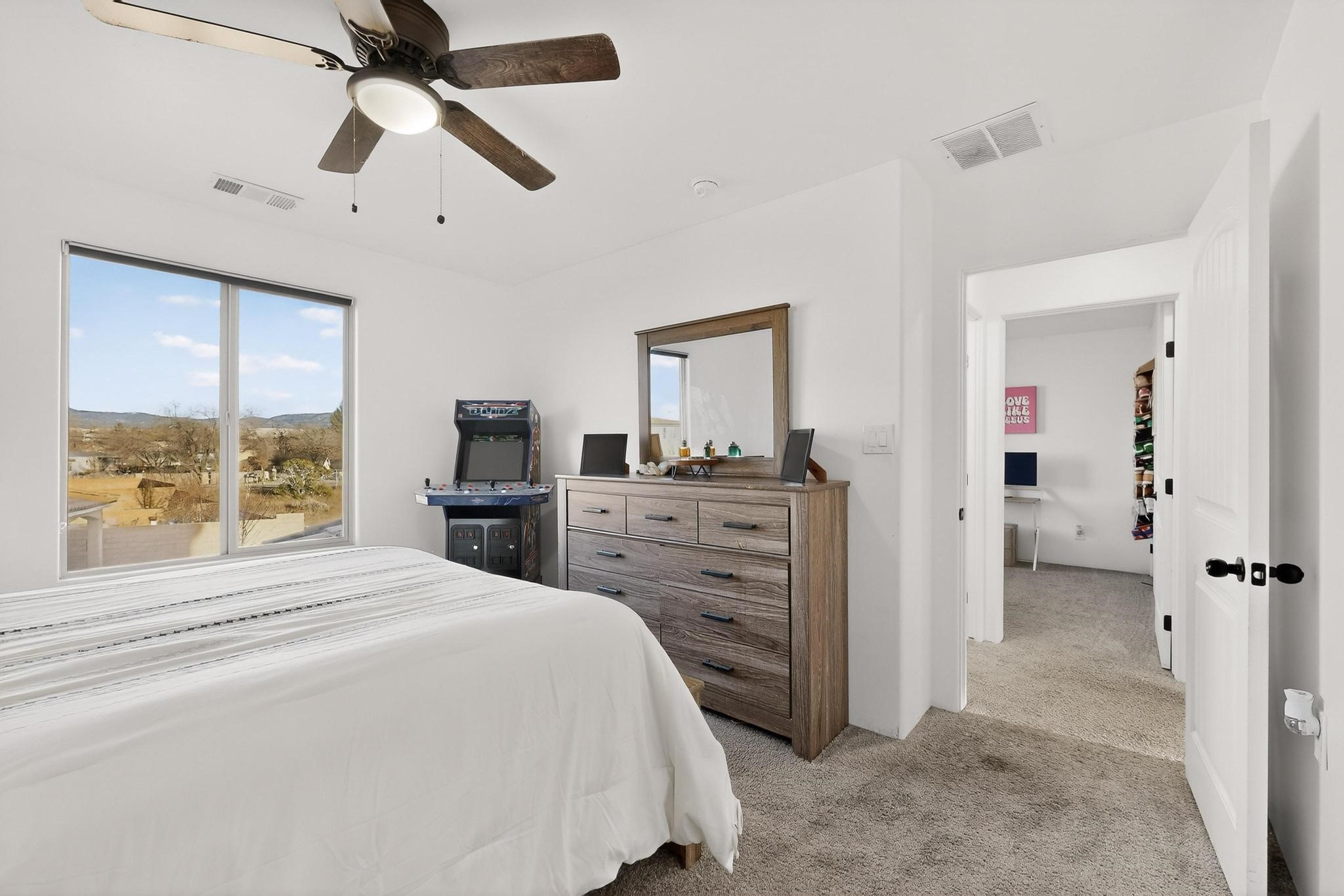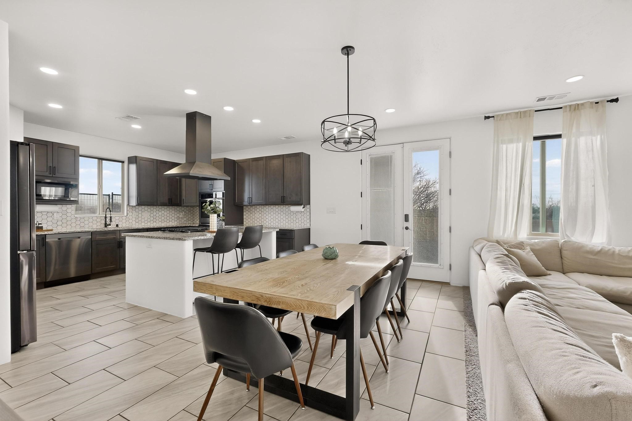 Welcome to 3930 Jaxson Lane, a beautifully appointed turnkey home perfectly positioned on a desirable corner lot in Santa Fe. Just minutes from Hwy 599 and Santa Fe Place Mall--with easy access to Target, Starbucks, and Albertsons--this property offers the ideal blend of comfort, convenience, and modern living.Featuring 5 spacious bedrooms Plus Bonus Flex Room and 3 full bathrooms, this home provides exceptional flexibility for families, professionals, guests, or home office needs. The thoughtfully designed layout includes an inviting open loft, perfect for movie nights, a play area, or a relaxing retreat.The heart of the home is the gourmet chef's kitchen, equipped with three ovens, a sleek dark stainless steel refrigerator and microwave, and high-end finishes--making holiday gatherings and entertaining effortless. Energy-efficient appliances and HVAC add to the home's smart, modern appeal.Elegant bronze finishes and striking double doors at both the front and back flood the home with natural light and create a warm, welcoming atmosphere throughout. Two bathrooms feature beautiful tiled walls, offering a spa-like experience for everyday living.Step outside to enjoy a large backyard ideal for entertaining or quiet evenings, complete with a private hot tub for ultimate relaxation. The private balcony off the primary bedroom is a peaceful retreat--perfect for morning coffee or unwinding at the end of the day.Additional highlights include a dedicated laundry space upstairs, a large driveway accommodating up to six vehicles, and a 3-car garage with EV charger providing ample space for parking, storage, and hobbies.With a convenient 45-minute commute to both Los Alamos and Albuquerque, this home delivers the charm of Santa Fe living with excellent regional access.Filled with warmth, comfort, and thoughtful upgrades, 3930 Jaxson Lane is a home designed to be lived in and loved. Don't miss the opportunity to make this exceptional property your own.