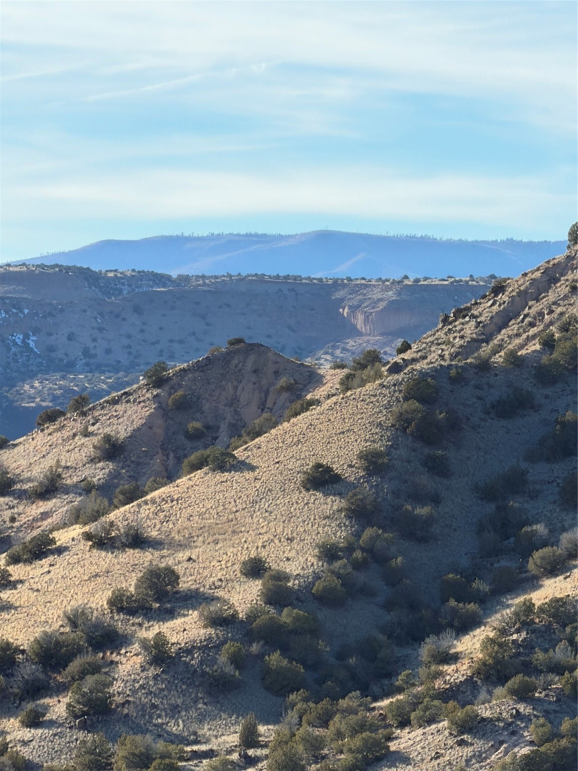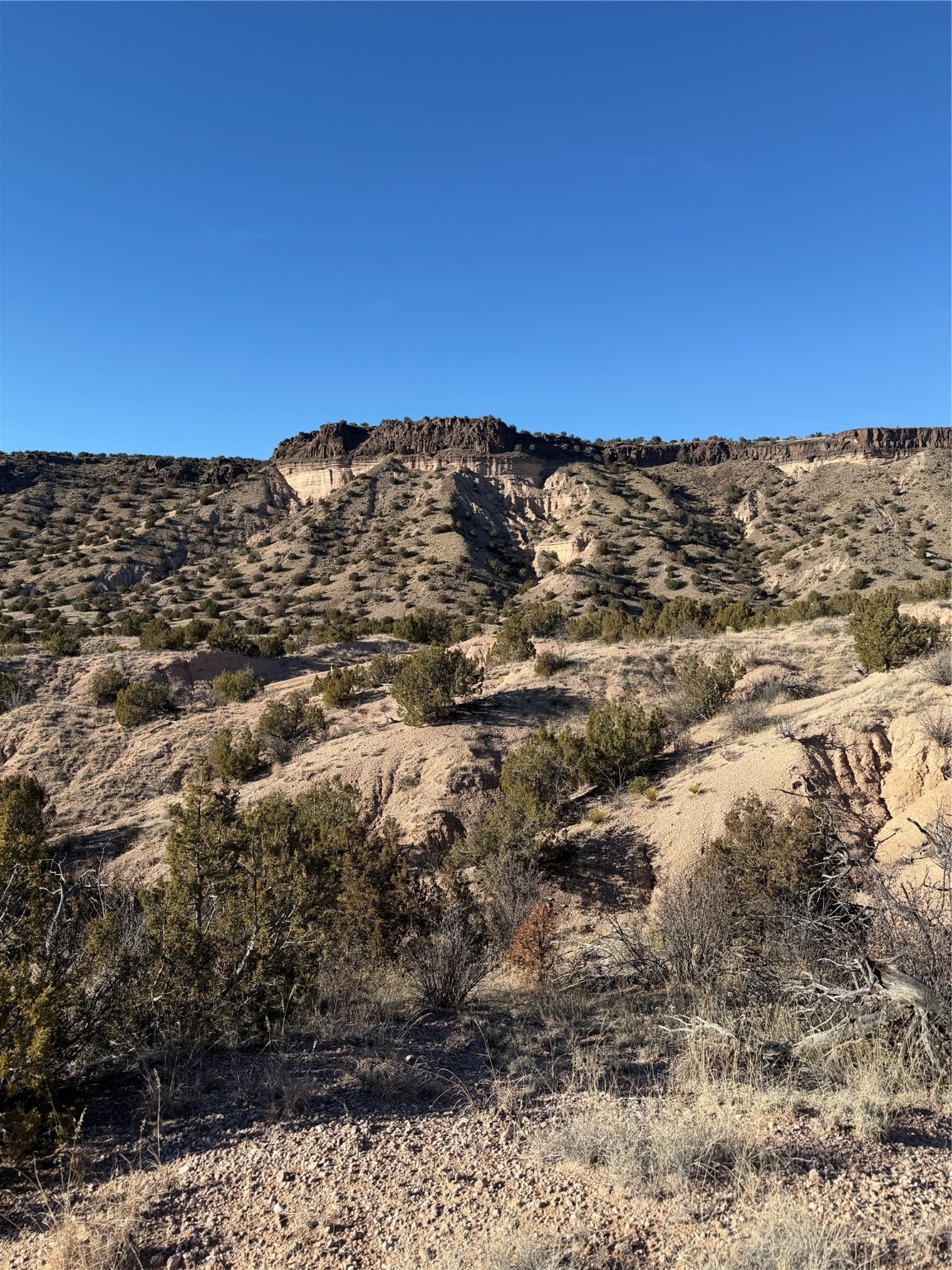 Off-grid lot within sight of the Rio Grande. 2.5 acres with major views in every direction, this lot borders National Forest land on all sides, and is near the Rio Grande and the Diablo Canyon Recreation area for more outdoor opportunities. Sited about ten miles from Las Campanas in northwest Santa Fe, this lot features multiple elevated sites and dramatic scenery; Kalitaya Way and a buried gas pipeline go through the property. Roads are primitive, high clearance vehicle is recommended.