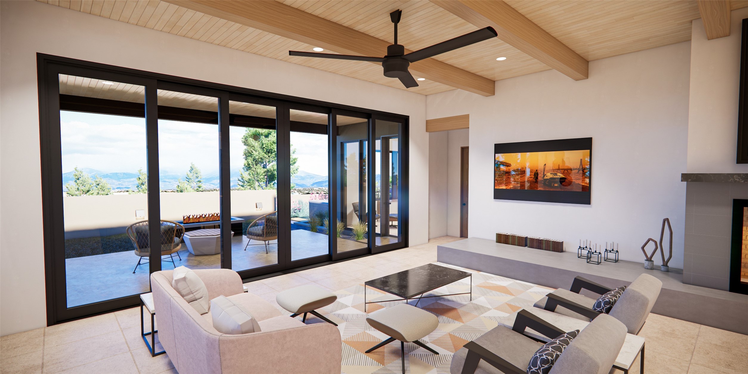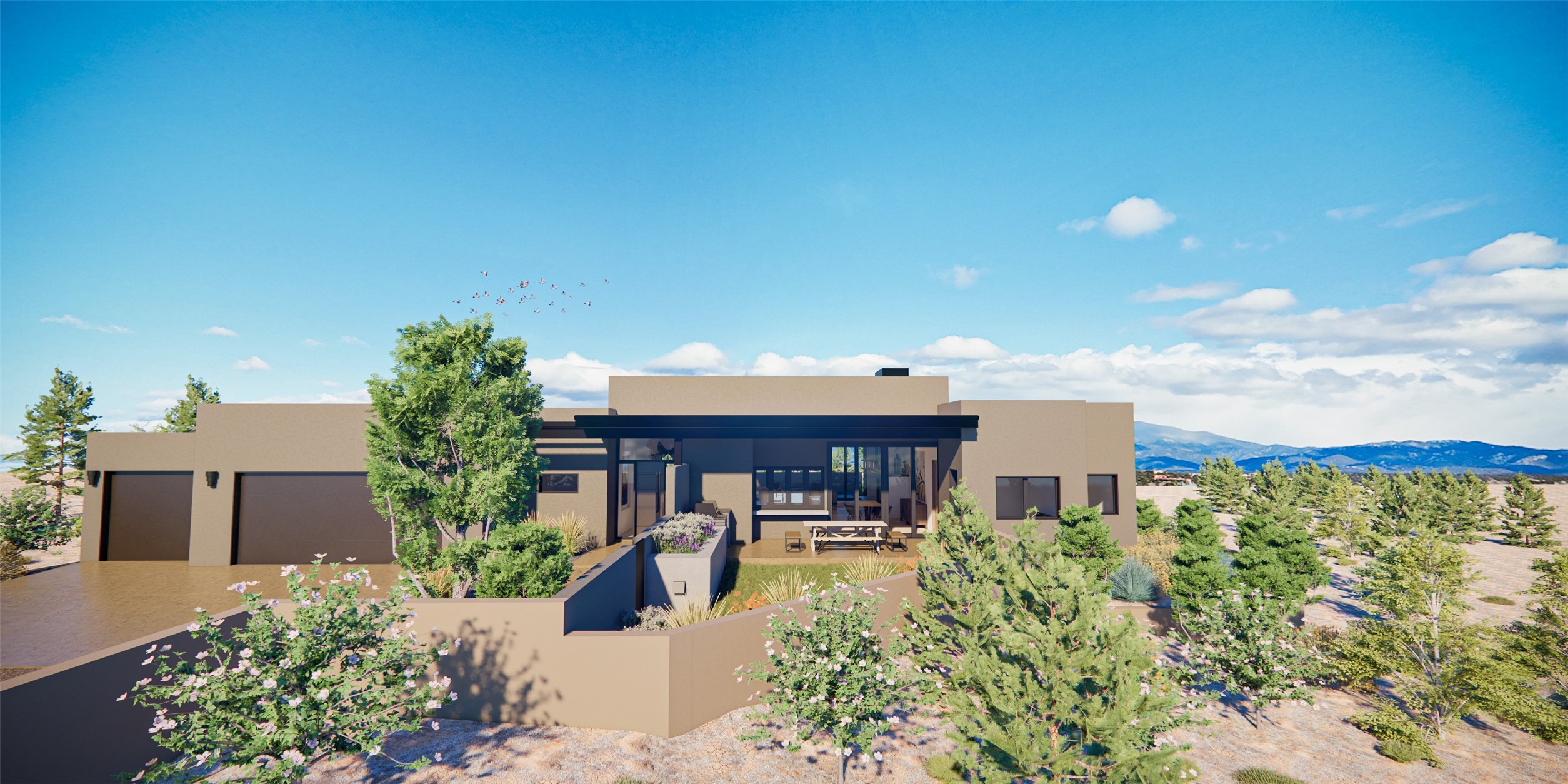 Thoughtfully designed to frame sweeping panoramas of the Sangre de Cristo and Jemez Mountains, this exceptional residence captures some of Santa Fe's most iconic scenery. Set on a .80-acre homesite, the three-bedroom, three-bath home offers a seamless blend of refined design and effortless livability. An expansive and flexible studio, gym, or office provides versatility for creative pursuits, wellness, or remote work, while generous covered portals inviteyear-round outdoor living and entertaining. A private, sunken patio--perfectly positioned for a hot tub--offers a tranquil retreat for soaking under brilliant night skies and endless mountain views.The home is finished with premium appointments throughout, including a Wolf and Sub-Zero appliance package, custom cabinetry and doors, and elegant tile flooring. A three-car garage adds convenience and storage, completing the home's thoughtful design. Located within the exclusive Tierra Antigua community, just 15 minutes from downtown Santa Fe, this 44-acre enclave features only 23 homesites with over 50% of the land preserved as open space. The result is a rare balance of privacy, natural beauty, and close-in convenience--an ideal setting for those seeking an authentic Santa Fe lifestyle.