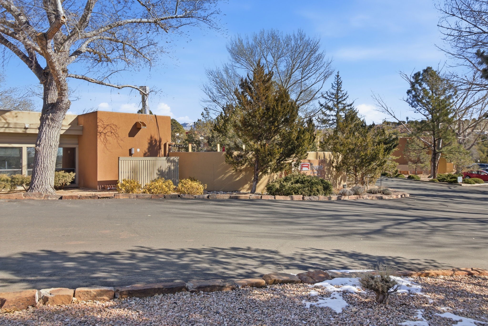 Bathed in natural light, this south-facing second-floor end-unit condo is a rare offering in The Reserve, one of Santa Fe's most desirable condominium communities, currently undergoing a complete refurbishment. Ideally located just minutes from downtown and close to shopping, dining, and city amenities, the home offers both convenience and a peaceful retreat.This quiet and private 2-bedroom, 2-bath residence is among the most beautifully designed homes in the community. The spacious living room opens through a sliding glass door to a sun-filled south-facing balcony with an electrified storage closet, ideal for bikes, gear, or projects. The updated kitchen features track lighting, a deep sink, tile countertops, and a generous pantry. Improvements throughout include new plugs and switches, newer carpeting in living areas, and tile flooring in the kitchen and baths.The guest bath includes a two-year-old deep soaking tub with acrylic surround to the ceiling, updated lighting, and tile counters. The primary bedroom enjoys southeast light, a ceiling fan, and a walk-in closet with washer and dryer. Its updated bath includes newer lighting and a linen closet. The second bedroom offers a full wall of mirrored closets with hanging rods and a built-in chest of drawers.With beautiful views and excellent south-facing solar gain, this home is comfortable and inviting. Community amenities include a year-round heated pool, spa, exercise room, lush landscaping, and a newly constructed city walking path along the eastern perimeter. Light-filled and move-in ready, this exceptional home stands out.