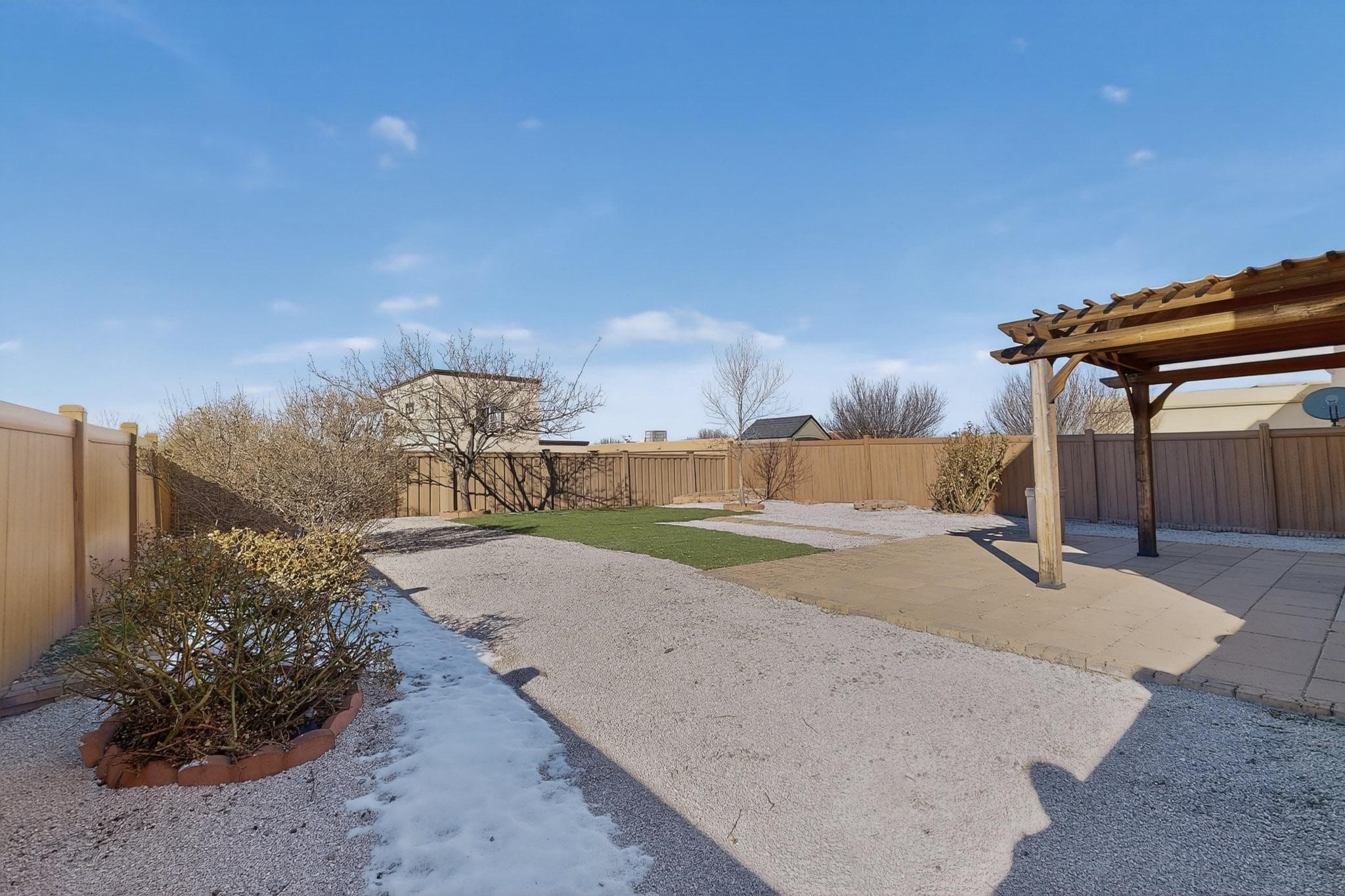 Discover the perfect blend of convenience and community in this newly listed home, ideally situated in a convenient Southside neighborhood. Positioned on a corner lot, this property offers beautiful second-story views and generous outdoor space.Step inside to a fresh, move-in-ready interior that has been recently painted and features hard surface flooring throughout--no carpet! The main level boasts a bright eat-in kitchen with a gas stovetop, perfect for the home chef, along with a convenient guest half-bath. Upstairs, you will find three nice-sized bedrooms and two full bathrooms.Outdoor living is a highlight here; entertain guests under the charming pergola in the spacious backyard or enjoy the community's green space. Peace of mind is ensured with a brand-new water heater (installed Dec 2025).This location is a commuter's dream with easy access to I-25, Veterans Memorial Highway 599, and the Railrunner 599 station. Enjoy a vibrant lifestyle with nearby walking trails, Southside shopping, and the popular Santa Fe Brewing Company. The active HOA fosters a true neighborhood feel with movie nights and events for kids. Schedule your viewing today!