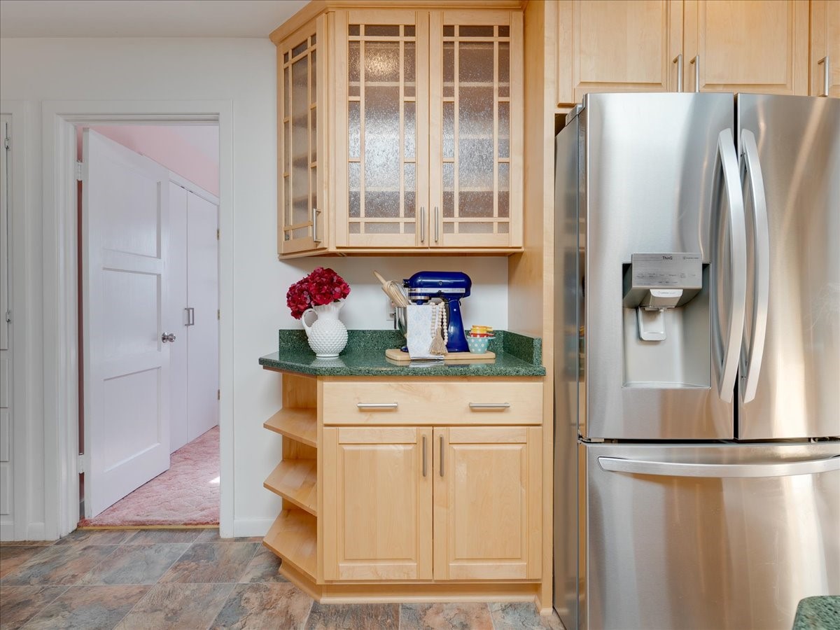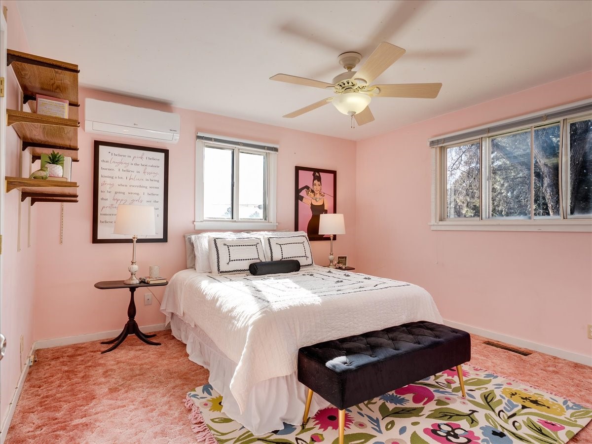 This charming Western Area home offers convenient access to bus stops, downtown, and the high school. While it retains the classic charm of Western Area homes, it has been thoughtfully updated to meet modern living needs. The original floor plan featured three bedrooms and one bathroom, but it has been reconfigured to create two spacious bedrooms, including a generous primary suite with a luxurious, updated bathroom. This area has new carpeting. In 2012, the kitchen underwent a major remodel and is truly a chef's delight, featuring an island with an induction cooktop, double ovens, and cabinetry equipped with pull-out organization drawers. Two built-in pantries provide exceptional storage, while two large skylights fill the space with natural light. The kitchen also offers direct access to the beautiful backyard, making it ideal for both everyday living and entertaining. The Zia Addition on the south side of the home added two additional bedrooms and a bathroom, providing flexible space for guests, family, or a home office. The backyard backs to Sullivan Field, allowing you to enjoy Friday Night Lights football, soccer games, or band performances from the comfort of your own yard. This will be great for entertaining friends and family. The landscaping has been professionally maintained by Los Alamos Landscaping for several years. The home features multiple LG mini-split units providing both air conditioning and heat with independent temperature controls for each room. The oversized garage includes an outlet for electric vehicle charging and features a full wall of storage cabinets for excellent organization. A French drain in the driveway outside the garage captures runoff from snow and rain, adding both function and peace of mind. This well-maintained home combines location, charm, and modern upgrades in a truly special setting. Schedule a private showing today!