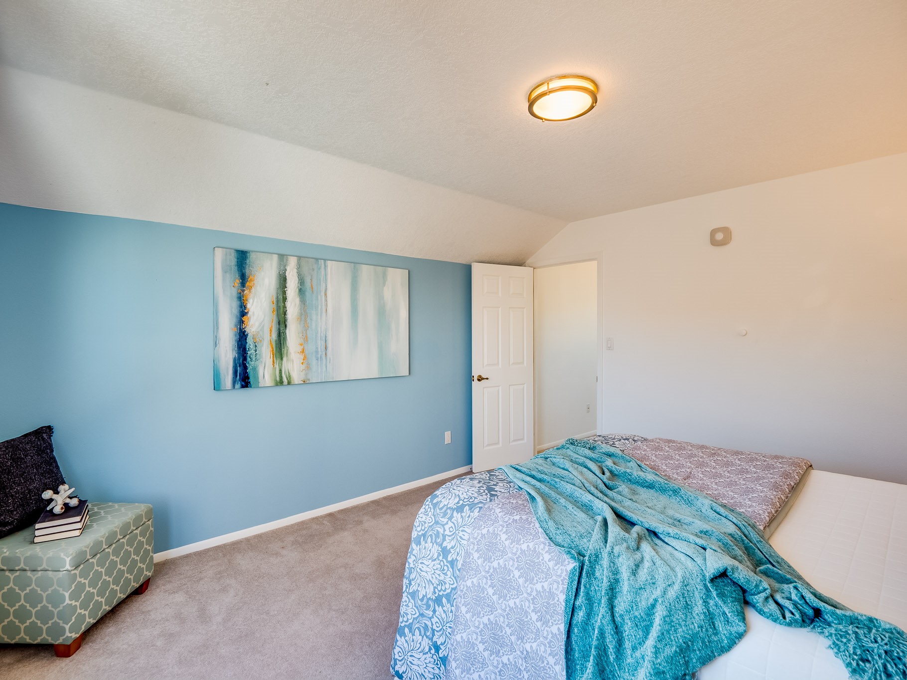 Situated on a desirable corner lot in North Mesa, this beautiful two-story home offers exceptional curb appeal with a large grassy front yard and mature trees lining the welcoming front entrance, providing shade as well as privacy. Step inside the foyer and descend a few steps into the bright, open living room, where rich engineered wood floors extend throughout the main living spaces. Vaulted ceilings enhance the sense of space and light, creating an inviting atmosphere ideal for both everyday living and entertaining. The living room flows seamlessly into the dining area, thoughtfully divided from the kitchen by open glass shelving that adds architectural interest while maintaining an open-concept feel. The kitchen has light colored cabinetry and abundant quartz counter space, including a peninsula island with bar seating. Stainless steel refrigerator and a gas oven/range, and there is convenient access to the oversized two-car garage. Adjacent to the kitchen, the family room features vaulted ceilings and a dramatic floor to ceiling stone wood burning fireplace, serving as a warm and striking focal point. From here, step outside to the covered deck overlooking the fully fenced backyard with mature trees, and ample space for gardening and outdoor dining. The main level also includes three nicely sized carpeted guest bedrooms, a guest bathroom with a walk-in tiled shower featuring a luxurious shower panel and single-sink vanity, along with a dedicated laundry room and additional storage closet. Upstairs, the home is fully carpeted and features a cozy loft perfect for relaxing or reading, as well as a versatile bonus room that could serve as a hobby space, office, or additional bedroom. Spacious primary en-suite bedroom with a large walk-in closet and a spa-like bathroom complete with a double-sink vanity, tile flooring, and a deep soaking tub. Located near parks, horse stables and trails, book your tour of this move-in ready home and experience what it has to offer!