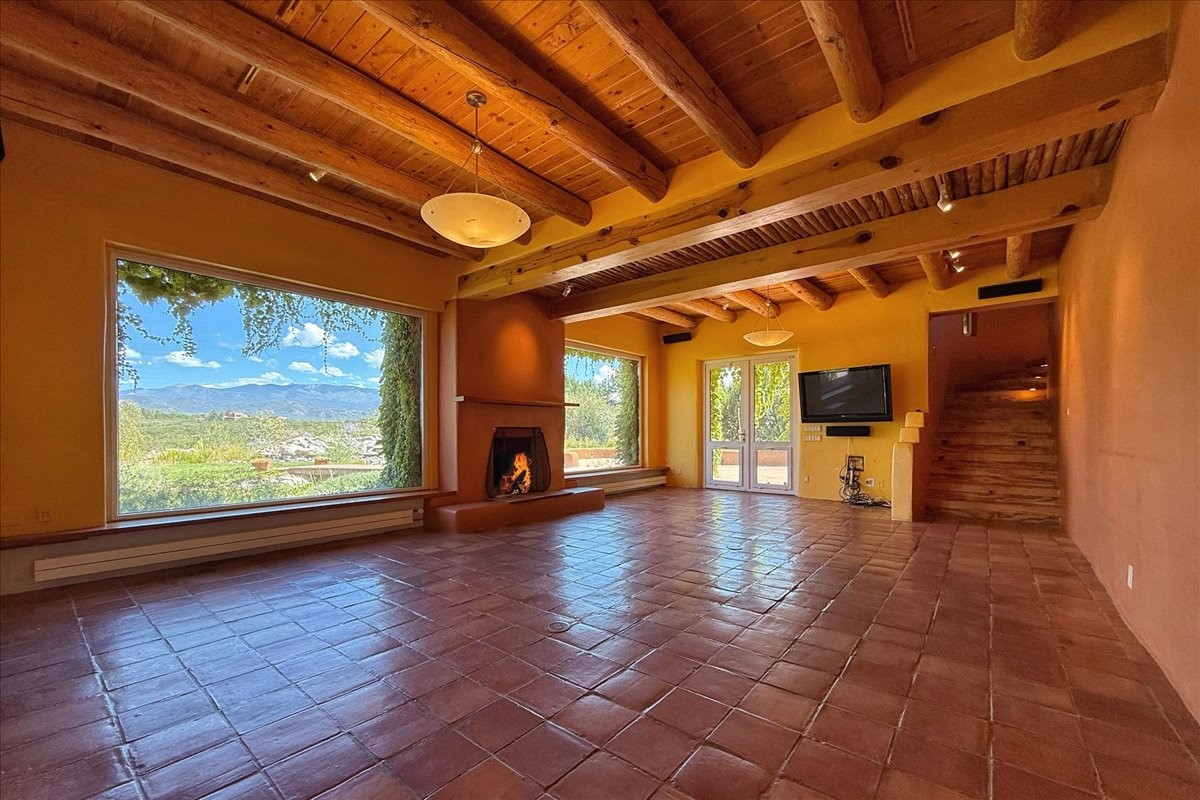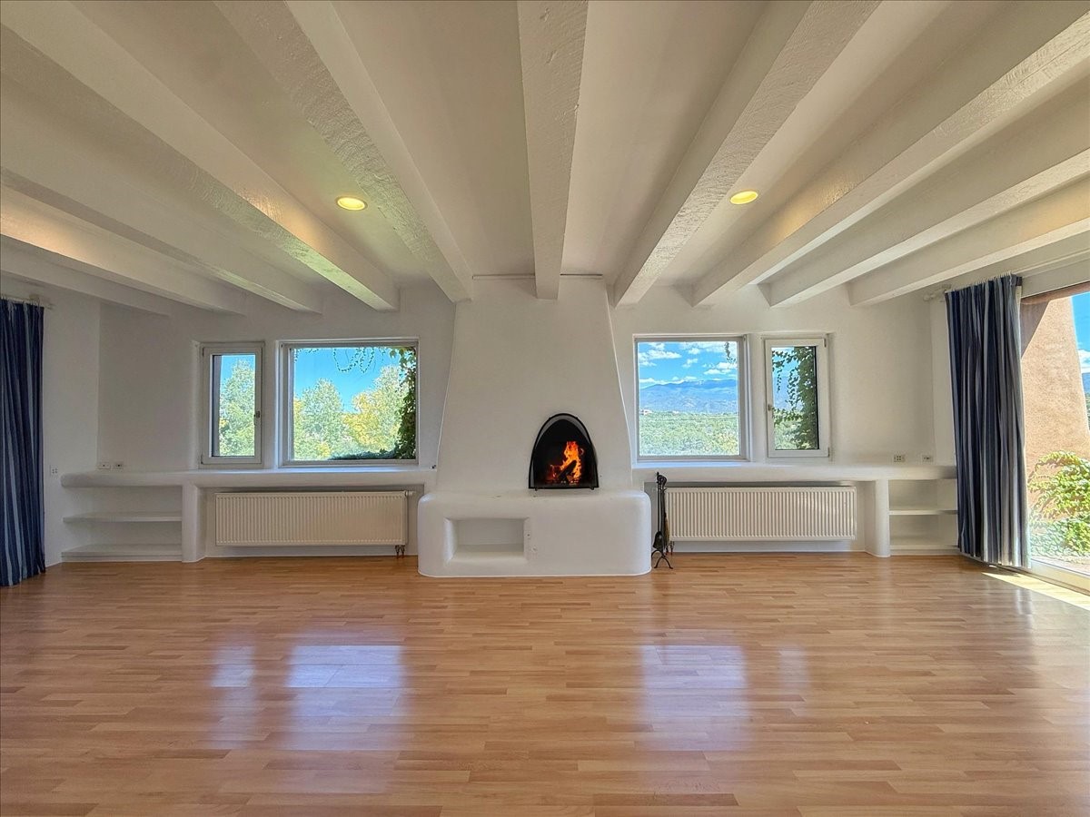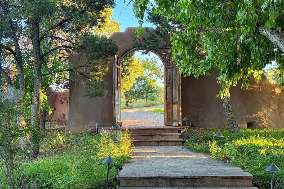 Tano Road at its Finest Tucked away on 11.9 wooded acres, this remarkable adobe estate feels worlds apart--yet remains close to all that makes Santa Fe extraordinary. With a 4-bedroom main house and a separate 2-bedroom casita, the property unfolds as a private retreat for gathering, reflection, and creativity.Anchoring the main level is a welcoming kitchen designed for connection, opening to a portal that overlooks an aspen-lined lawn, a serene pond, and sweeping views across the Sangre de Cristo and Jemez Mountains. Picture windows fill the living room with light, while an office, den, and three-bedroom guest wing provide space for every rhythm of lifework, rest, and hosting.Above, the owner's suite is perfectly placed to capture the views and includes a beautifully appointed bath and an airy studio/office. The nearby casita is equally inviting--offering privacy for guests or a quiet escape of its own.Rare, inspiring, and full of possibility--this is a Santa Fe property ready to be reimagined for its next chapter.