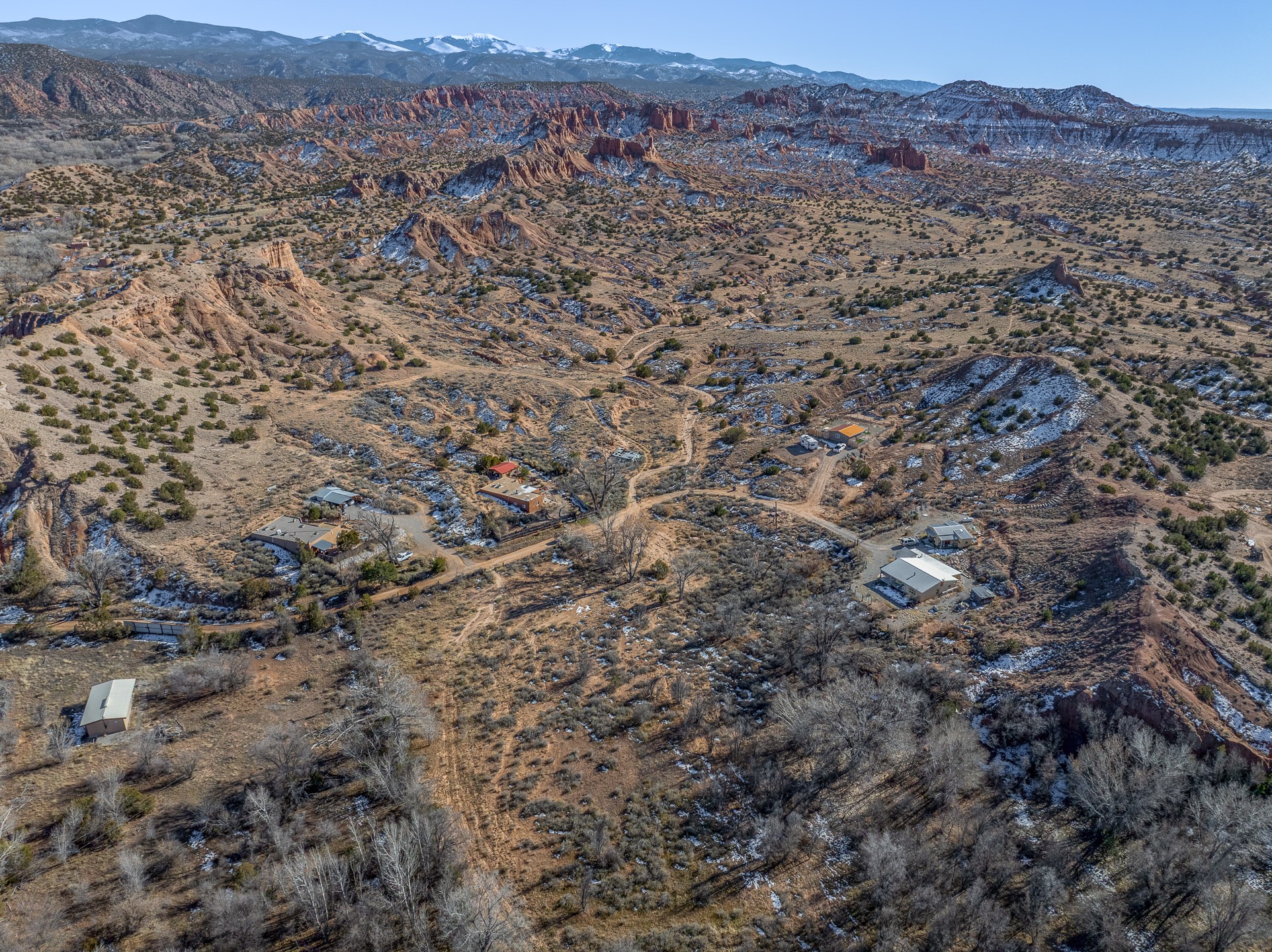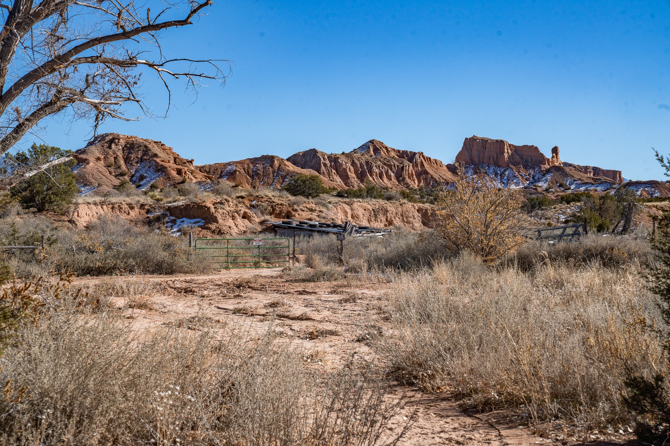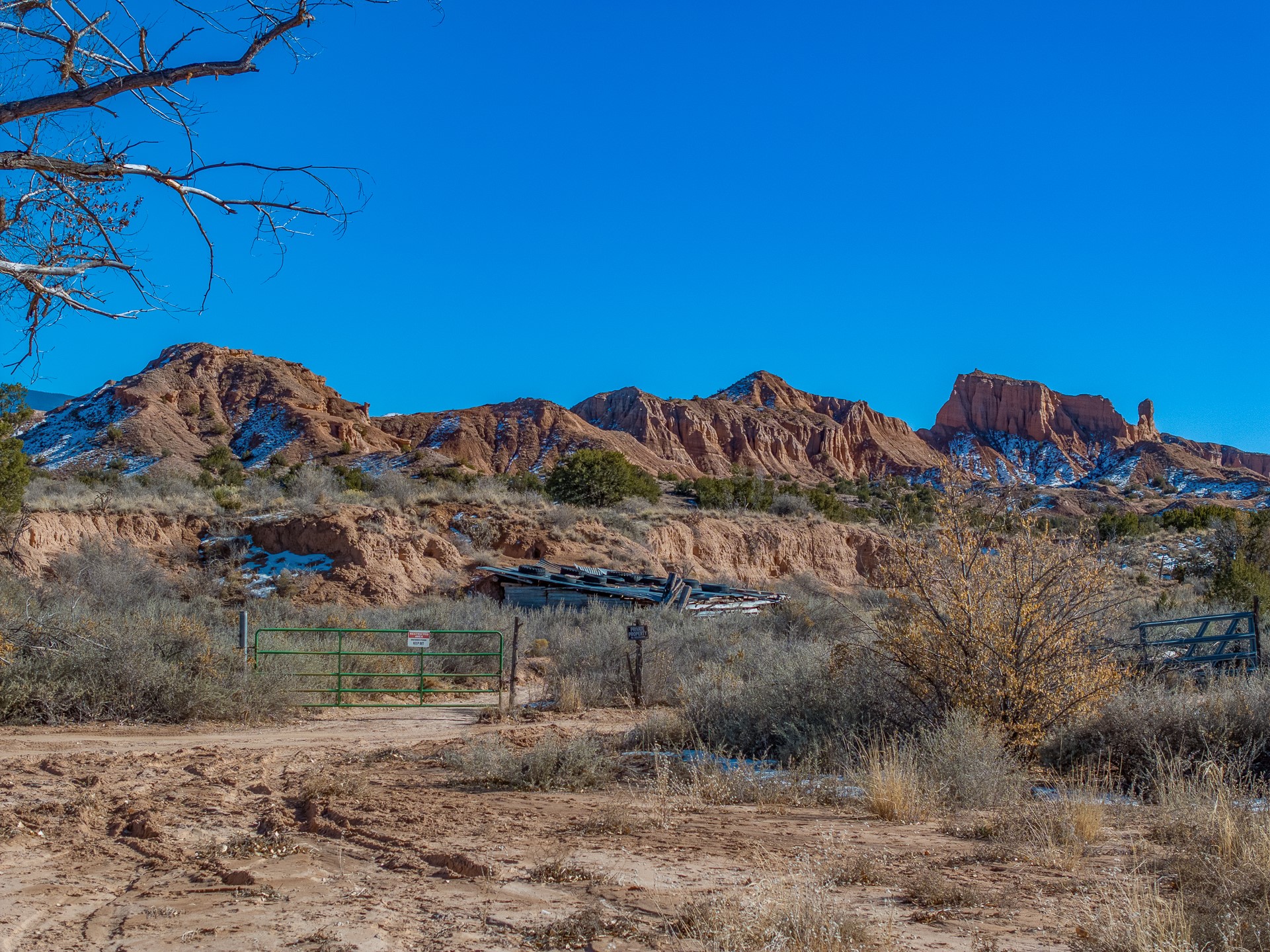 Capture a piece of gorgeous Chimayo land on .95 lush acreage!! Flat land with easy building sites provides for house, guest house and storage buildings! Trees and birds abound! Access to BLM land is available as well. There is a shared well on the property and a gate already provided for access into the property. Water rights also will transfer!! Owner may finance with 20% down at 5% interest, balloon in 5 yrs.