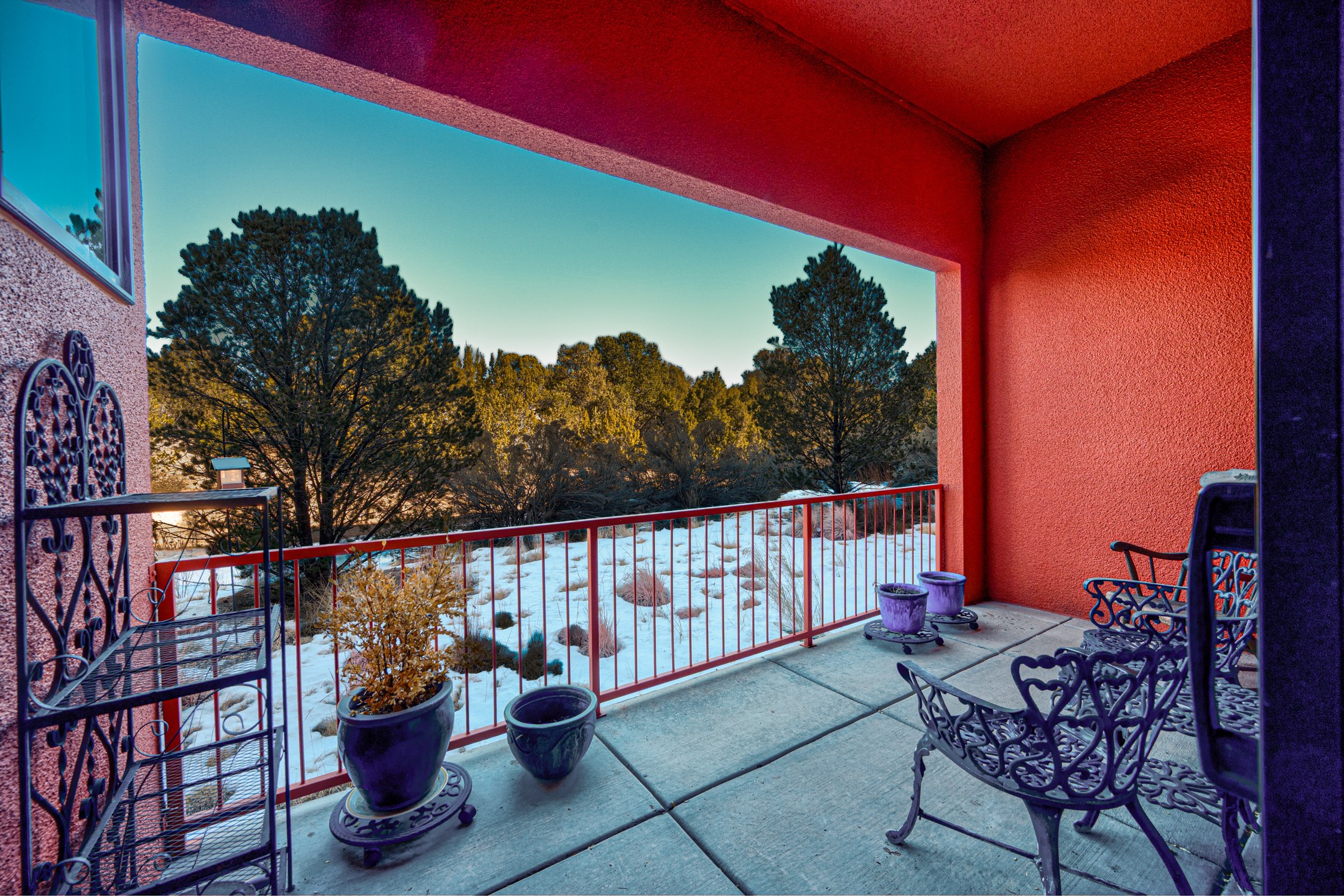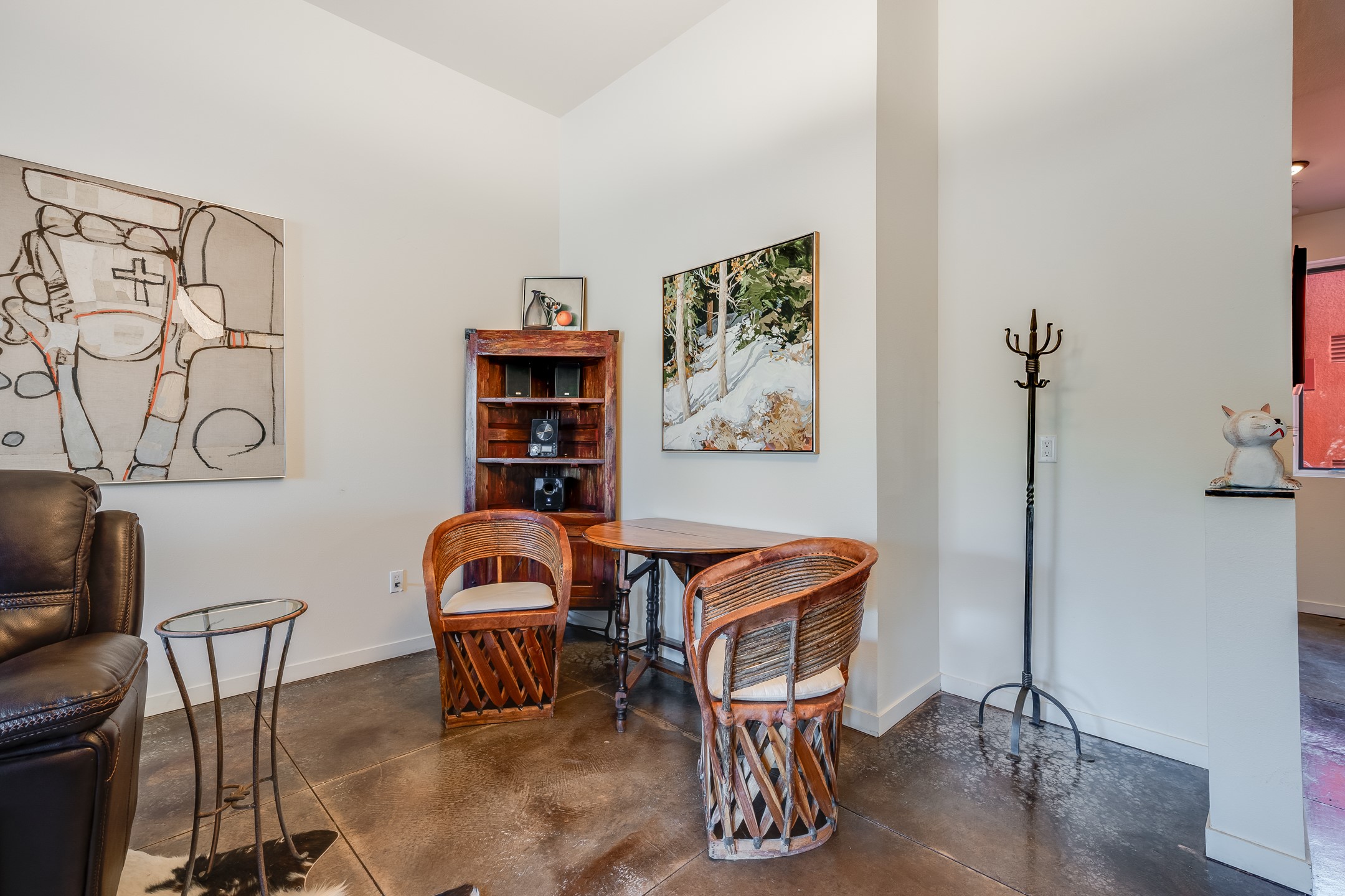 Welcome to Zocalo, a Santa Fe Condominium development offering unmatched convenience and amenities including an outdoor pool and spa, two gyms, a barbecue area and clubhouse. This ground-level unit is a Plaza floor plan designed by Ricardo Legorreta and received multiple awards by the Haciendas Parade of Homes, including an award for best use of space. Featuring easy to care stained concrete flooring throughout, stainless steel appliances, Pella windows, and a well designed, efficient floor plan. The condo has a wonderful orientation with the living room directly accessing the covered north-facing patio. Other desirable features include refrigerated A/C, gas fireplace, and a one-car garage. All of this within a few short minutes to the Plaza, Opera and hiking trails.